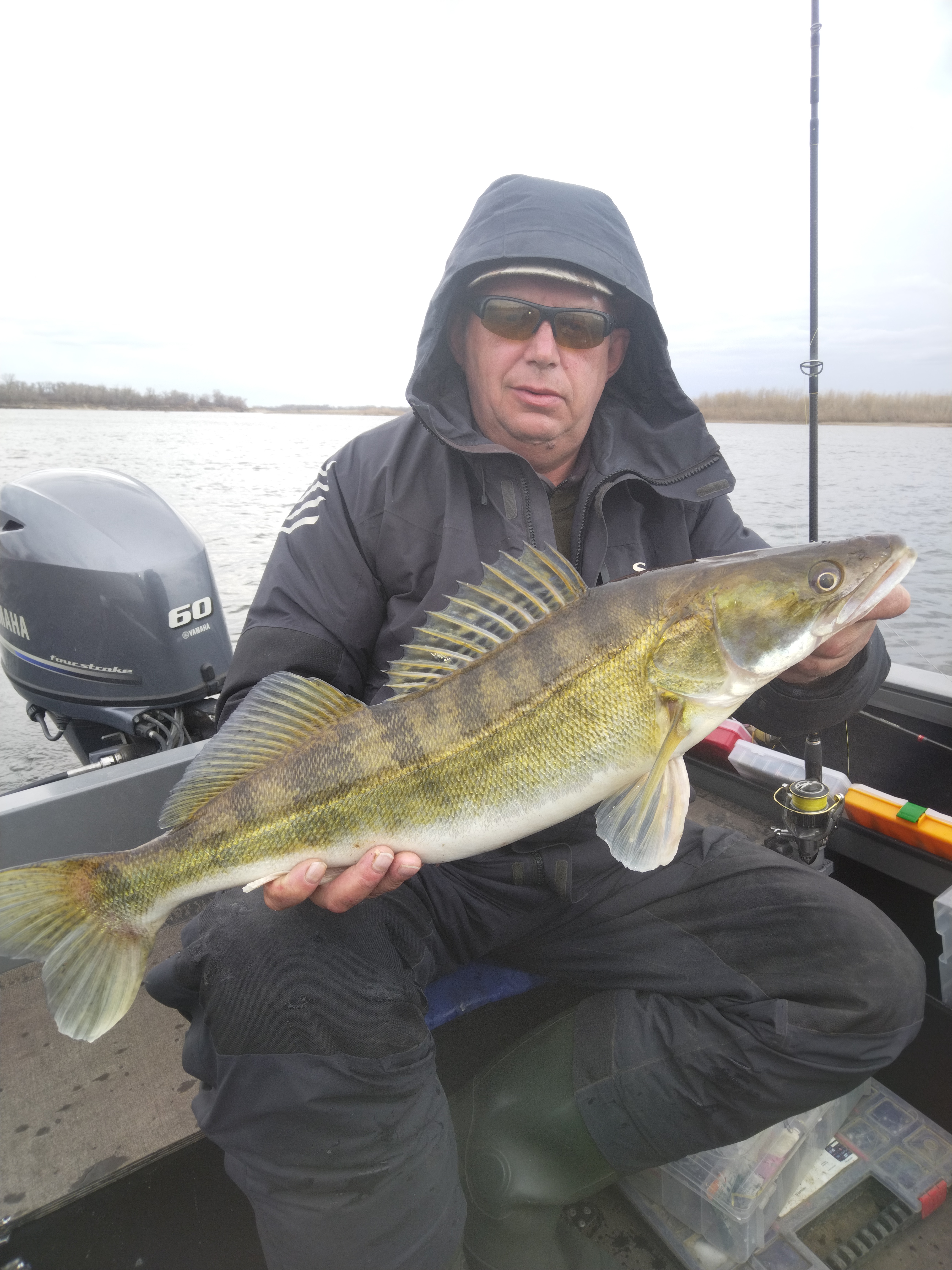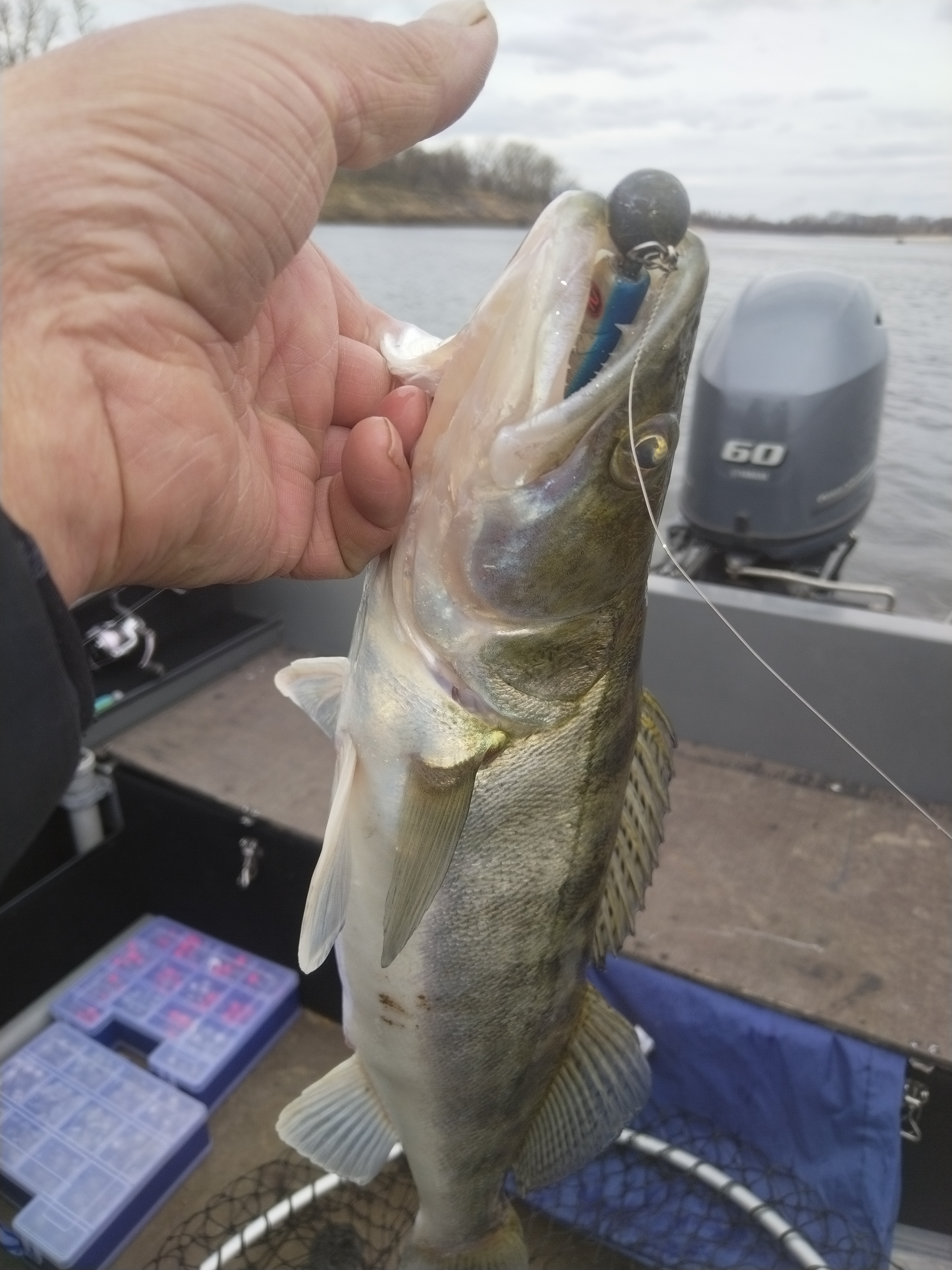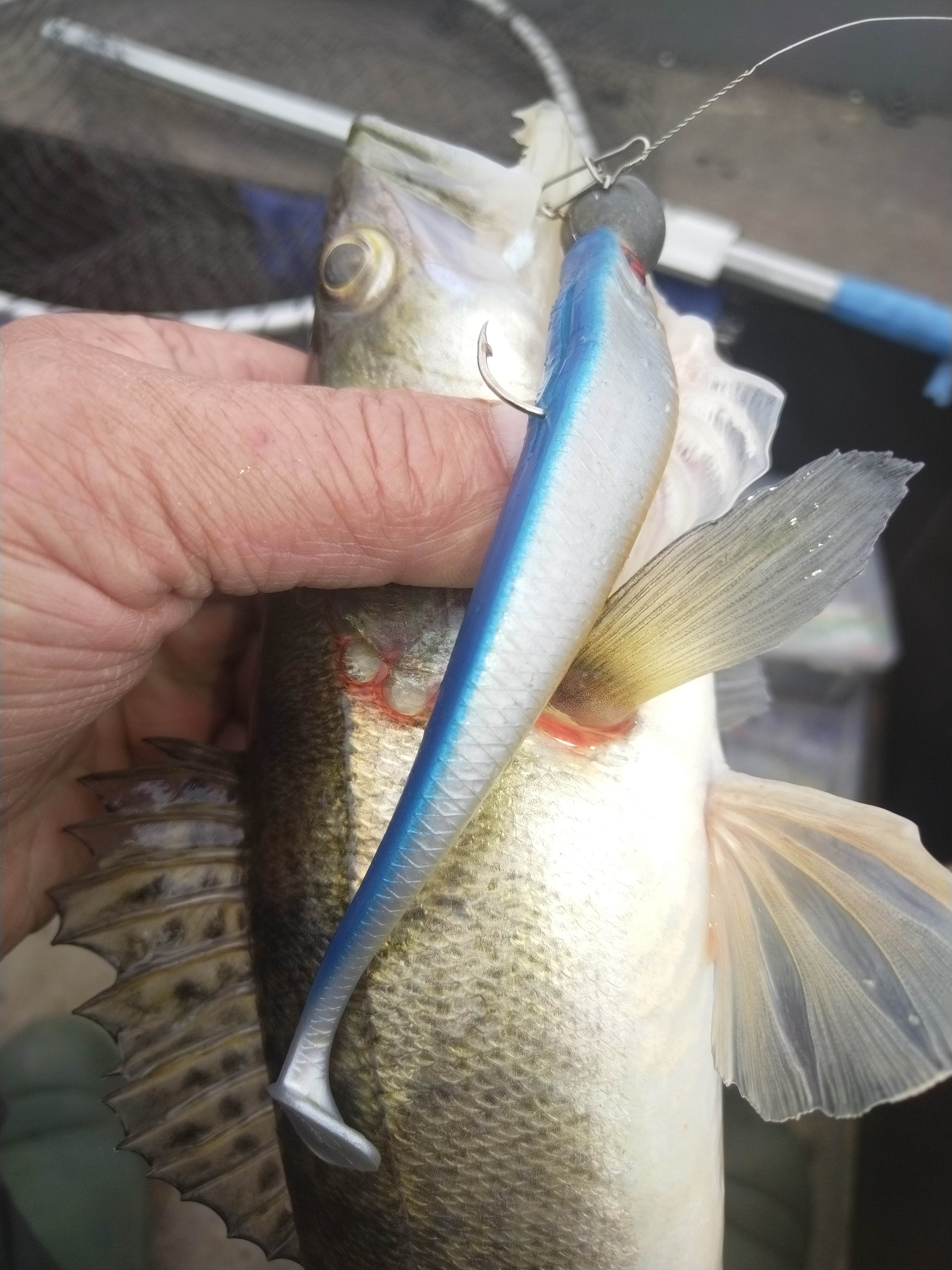 Ура штиль , прем в воложку ибо понимаем , что дальнейший прогноз шанса не даст , в коряжках сразу поклёвки , подбои , что-то ловлю прям захватывает , азарт , переставляется , думал не удачно , прям на струю но , компаньон с первого заброса ловит под трешку , мне груз лениво искать , ставлю что под руками 40 г ( хоть надо было 52+) и проводка , вялые сиси , пауза секунд по 10+ , итог 8 шт , все поклёвки отдай спин ....