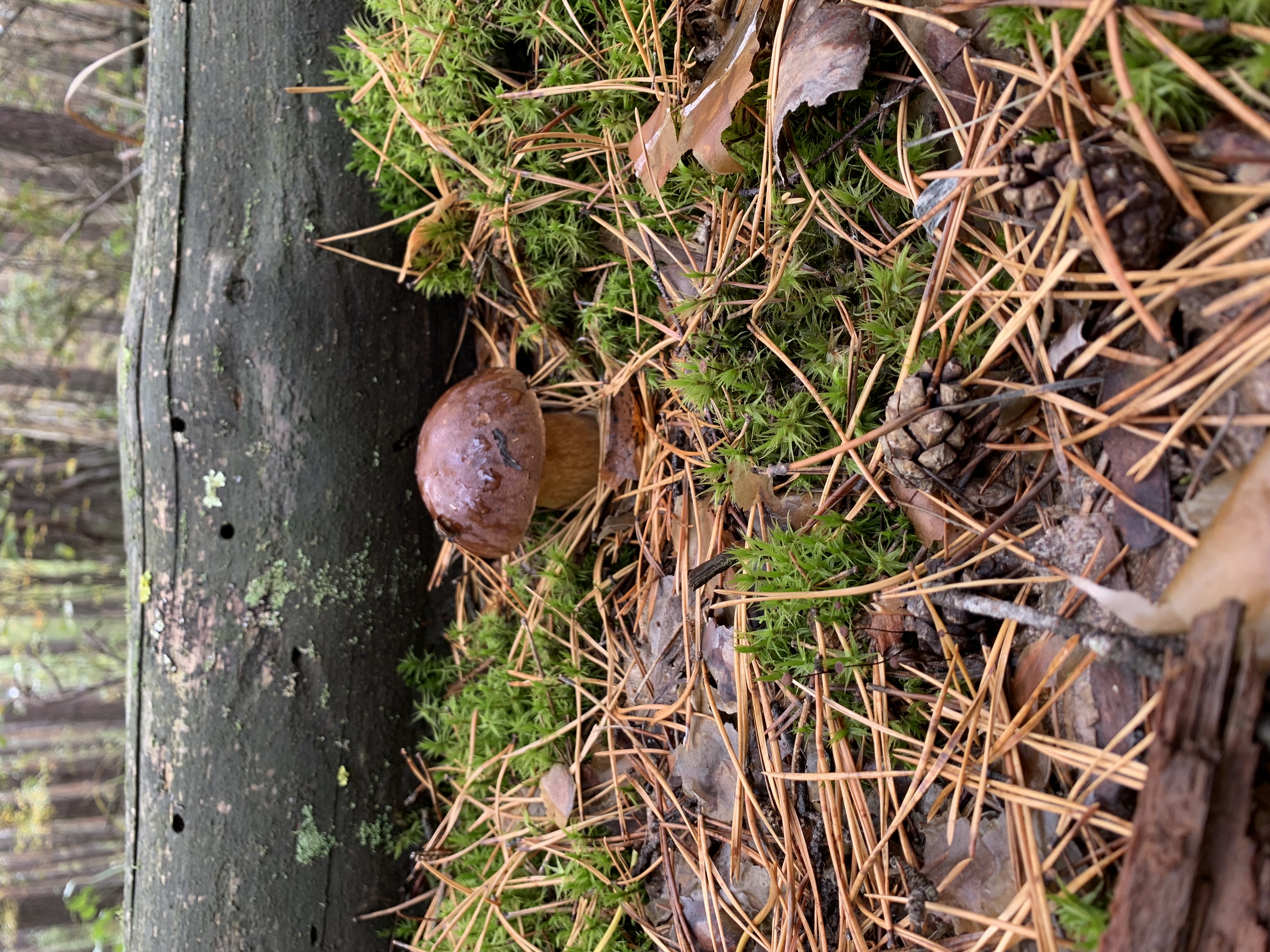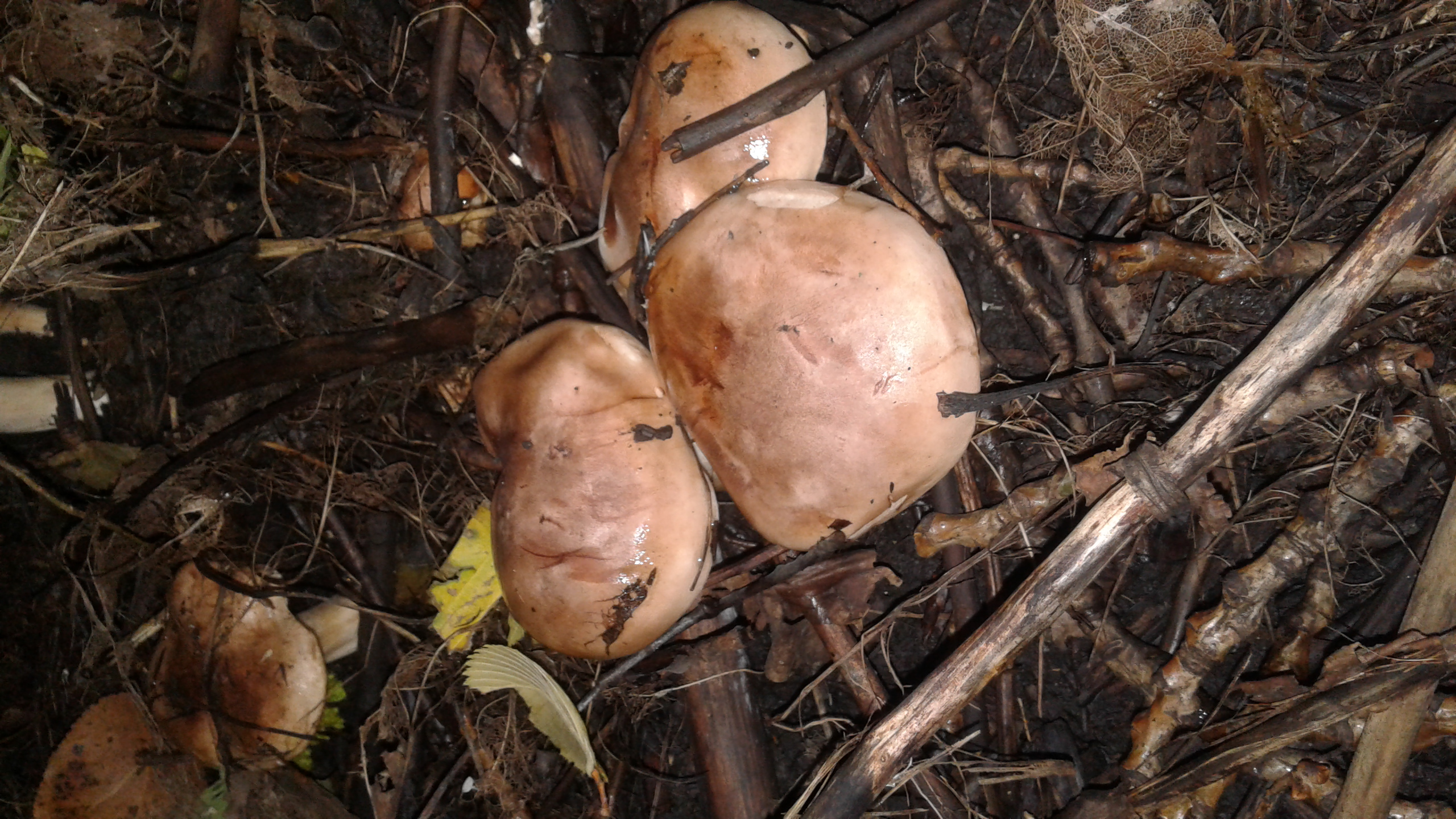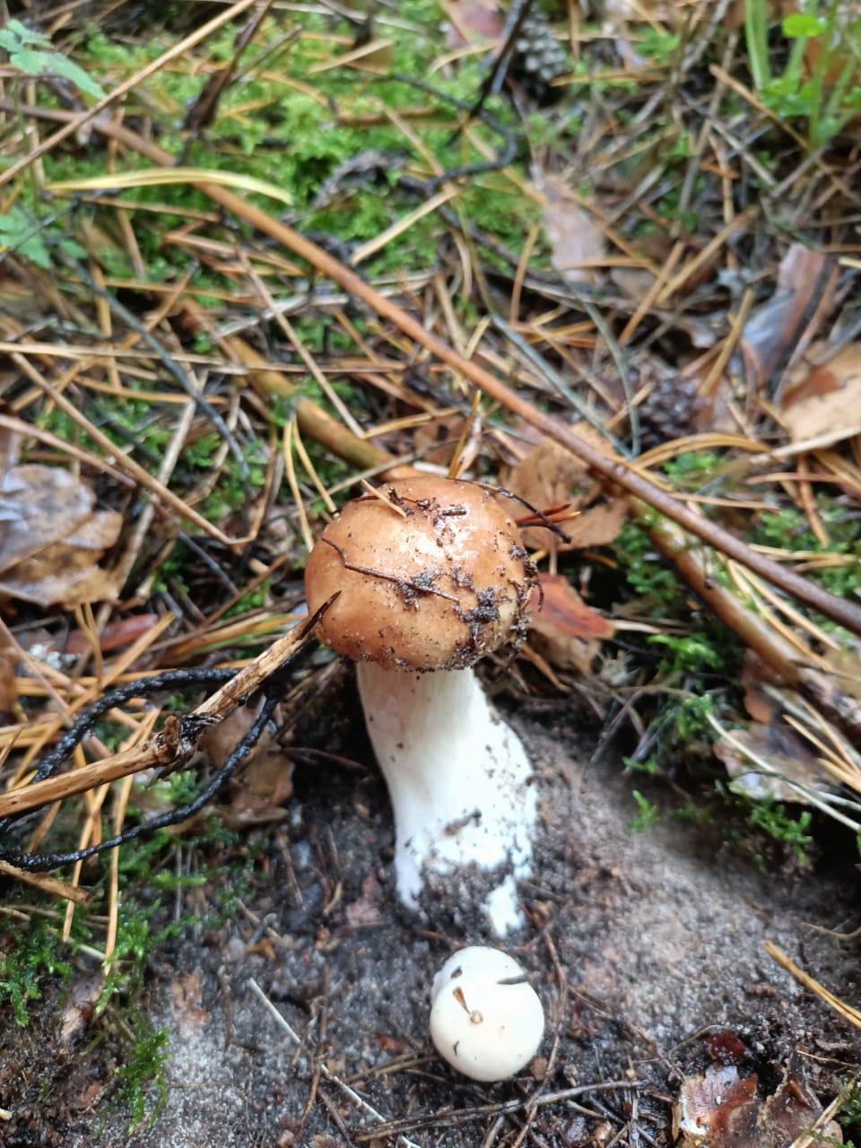 Лишь в одной сырой локации увидели с десяток бугорков от красной сыроежки. И там же 2 старых обмороженых маслёнка, один червивый подосиновик и несколько больших затоптанных свинушек.