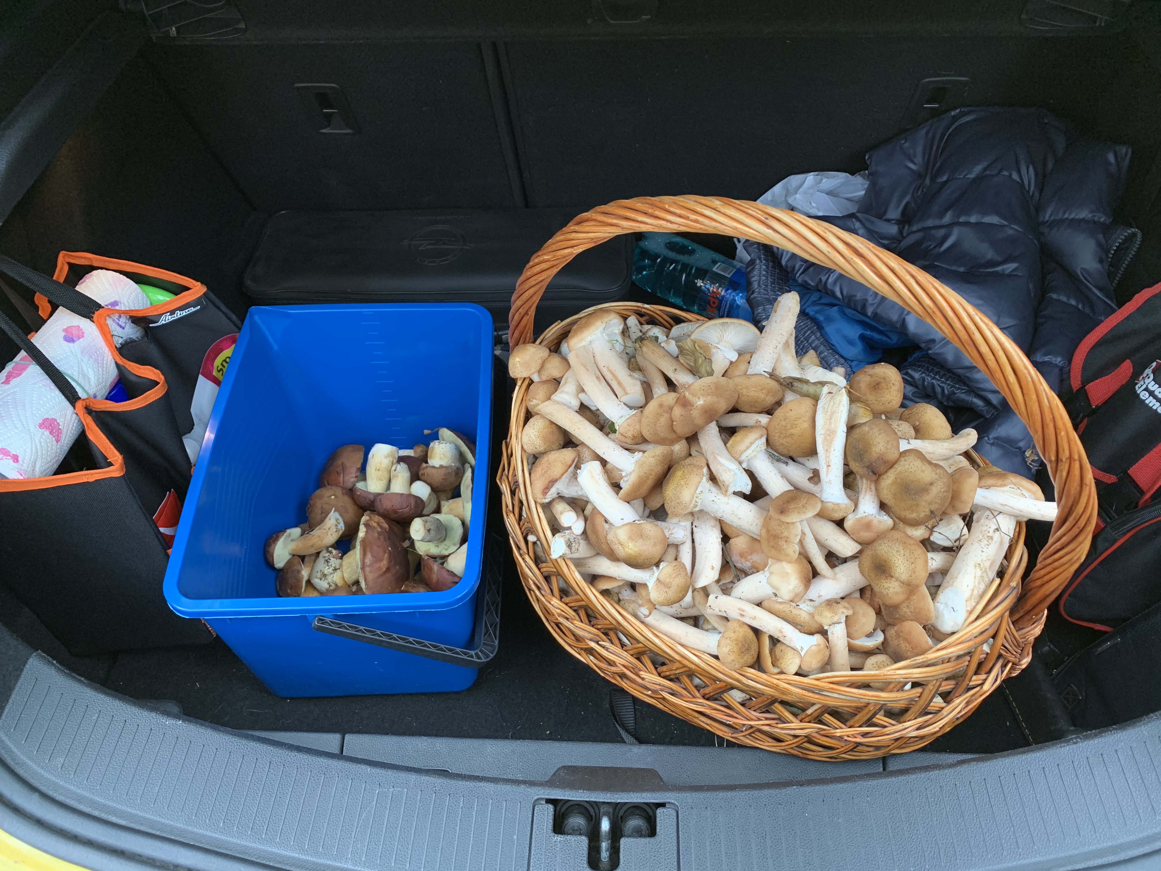Собирал уже в сумерках. За 40 минут успел проверить две локации. С каждой примерно по ведру. Это уже была не тихая охота, а тупо сбор боровиков с конкретных мест, где они вылазиют год от года