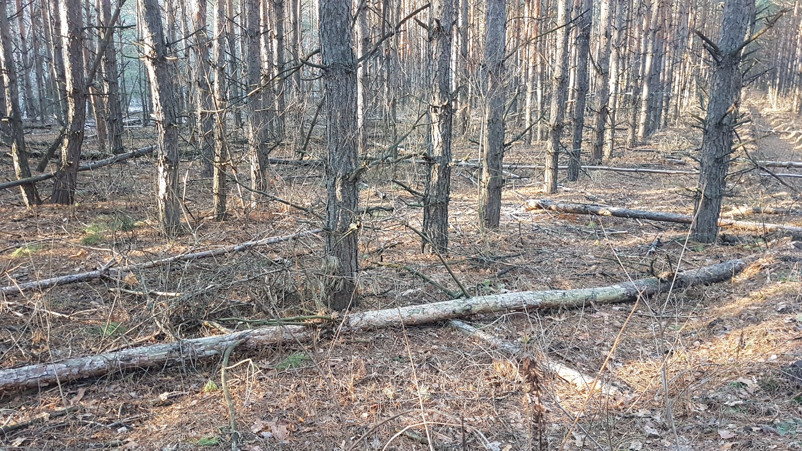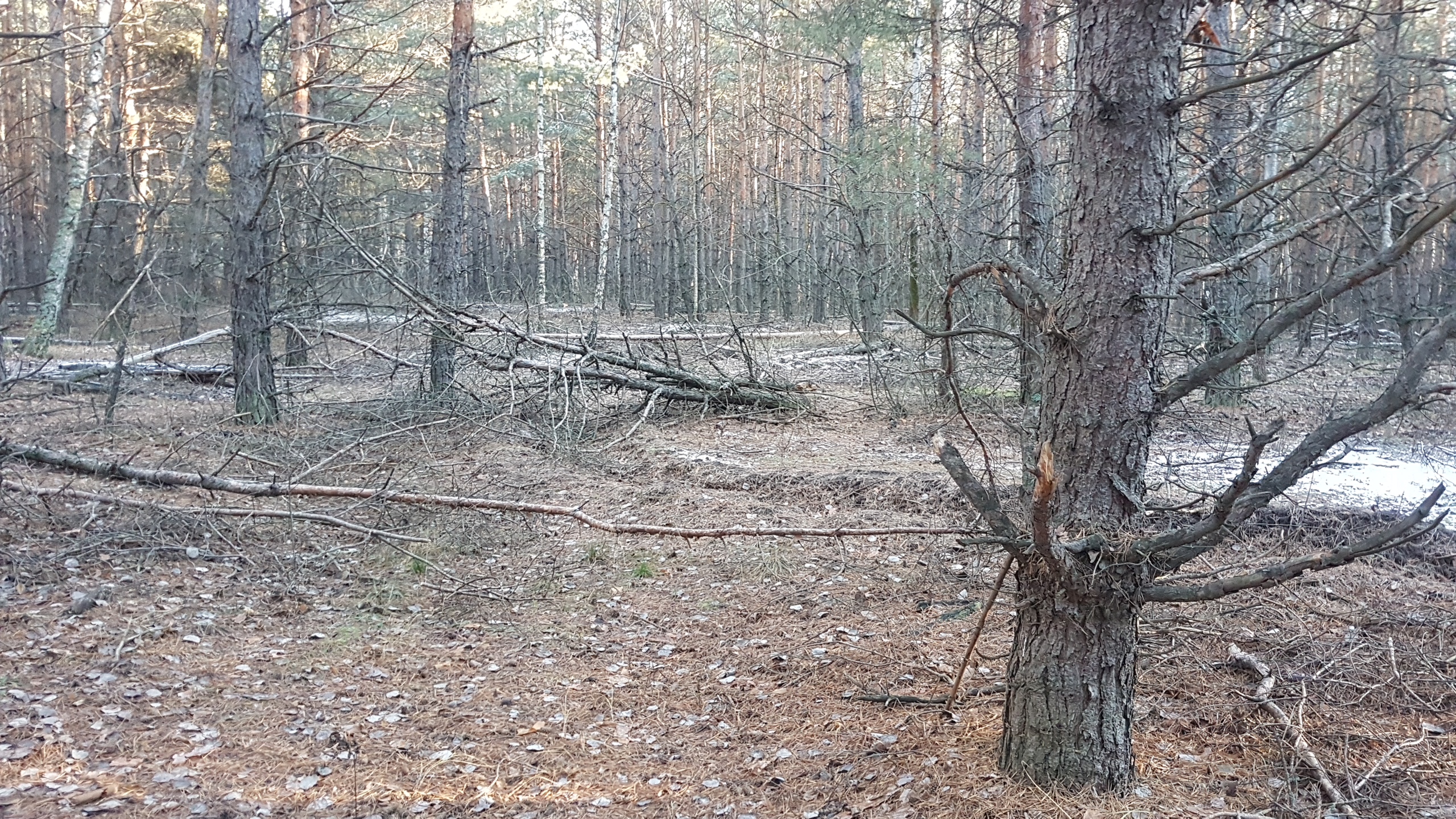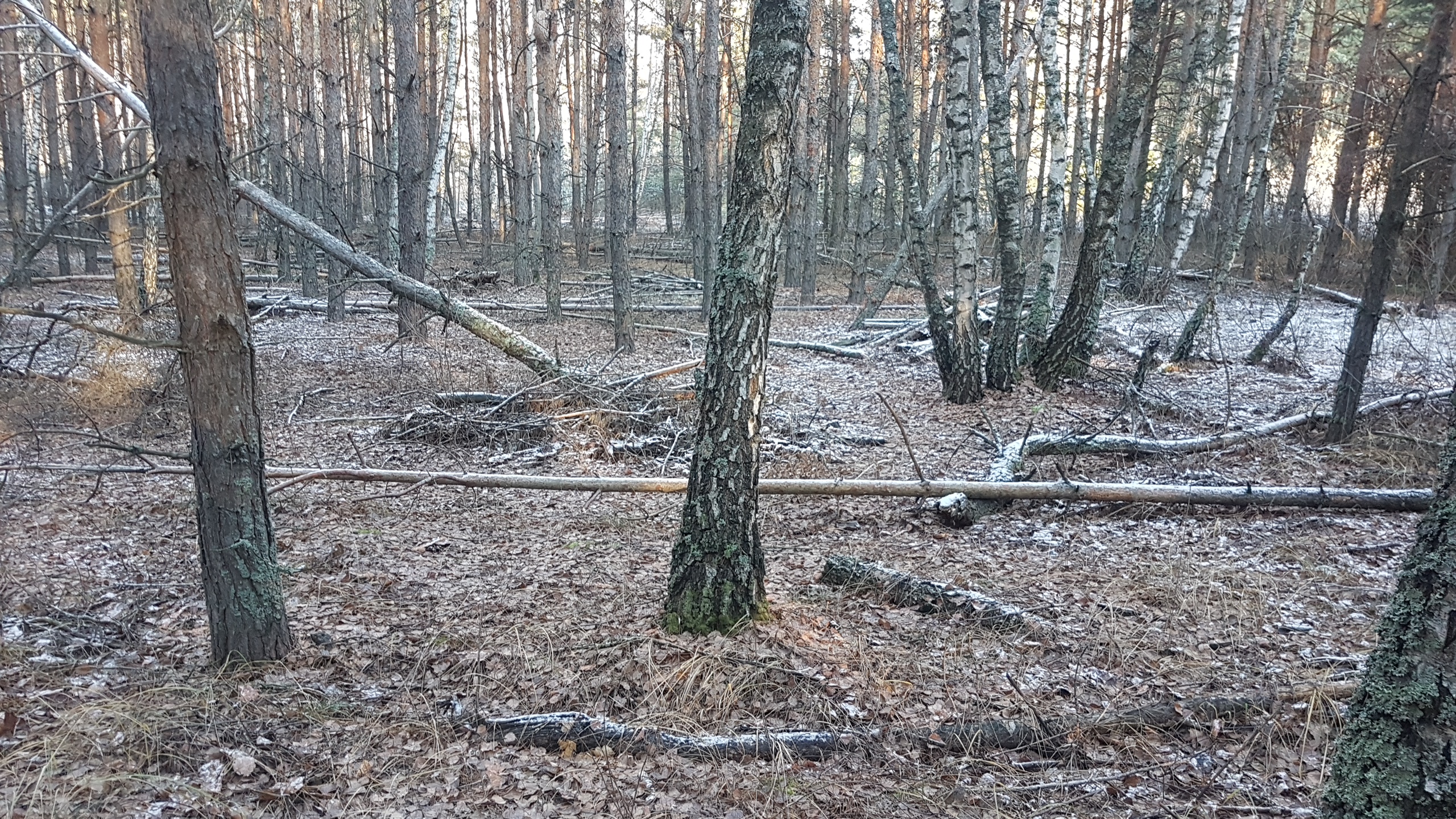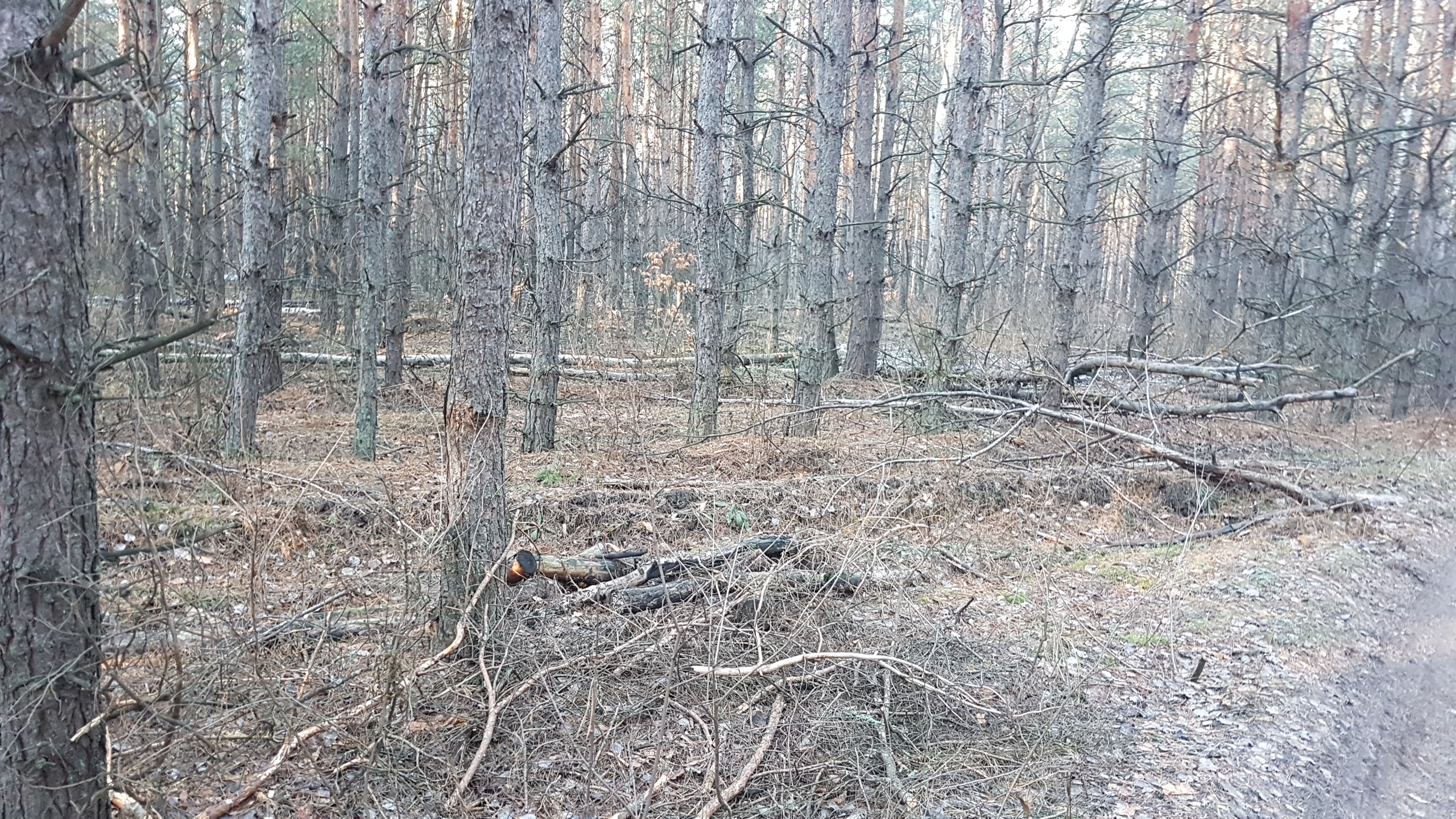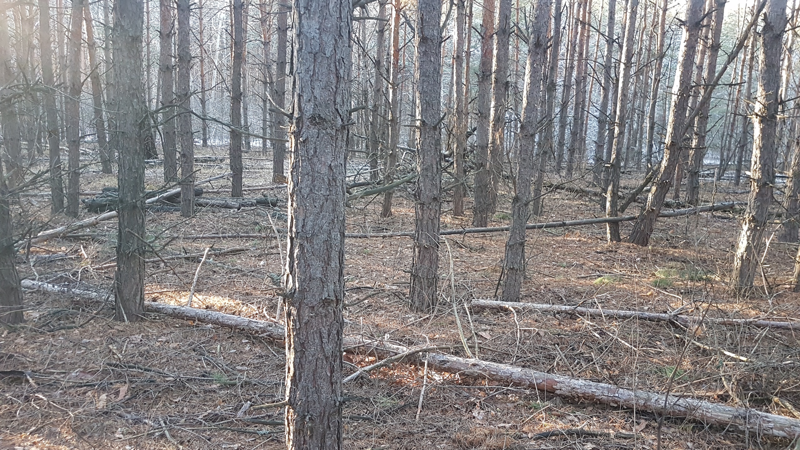 Вообще-то лес который год выглядит удручающе. Кругом густо поваленные деревья. И этого валежника с каждым годом становится всё больше. Ходить по лесу становится ужасно не удобно. Если ещё раз заеду туда, то наверное сфоткаю. Раньше был аккуратно посаженный лес. Ходили по рядам его,  искали грибы...