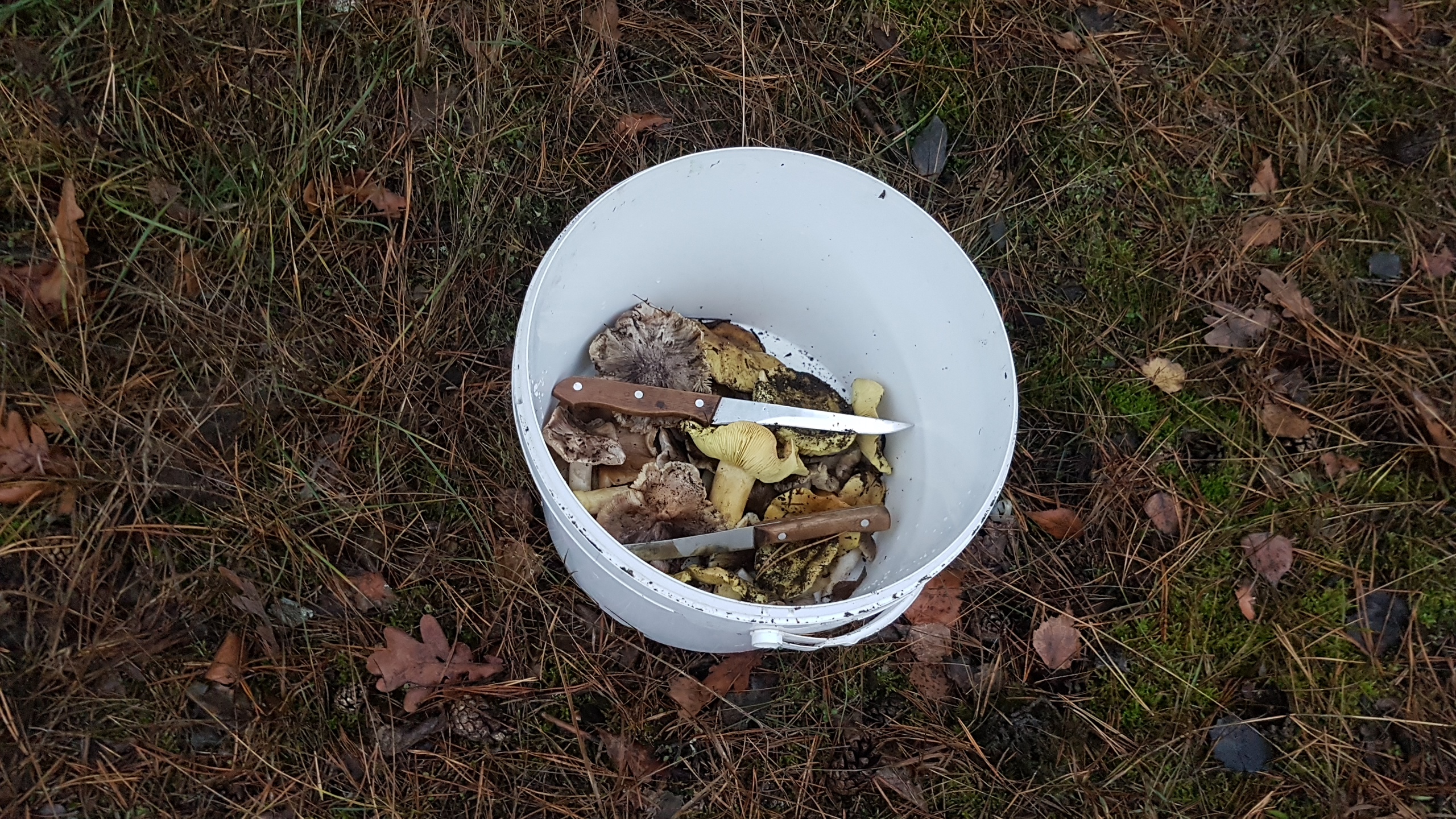 Сегодня заскочили в лес после обеда. С первой точки за полчаса собрали чуть меньше полведра. Думали, что быстренько ведёрко доберём. Но, не угадали. Дальше пришлось с пристрастием их выискивать. Грибы сегодня не подтвердили своего звания "рядовки". В основном это были отдельно стоящие тощие экземпляры. Хочу отметить, что хотя и были отдельные заморозки, но в песок рядовки пока не зарываются.