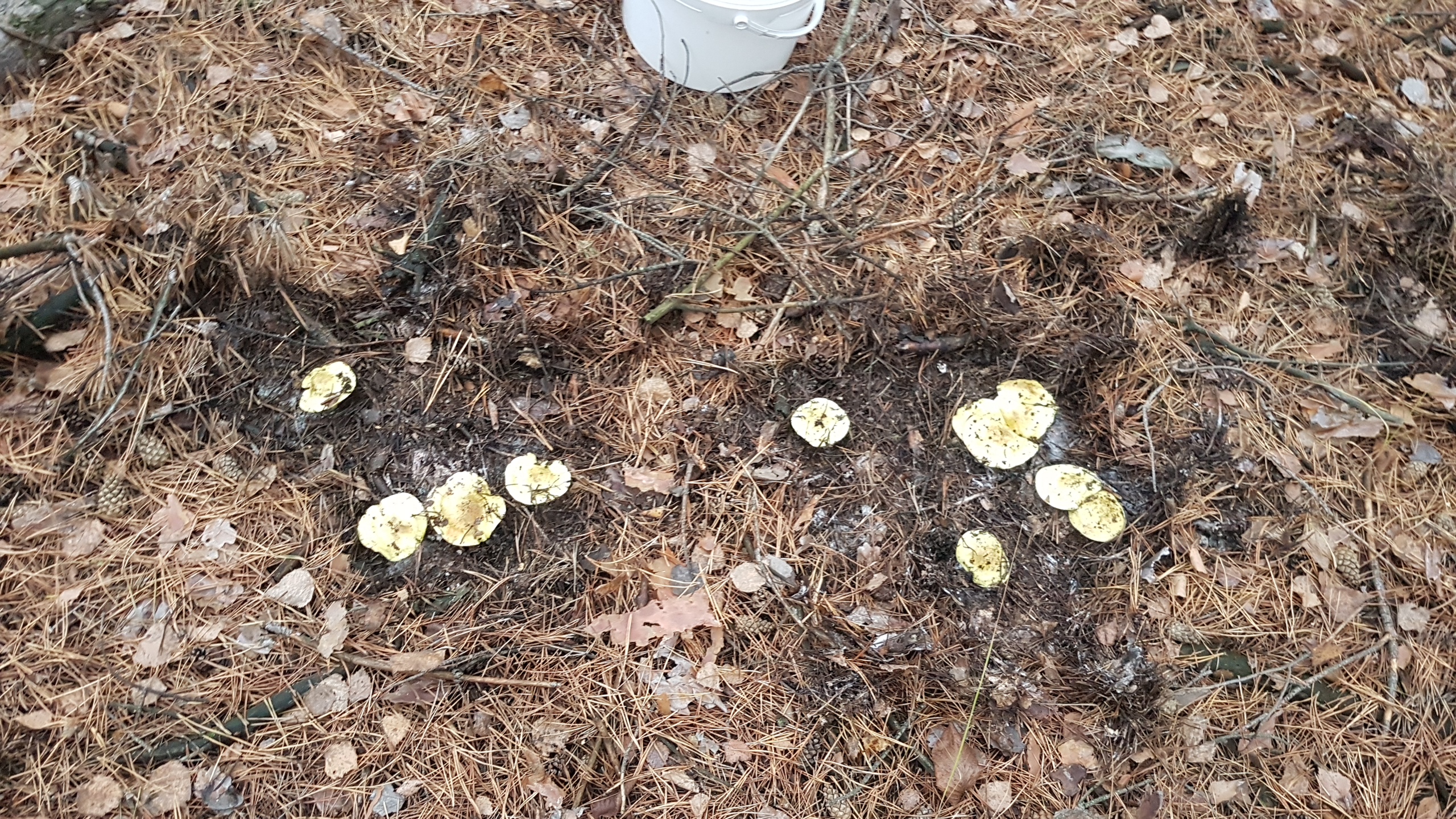 Хочу про поздние зеленушки сказать. Они поздней осенью от холодов обычно в землю прячутся. Растут в земле, в песке на глубине 2-3-5 см. Находишь их по лопнутой земле, трещинам над ними. А в этом сезоне такого пока не наблюдали. Все грибы под листвой, иголками. Отмороженые это те которые наружу вылезли. Просто их меньше становится. Вот и не понятно, будут они ещё расти или нет.