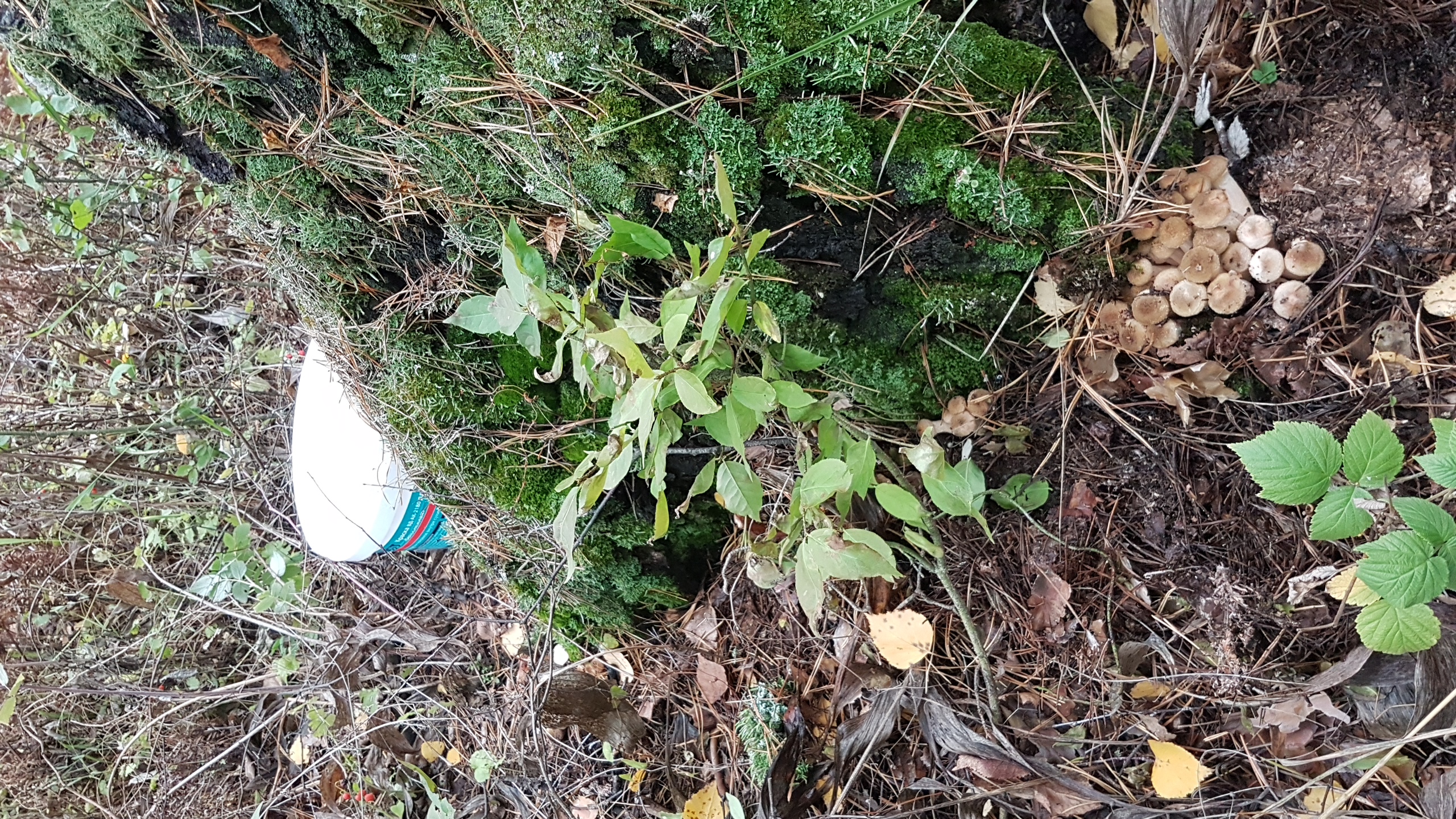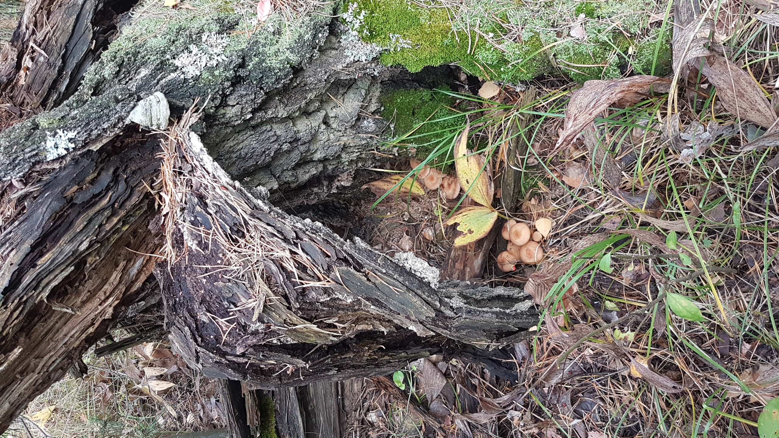 Работа не даёт вырваться на оперативный простор, но и ближние точки начинают понемногу приносить грибы. За полчаса, которые смог урвать в обеденный перерыв, чуть больше полведра успенских опят. Опять старые берёзы, но начинают появляться и в листве.