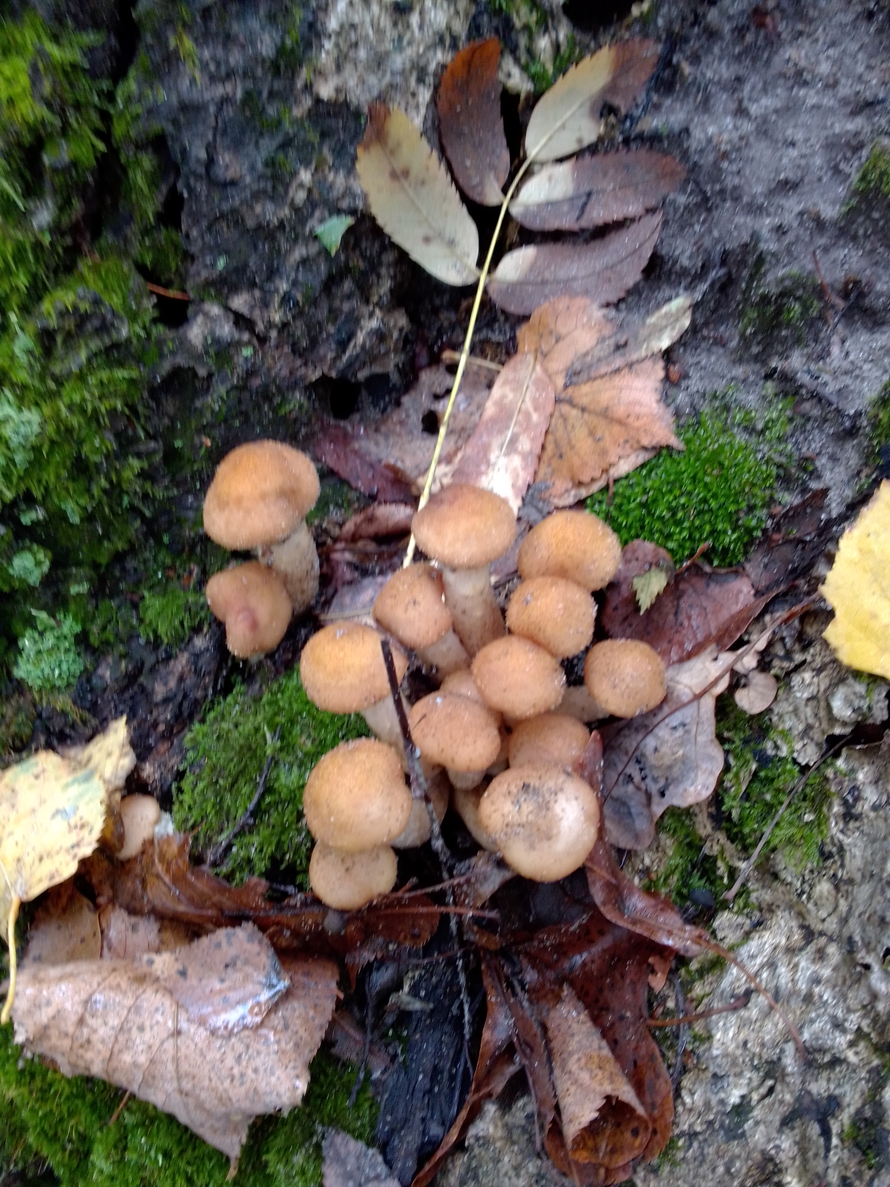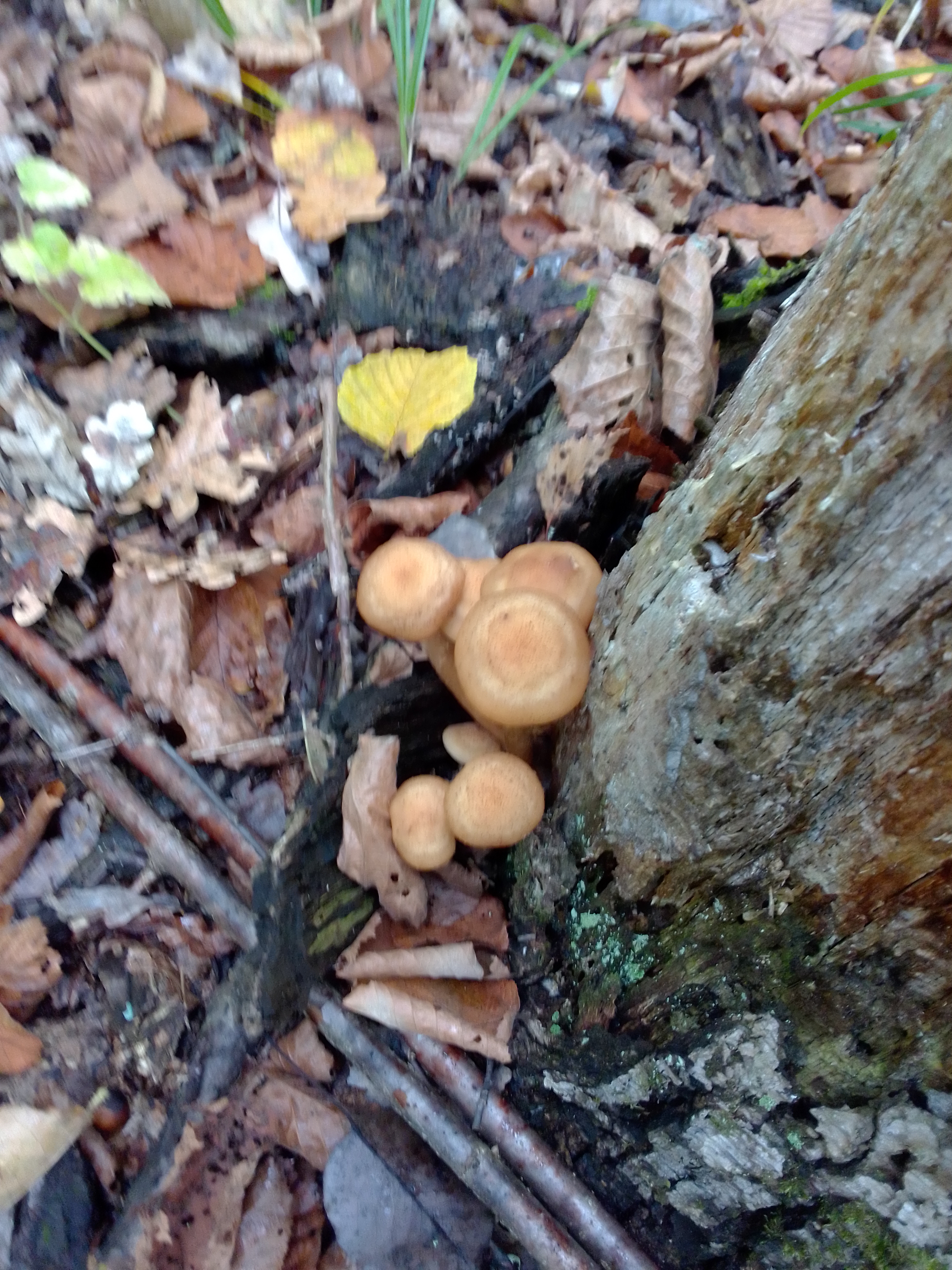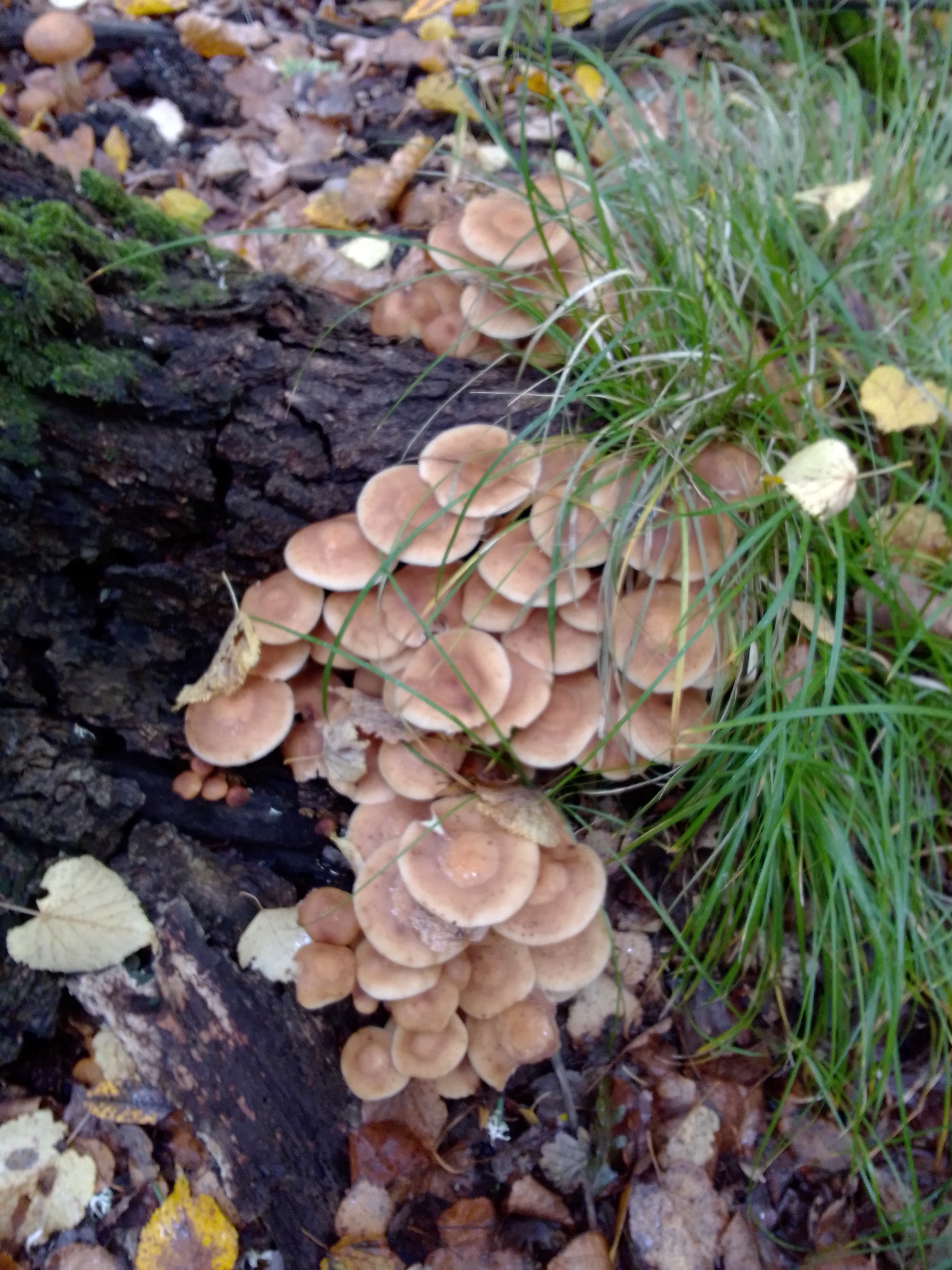Сегодня уже в 6.00 был на Петровских озерах. До 9 часов всю округу прошел . Итог 7 опят пеньковых. Переехал на Маклок. Прошелся по проверенным местам.30штук мелко опят . Опят нашел на березовых пеньках.