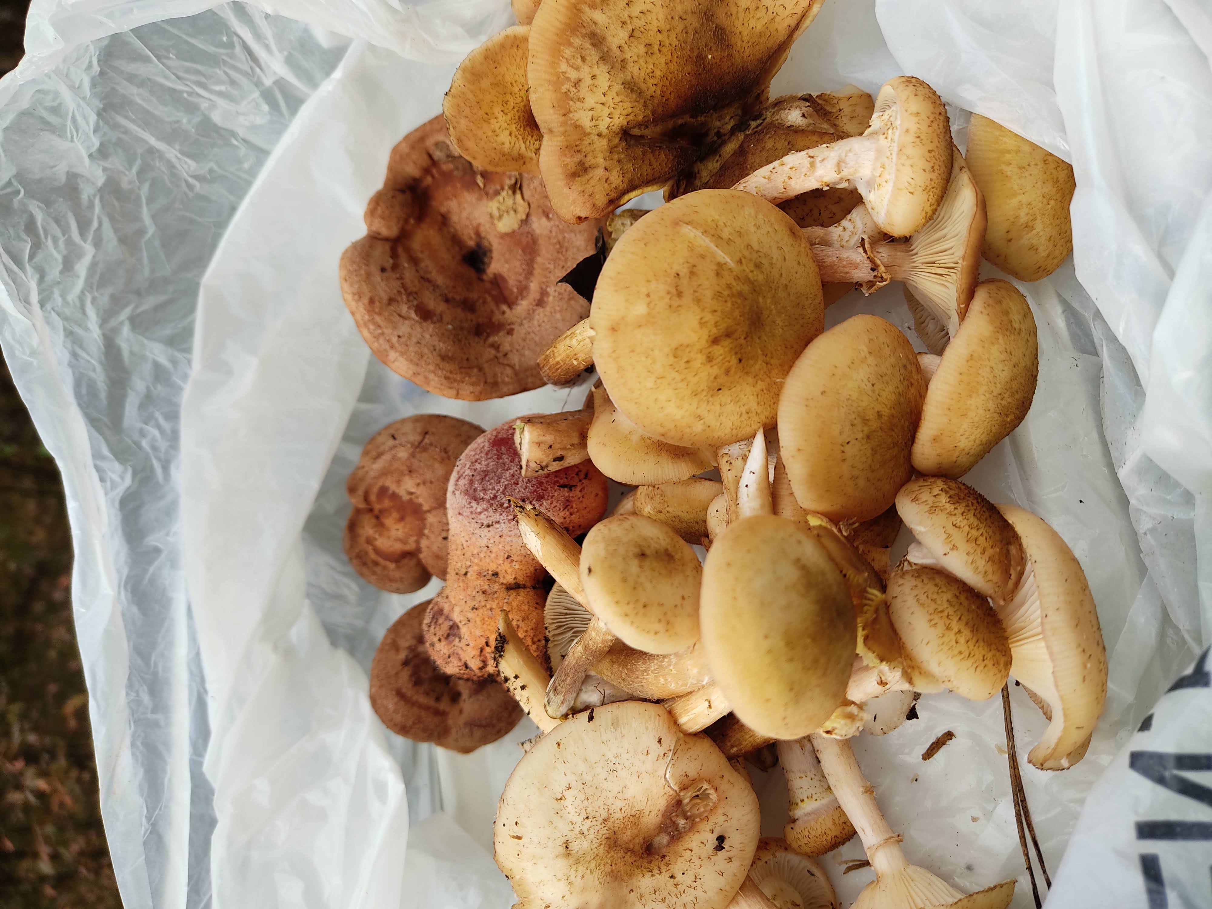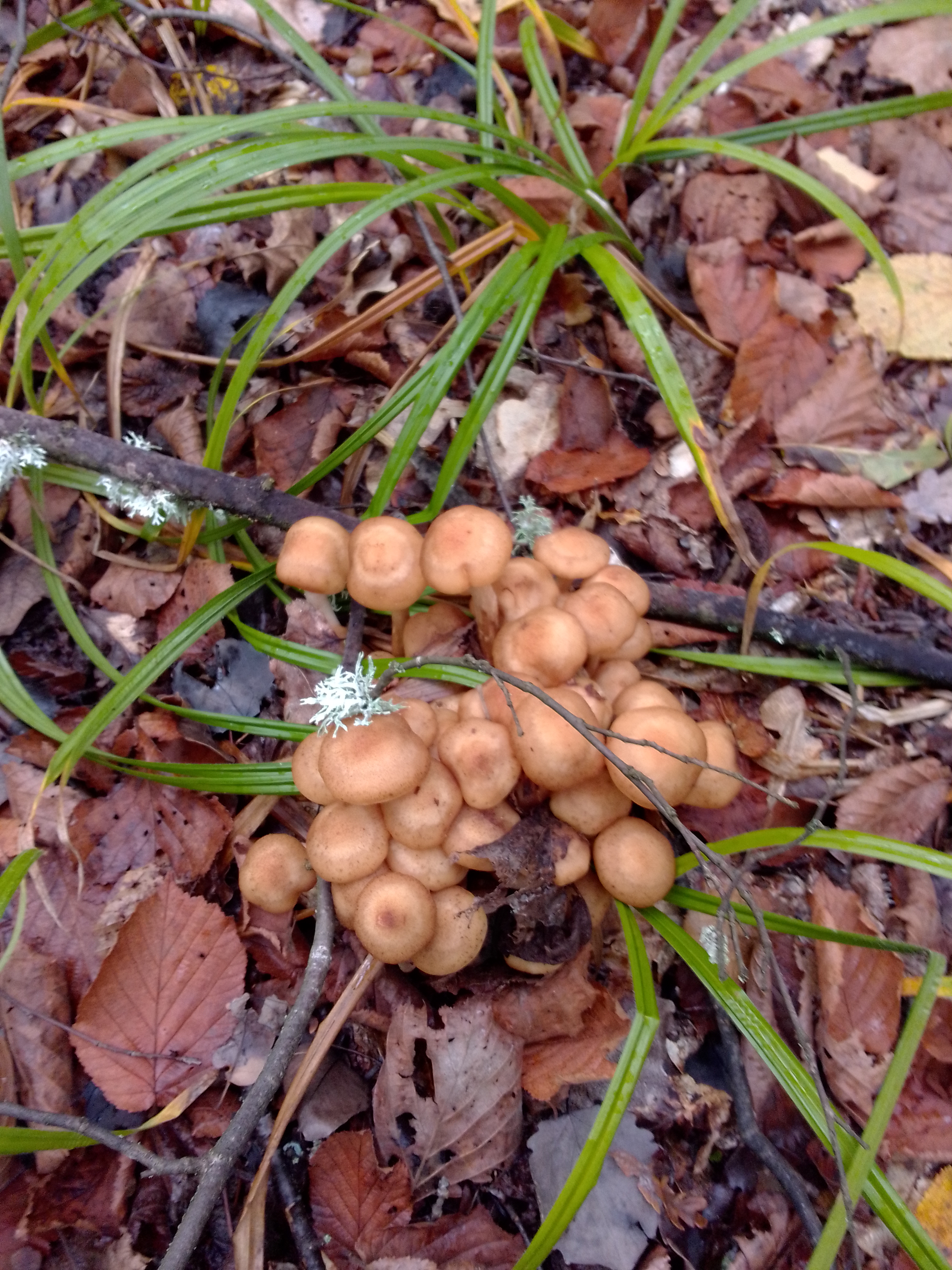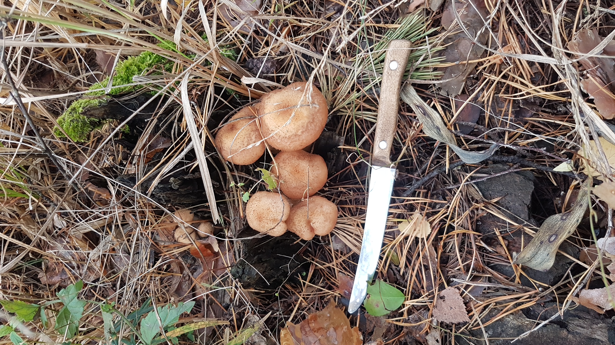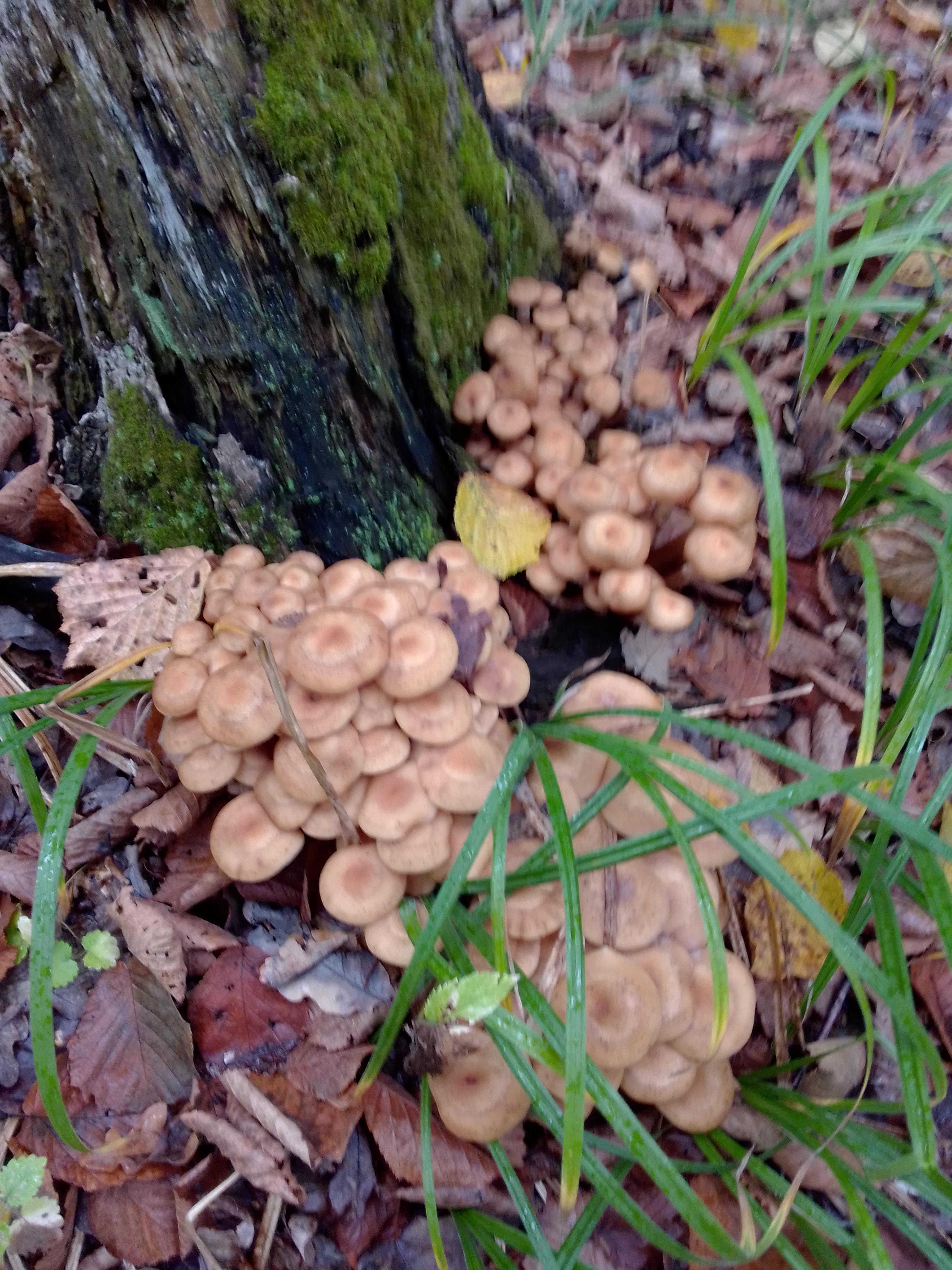 Сегодня уже в 6.00 был на Петровских озерах. До 9 часов всю округу прошел . Итог 7 опят пеньковых. Переехал на Маклок. Прошелся по проверенным местам.30штук мелко опят . Опят нашел на березовых пеньках.