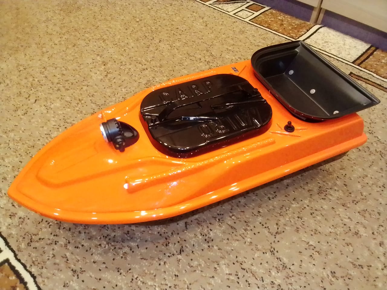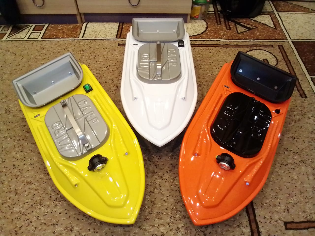 Продаются прикормочные корабли собственного производства NITRO CARP г. Воронеж. Размеры: "БОЛЬШОЙ" - 74*34*24 см, загрузка прикормки и оснастки до 1 кг , "МАЛОЙ"- 64*32*21 см, загрузка прикормки и оснастки до 0,8 кг. Цветовая гамма: низ - черный, серый, белый; верх -белый, оранжевый, жёлтый, бункер и крышка - белые, черные, серые. Комплектация корабля - пульт от 3 до 6 каналов, АКБ 12В от 13000 мА до 20000 мА мотор бесколлекторный, габаритные огни (по желанию подключение габаритов с пульта), зарядка 12-220В, подставка под корабль. Дополнительная комплектация оговаривается и оплачивается отдельно: возможна установка фонаря, телеметрии АВТОПИЛОТ; приобретение чехла для пульта, сумки для переноски, хранения, транспортировки корабля; зарядка IMAX B6 и дополнительная АКБ.