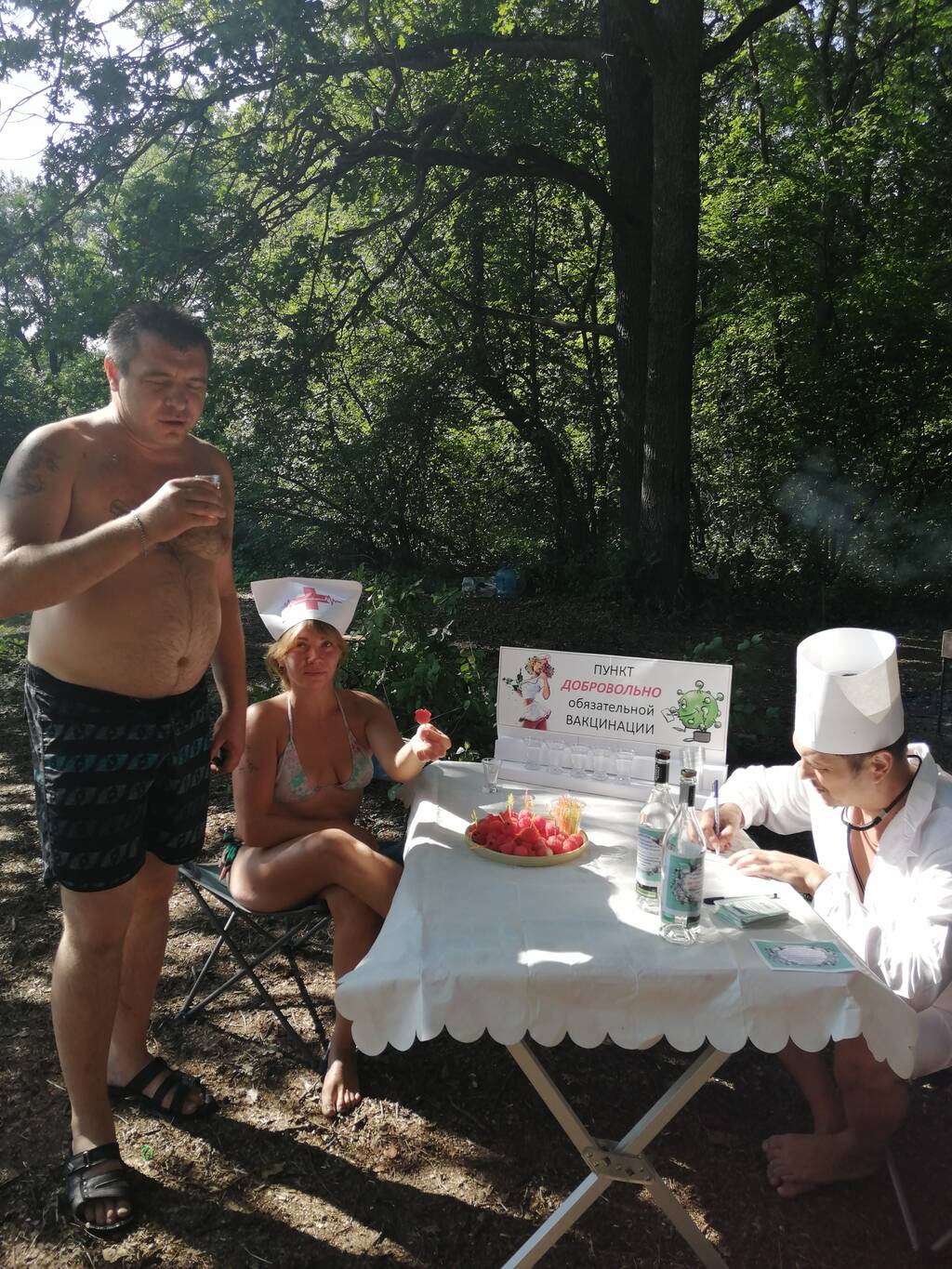 . Ночью гитара, танцы, все класс!!!!!! Утром поехали с Димкой про забрать нашего форумчанина Антона, дорога конечно жесть.Сегодня баня у реки, вкусности от гостей и т.д. Ромка с супругой затеяли вакцинацию, все прошло на ура