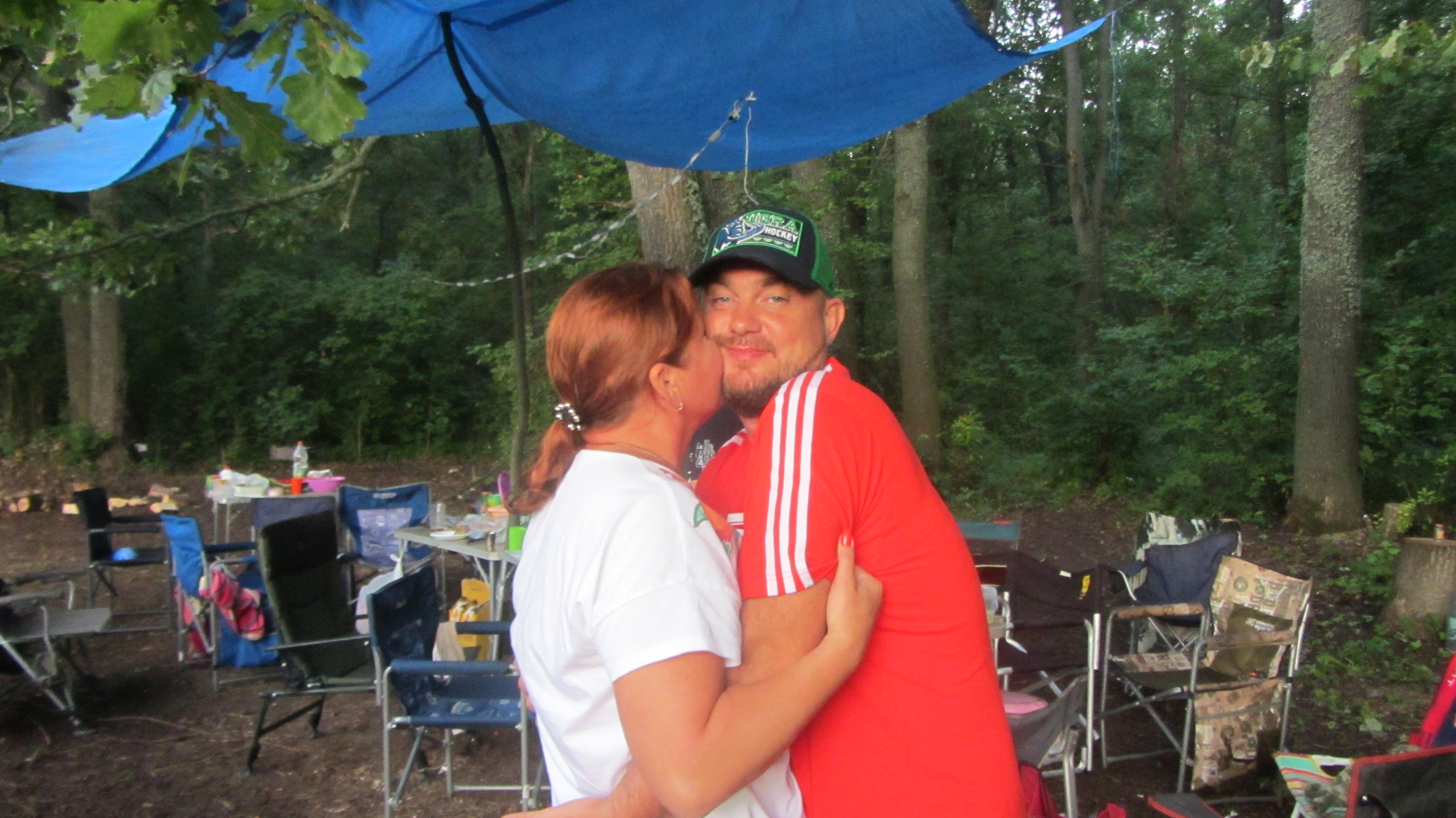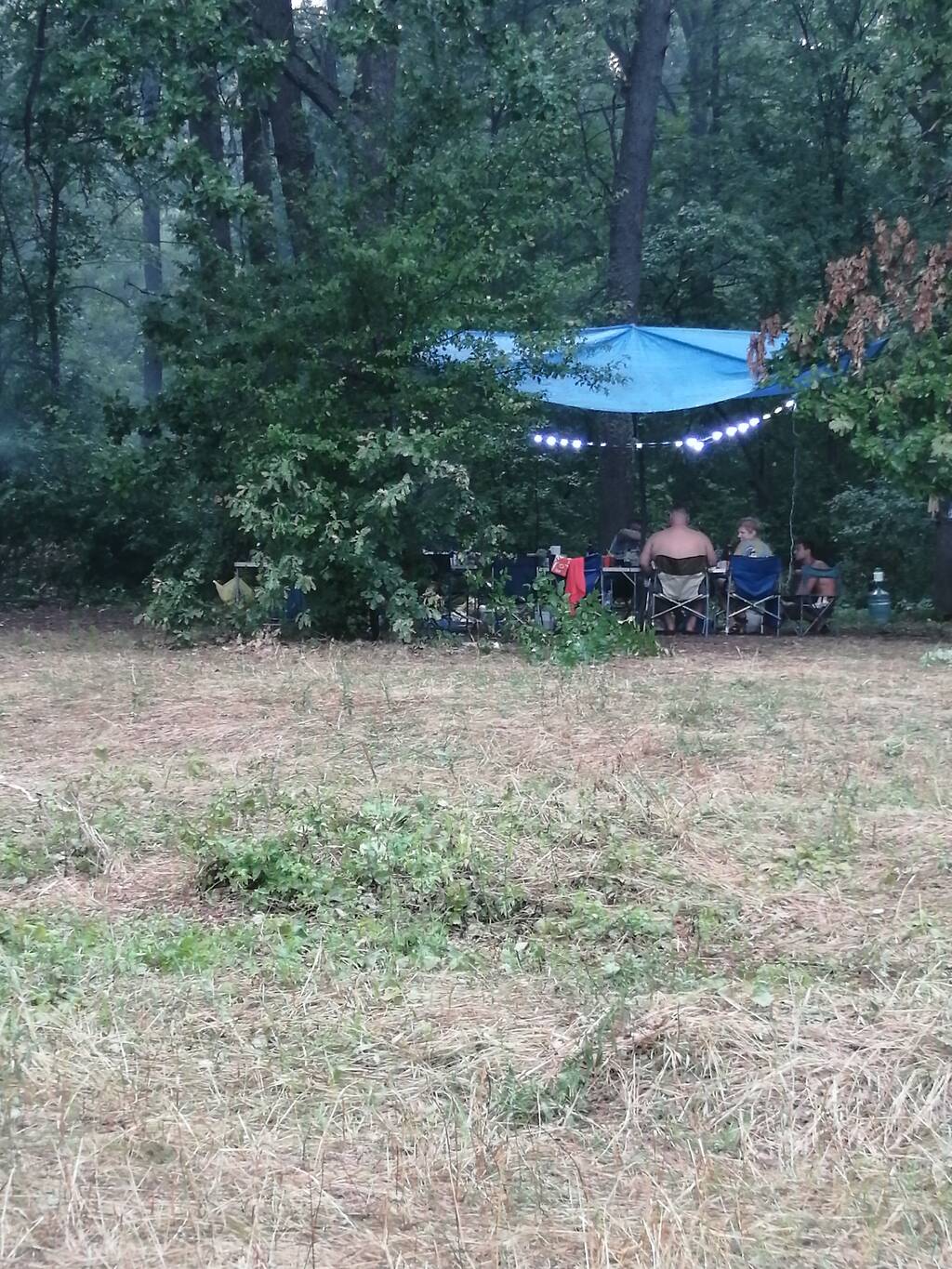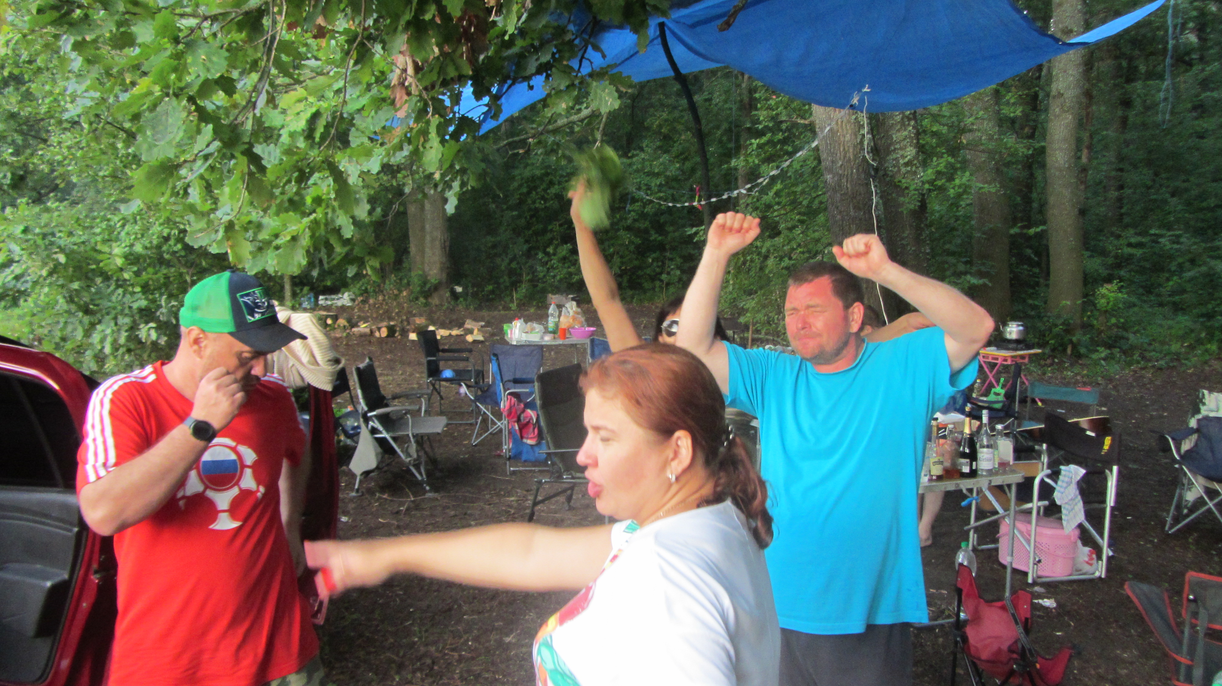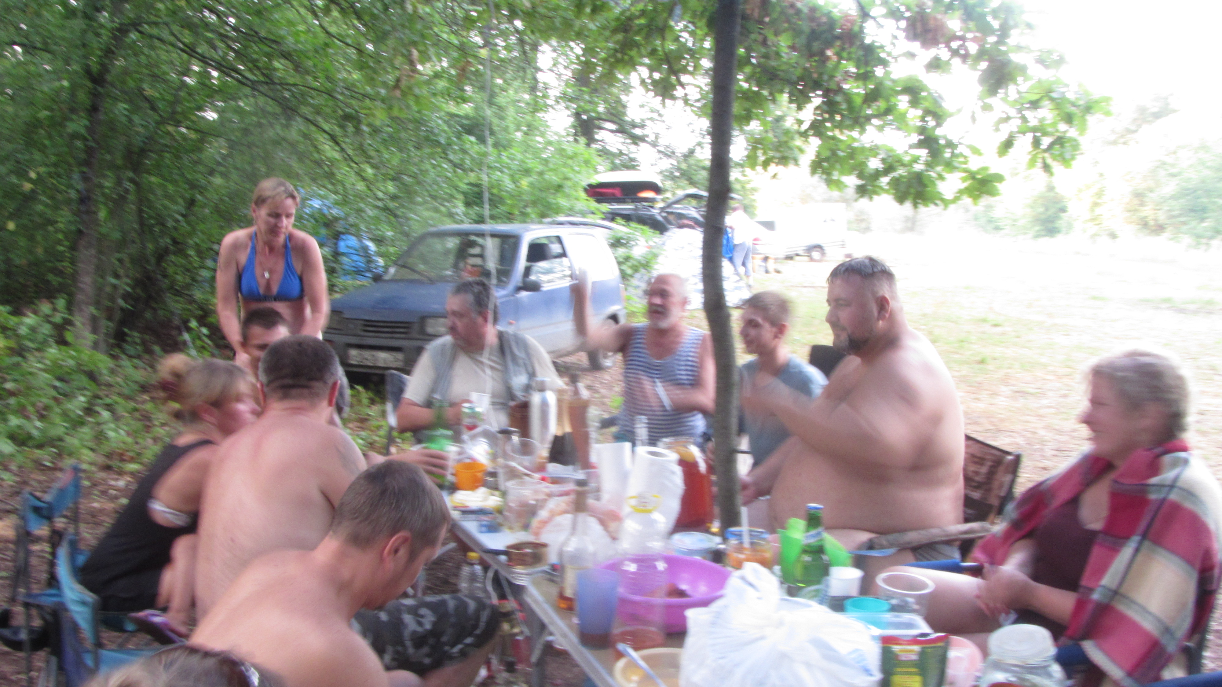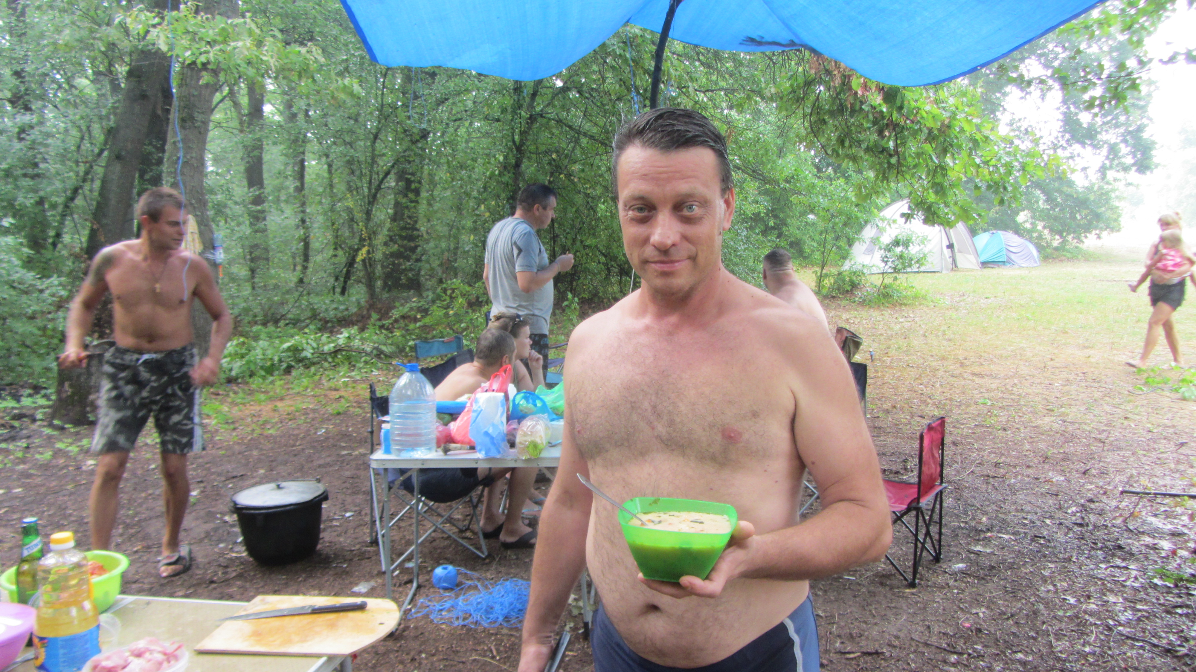 Перед дождем успели натянуть тент над столами, сначала чуть брызнул, потом час стеной с громом и молниями. Кто потом приезжал, просто скатывались.