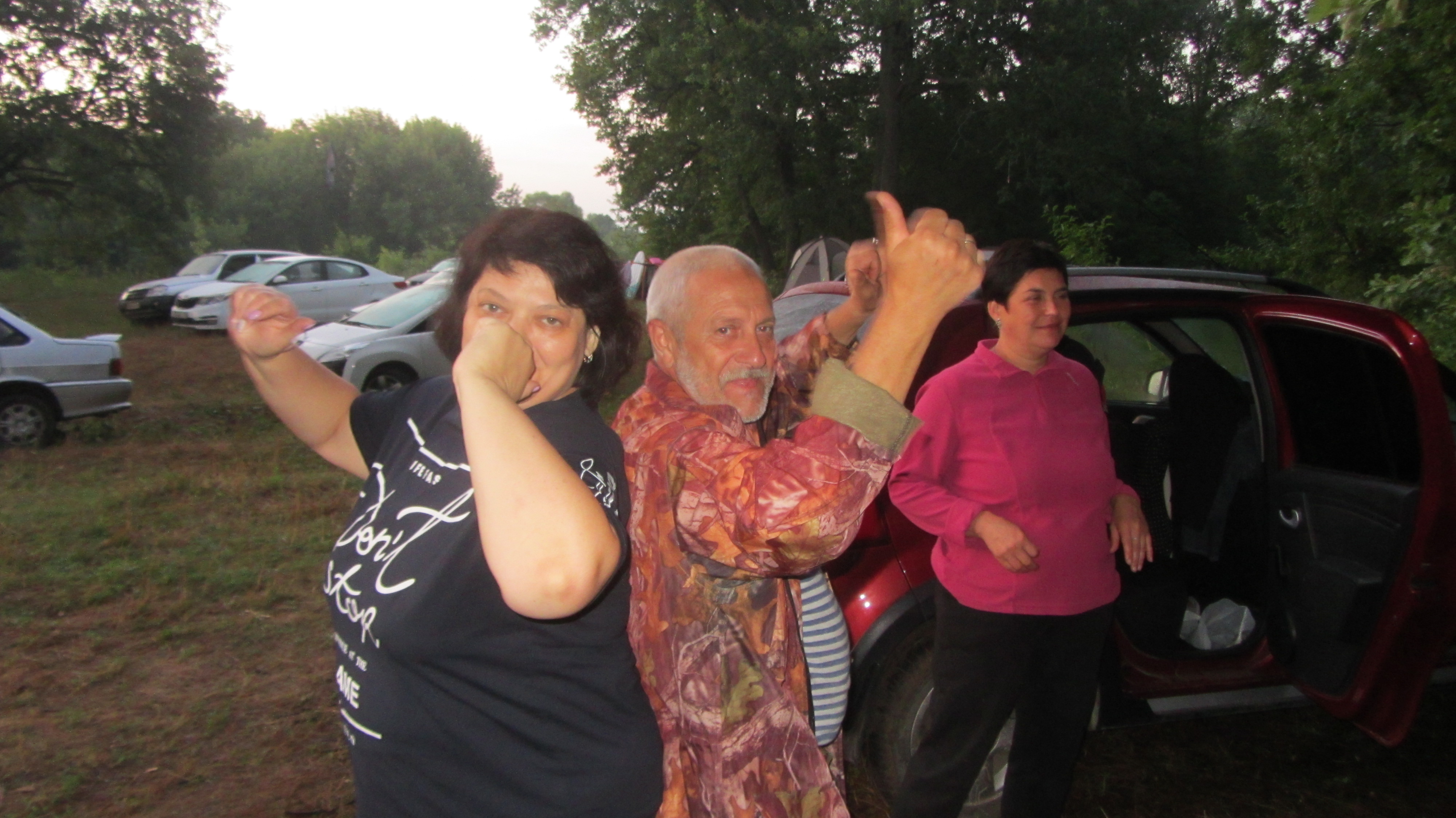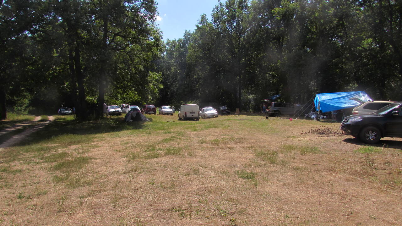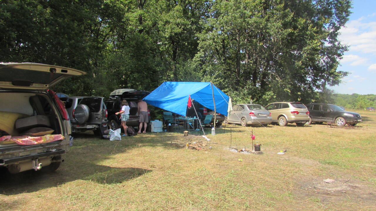 Были первыми экипажами для захвата поляны. Приехали час в 10, заняли часть большой поляны и начали расставлять лагерь, чуть позже подъехали Кристина с мужем Владимиром и детьми.