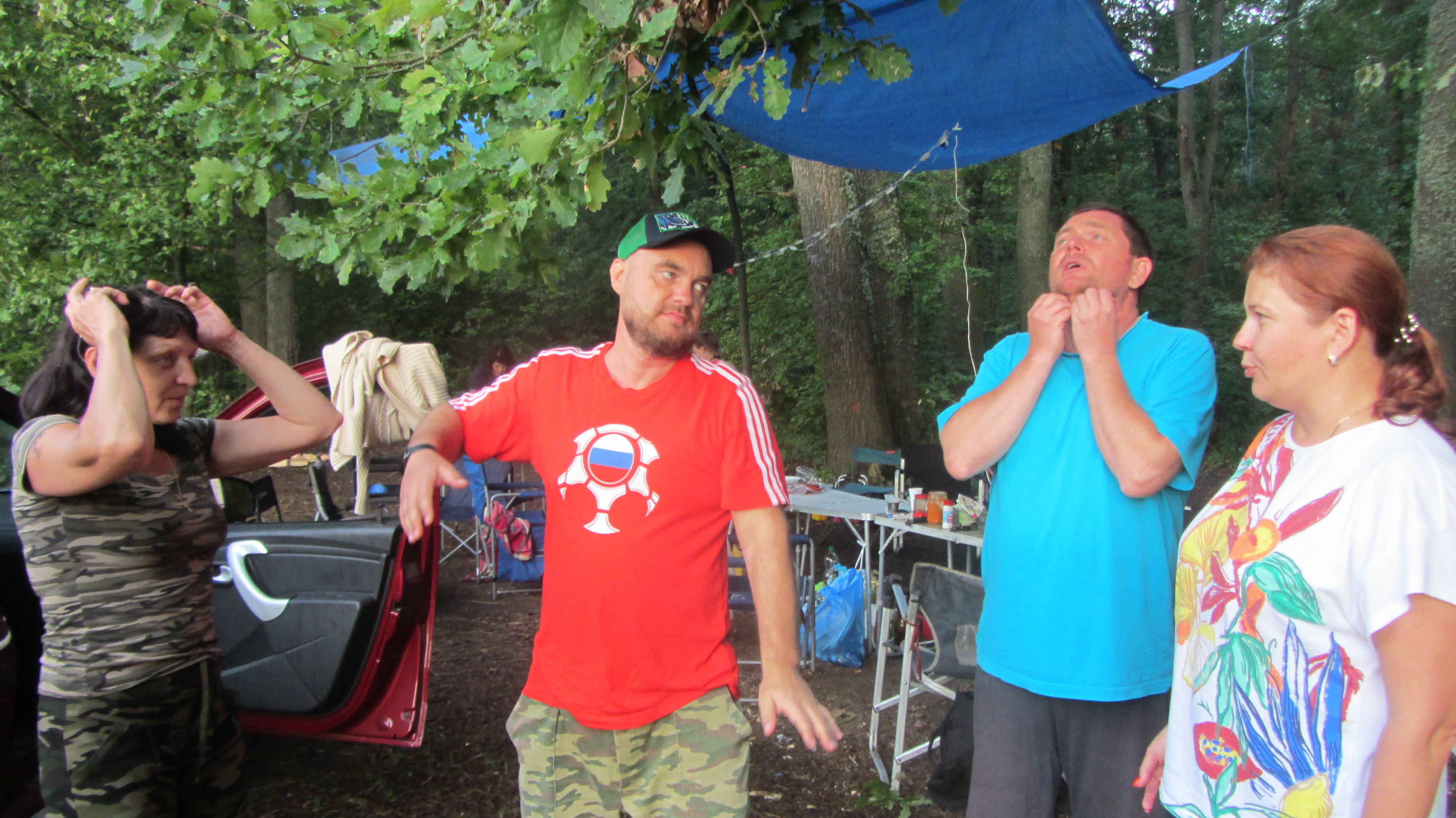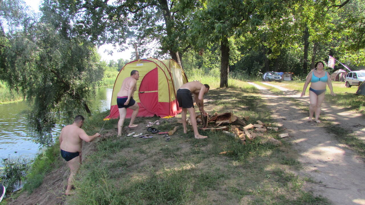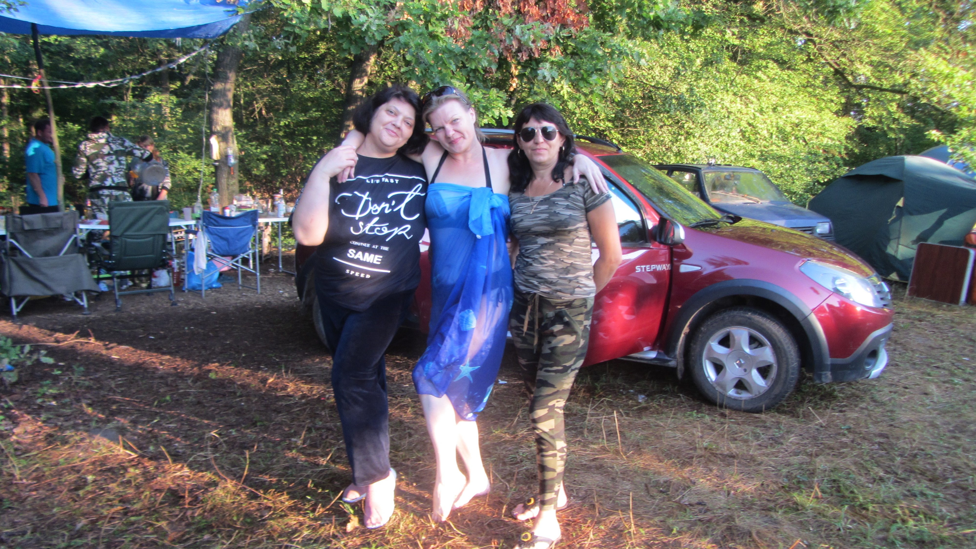 Были первыми экипажами для захвата поляны. Приехали час в 10, заняли часть большой поляны и начали расставлять лагерь, чуть позже подъехали Кристина с мужем Владимиром и детьми.