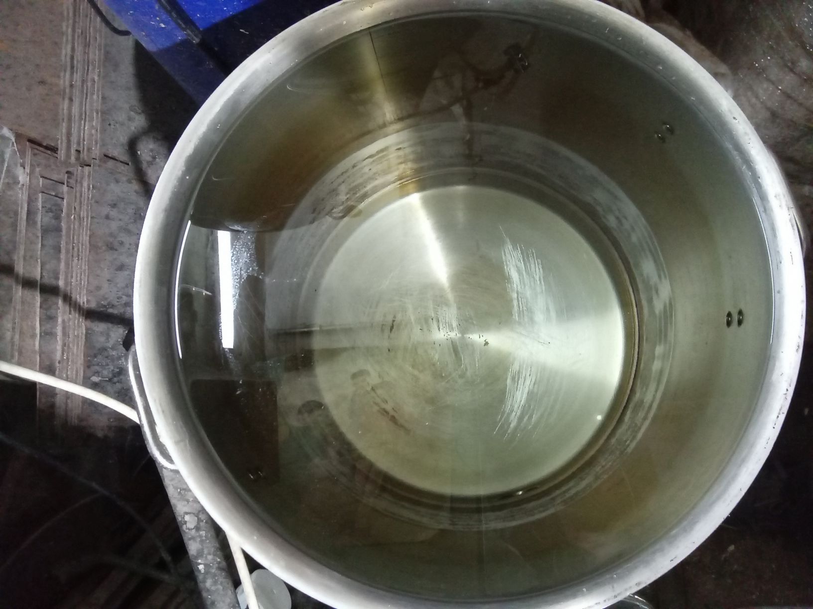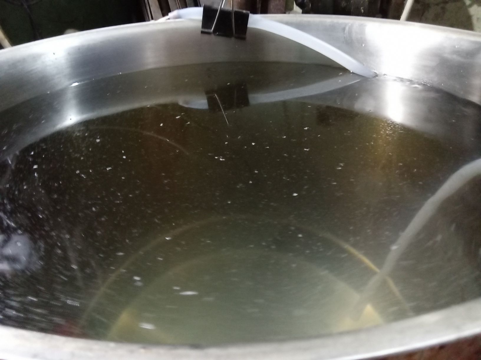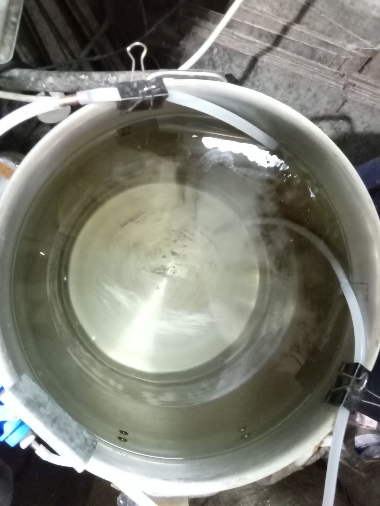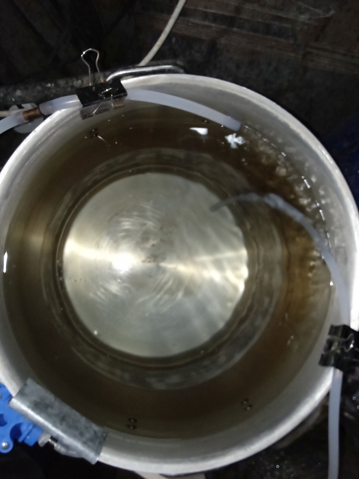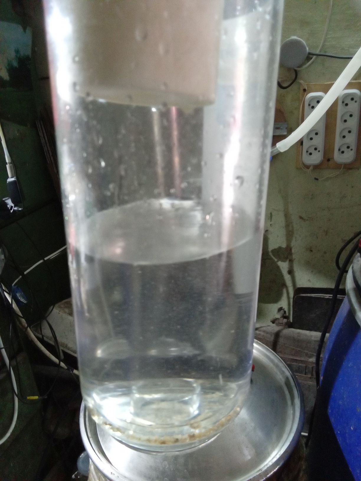 Затем снова хвосты заливаем в куб, пересобираем оборудование и снова прогоняем жижу на невысокой мощности нагрева (1,5-1,8кВт), но при этом кран подачи воды открыт на всю. Остаток в каналью.
