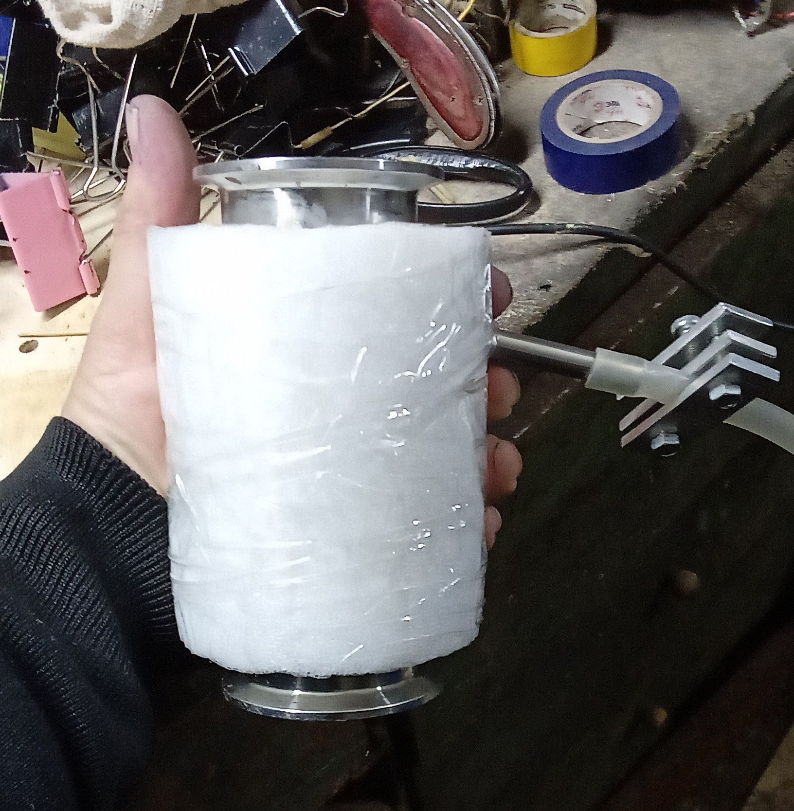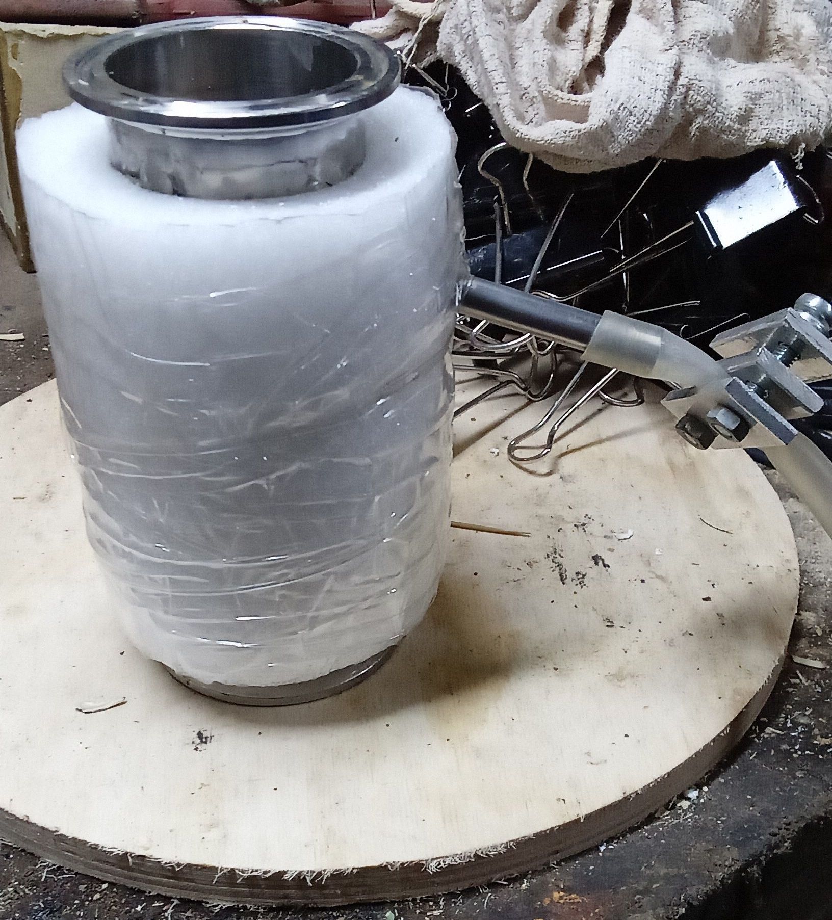 Второй перегон начинаю со сборкой колонны как для перегона сахарного. 5-6 пыжей (3 из них - медь) в 80см царгу. Головы отбирать начинаю через 15 минут после стабилизации температуры в колонне. Отбираю 5-8%, на запах. Потом выключаю, даю пару часов остыть и флегме стечь в куб.