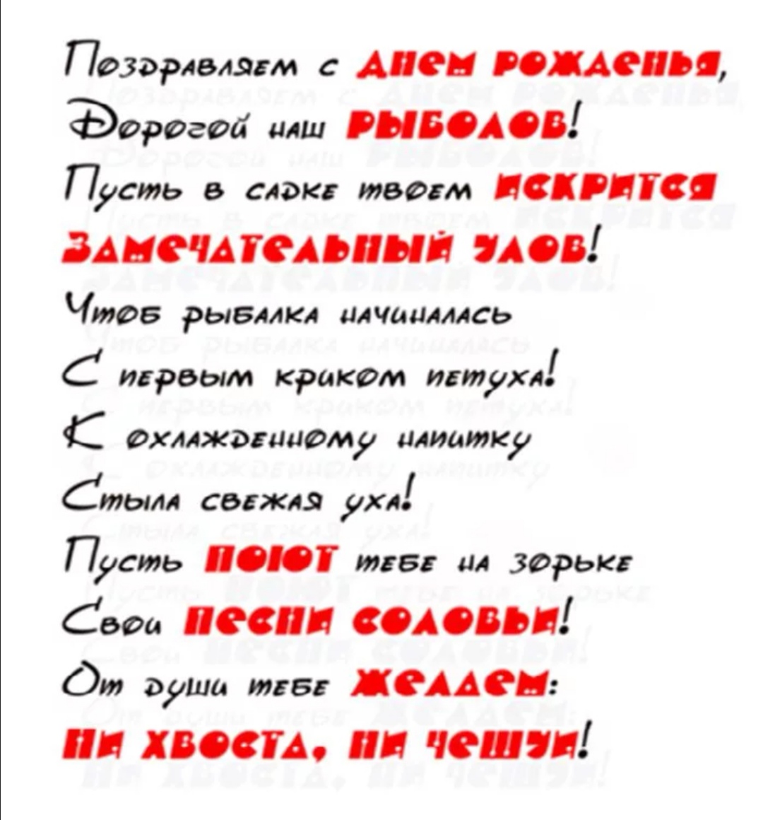 Вы здесь » Клуб рыболовов, охотников и грибников Воронежской области Адреналин » Треп » Поздравления #4