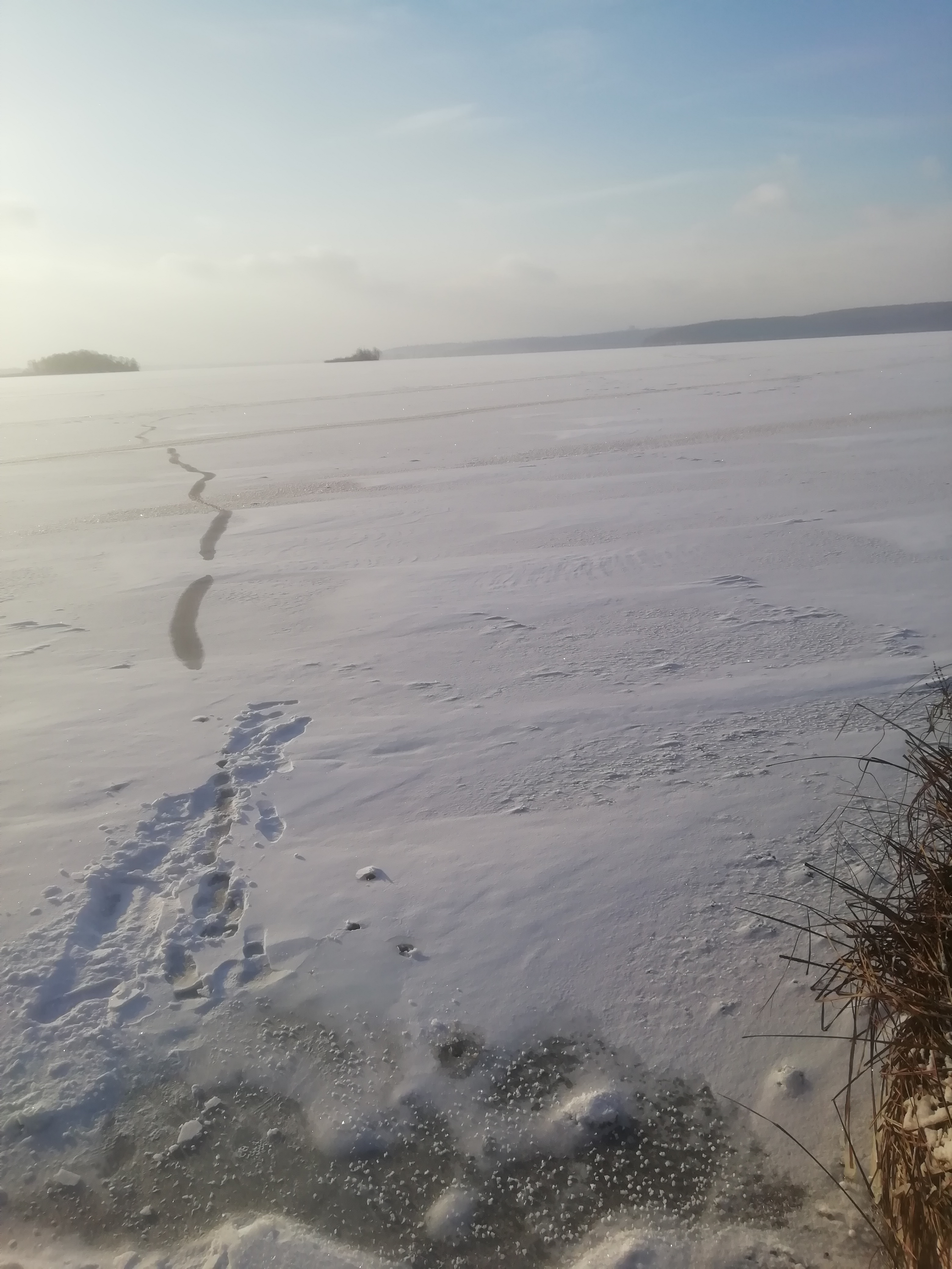 С Бонькой ходили сегодня вечером гулять на водохранку в раоне Маяка. Я свободно метров тридцать отошёл. Дальше были непонятные штуки мокрого цвета, в ночи тем более стрёмно. Не рискнул со своими за соткой. Палку покидали собачке и свалили. Там эти небольшие промоинки были и по январю, сливают что-то тёплое по ходу.
