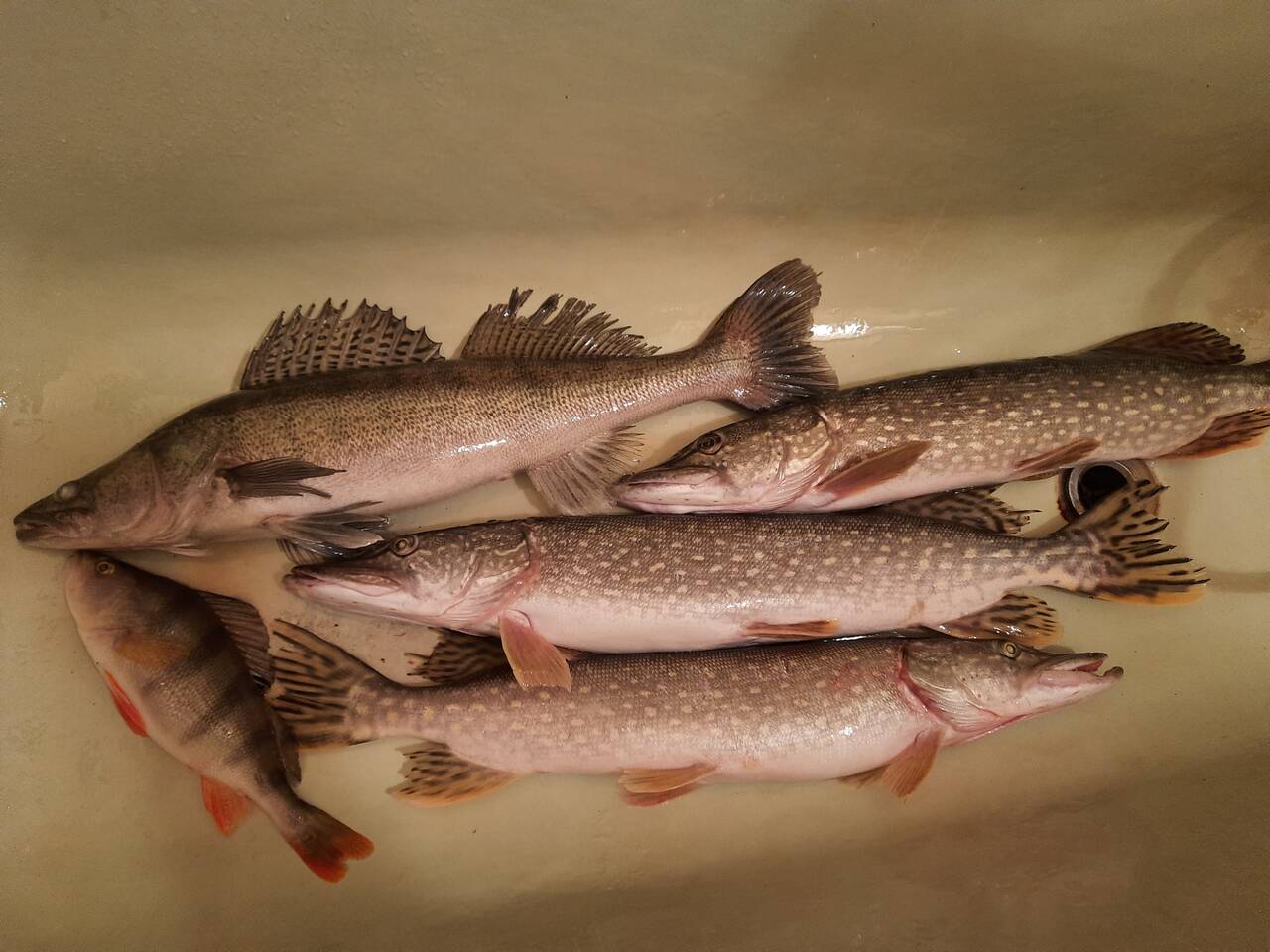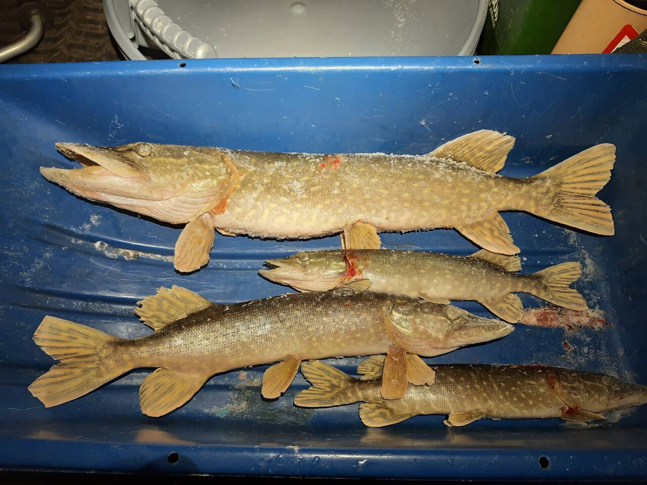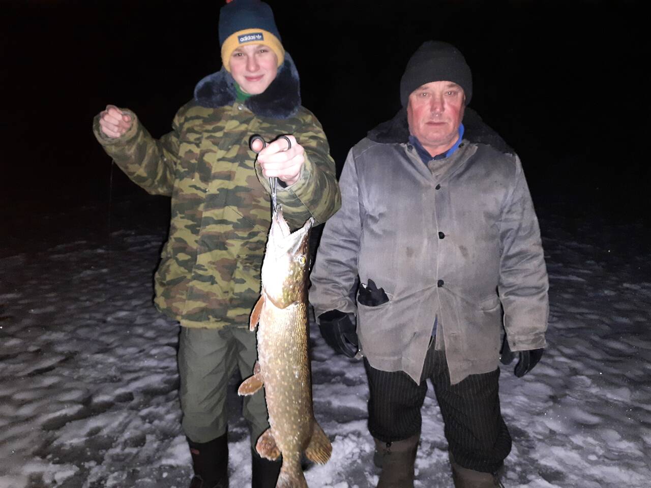 Поклевки начались еще в процессе расстановки. Поймали штук 8-9, но все в основном щукины дети, которых сразу топили с напутствием позвать взрослы. Забегая вперед, скажу, что позвали! Парочку жадных безнадежных мелких все же пришлось забрать. И еще две съедобных: килошка и двушка. После заката поехали ужинать и греться, оставив жерлицы на произвол судьбы. За бортом -18.