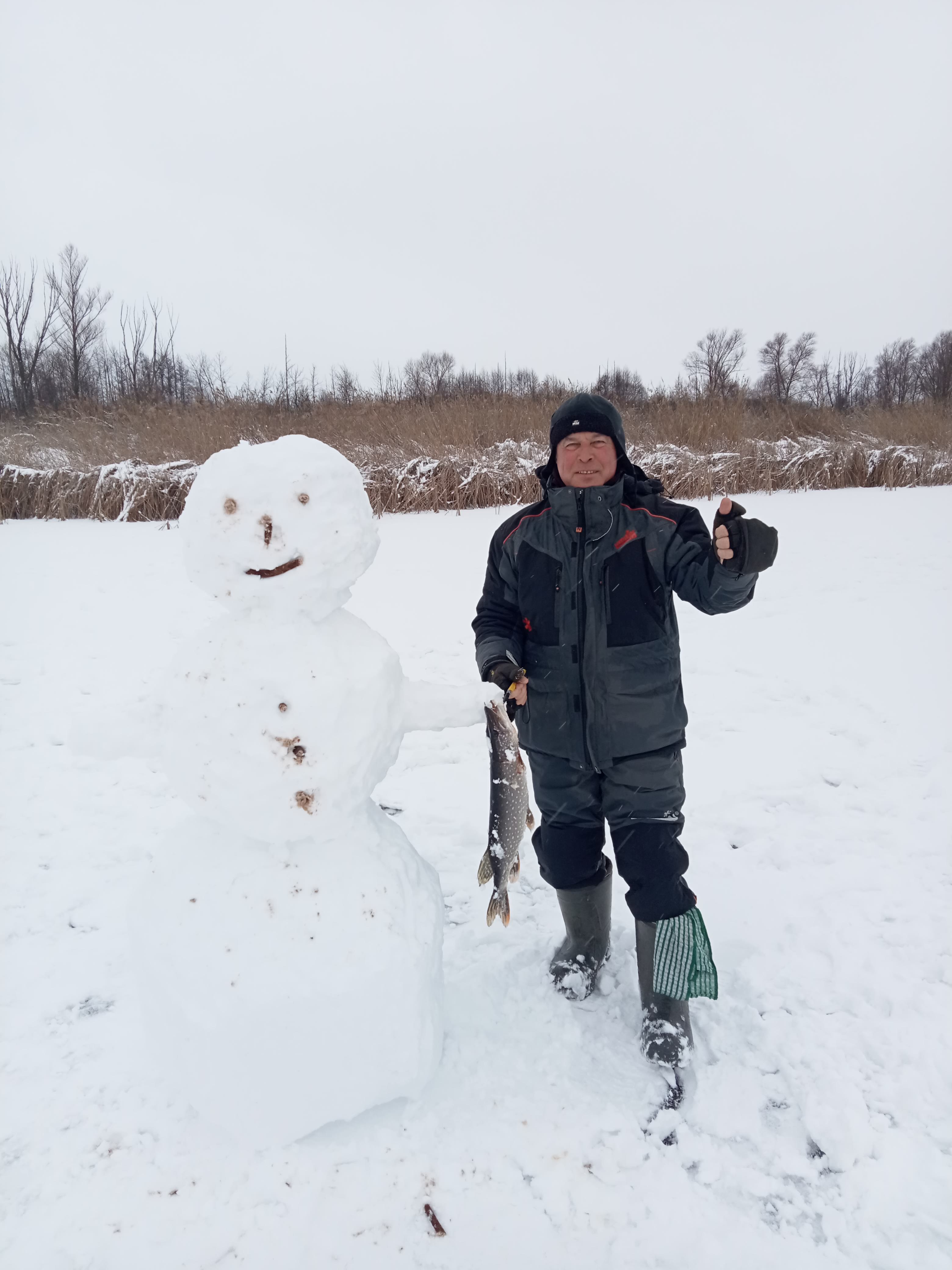 Погода была тёплой, но очень мокрой. Мой старенький "Фишермен" не долго сопротивлялся мокрому снегу с противным дождиком и стало не совсем комфортно. Я чувствовал себя гордым лебедем - задницей в ледяной воде, вытерпел до 14-ти часов и начал собираться ко двору. Народ со льда почти разошелся, по разговорам проходивших мимо грустно было у всех.