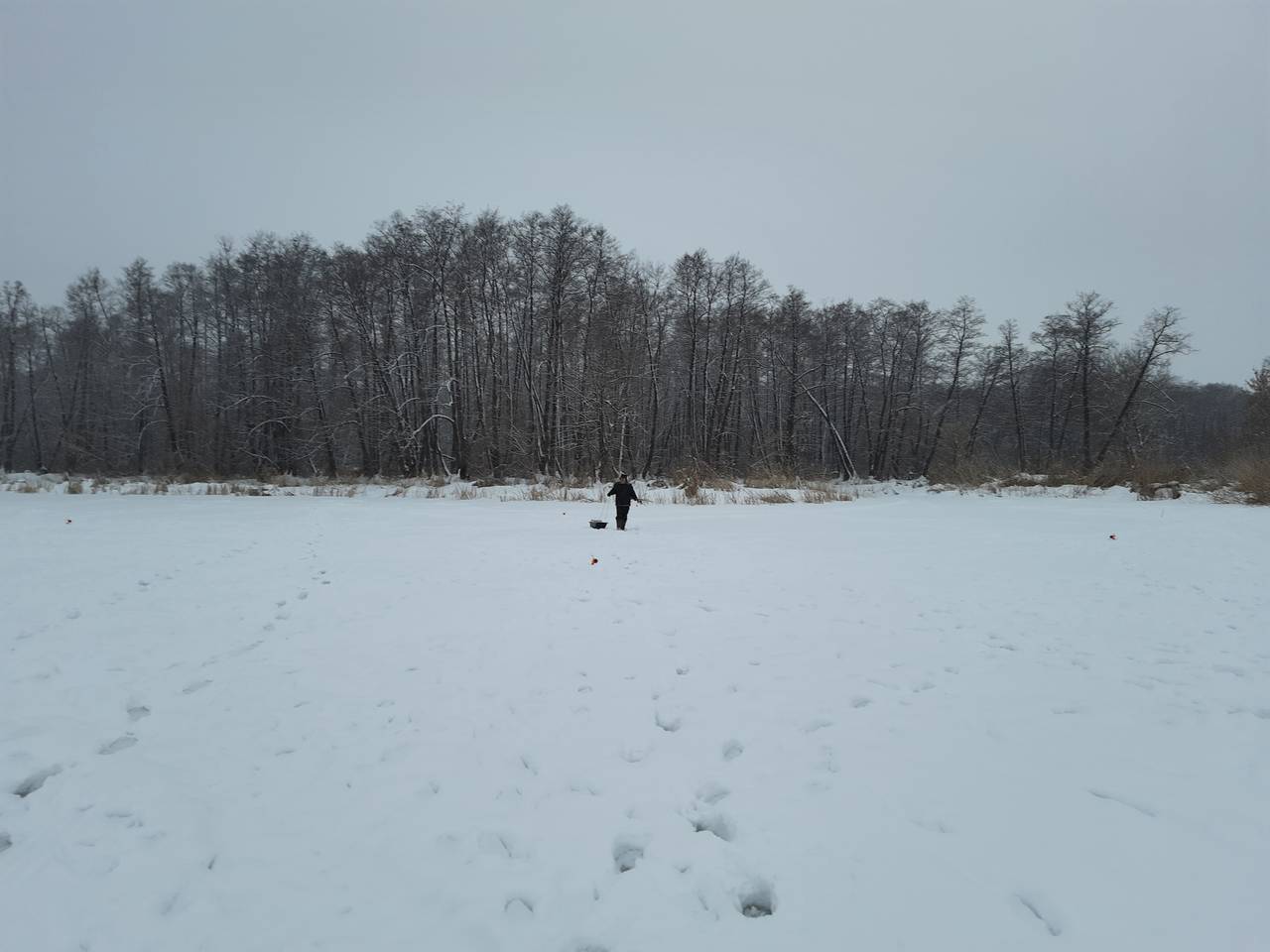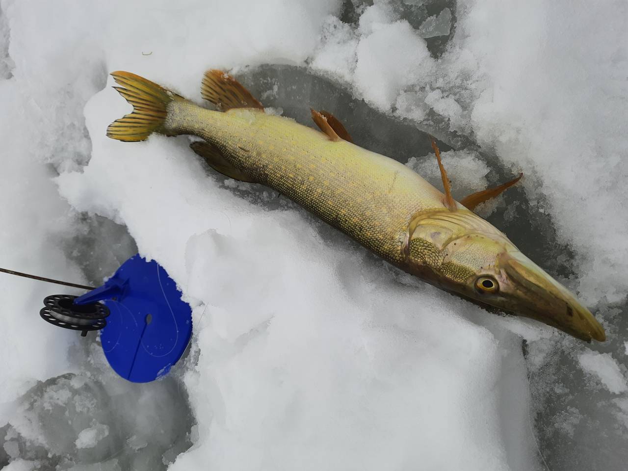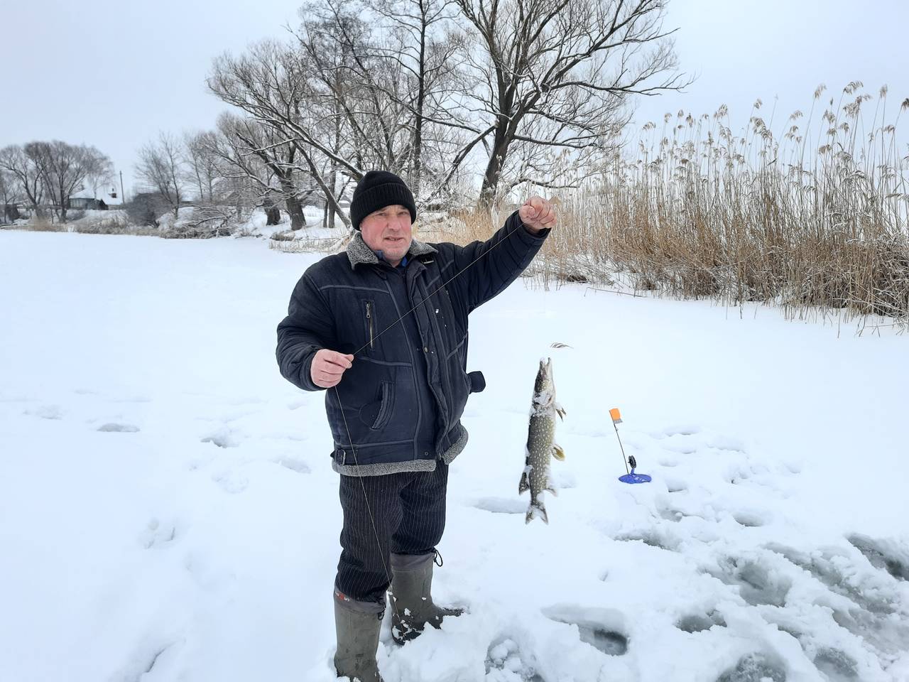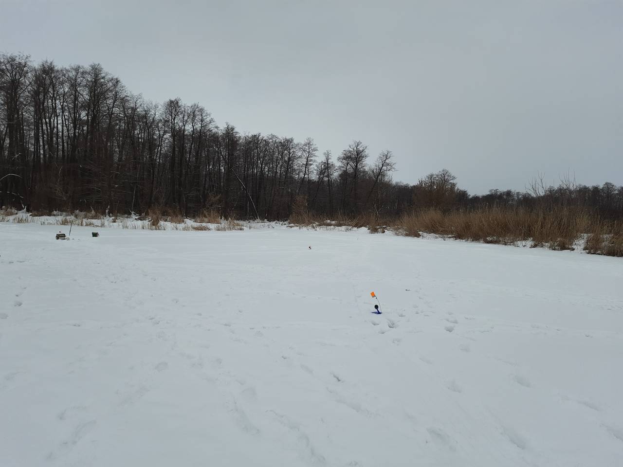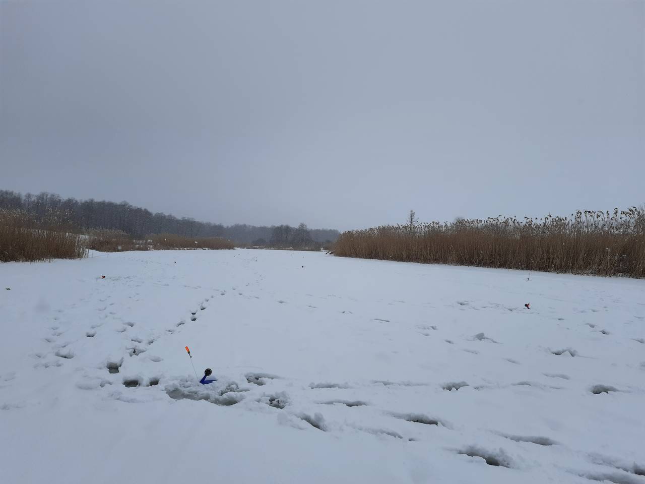 Ставлю третью жерлицу,на первой флаг,подкилошница на льду. На мели взяла,вся в пиявках. Через час с русла полторашка,и чистая.