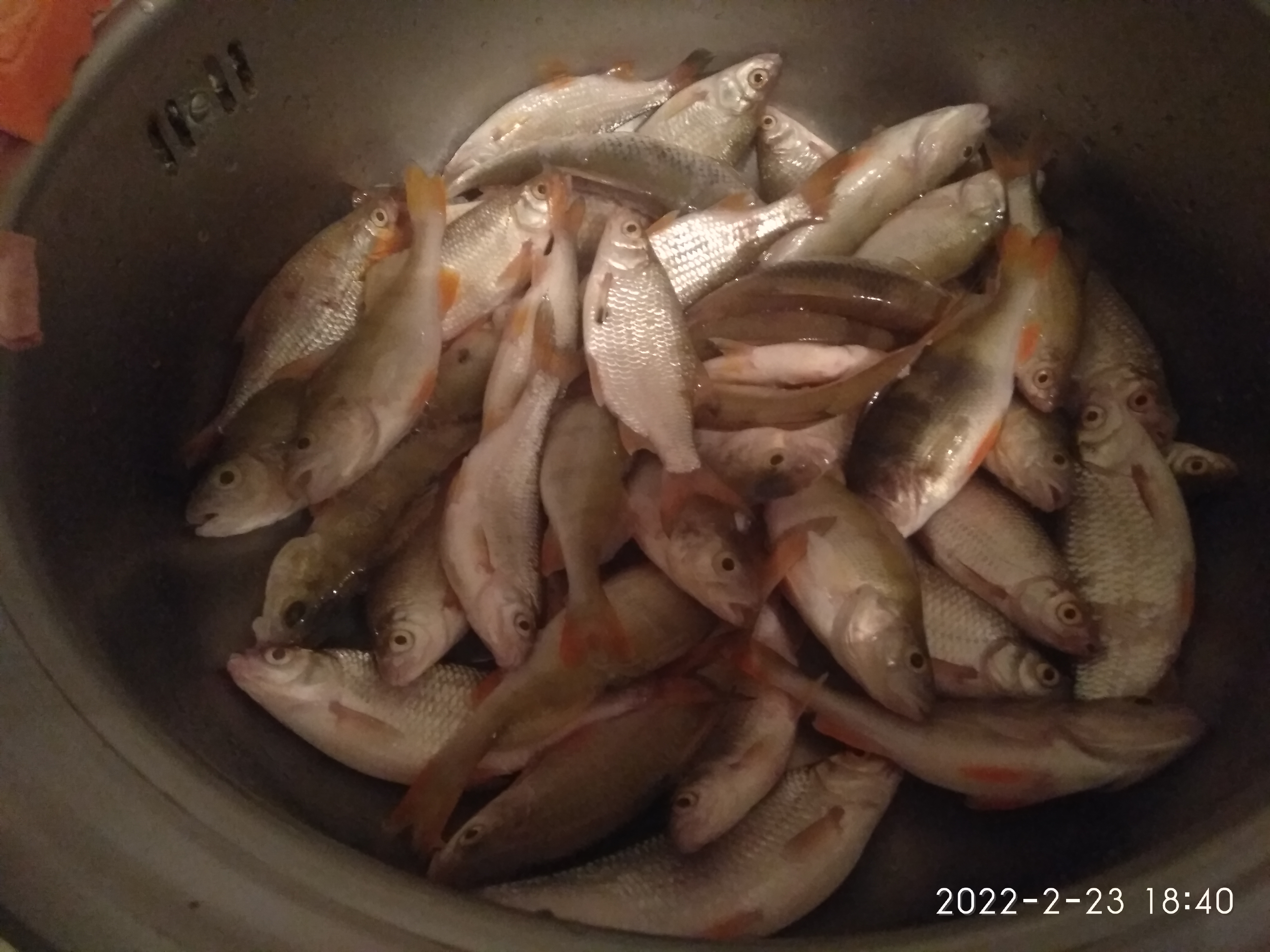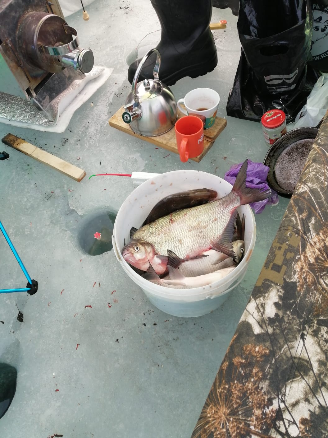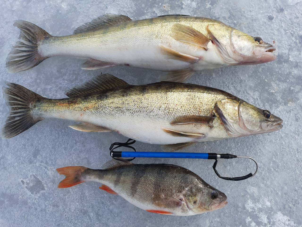 Результатов особых нет. Прикололо, когда у кого-то из поплавочников была результативная поклёвка и кто-то подо льдом собрал ему три удильника и он пытался и рыбку достать, и удочки в лунки не утянуть.