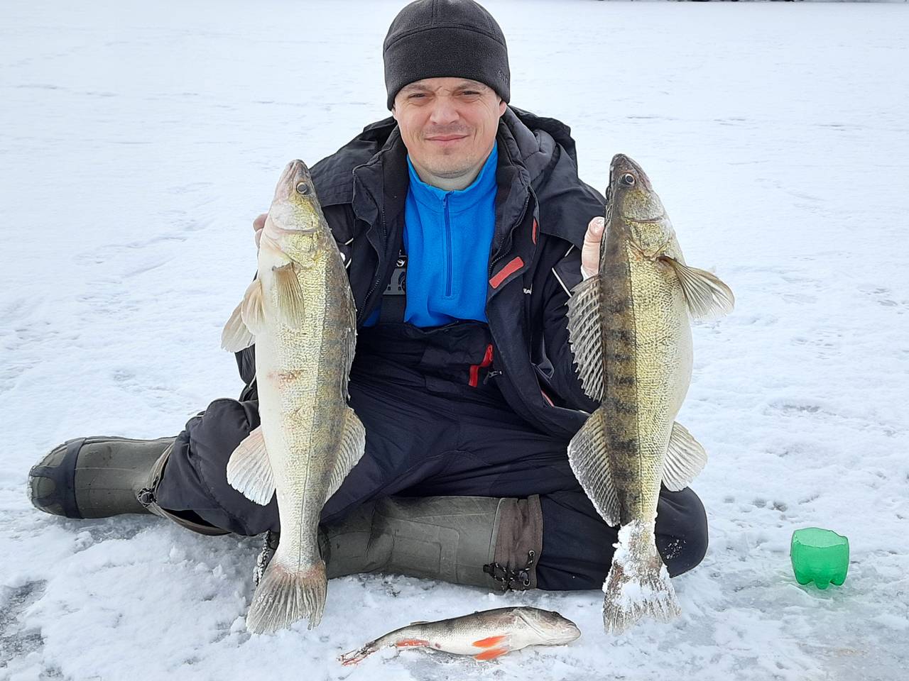 В воскресенье, из-за ещё более сильного "губастого", на лёд не пошел. Знакомые были в палатках, результат тот же, что и у меня в субботу.