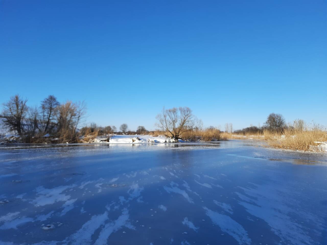 15 дежурных жерлиц промолчали. На основное русло реки вчера не попали, лед был еще 3-4 см. Сегодня после -18 лед на русле вырос до 5 см и 100 кил живого веса держал без проблем. Быстро ставлю на рассвете 10 жерлиц и... в течение получаса получаю на них 10 поклевок! Правда, съедобная закилошная только одна. Переставляю оставшийся десяток жерлиц на русло и началась беготня, в самом деле, как по первом льду. Много холостых поклевок, отпущеной мелочевки. Но были и от кило до 1,5. После обеда еще 4 штуки и на мормышку несколько зачетных плотвиц и красноперок. К вечеру погода поменялась, пошел снег, потеплело до нуля, клев тоже, и хищной, и мирной рыбы сдулся до нуля.