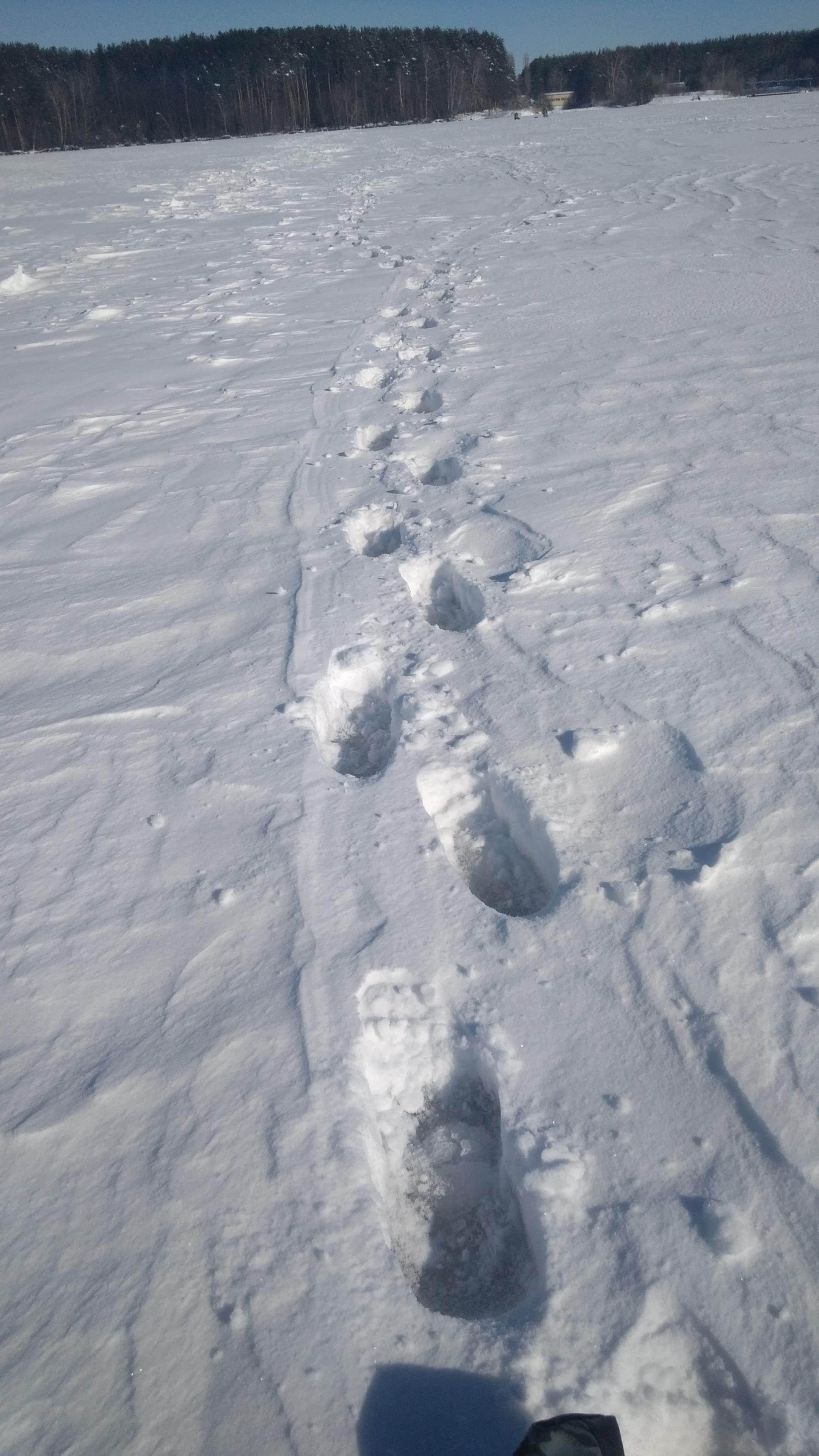 Не тратя время сразу пошел на 4-5 метровую глубину,пока шел два раза перекуривал,дыхалки не хватало,снег, под ним вода,тяжеловато.десяток лунок,пяток не крупных плотвиц,решил перейти на два метра,где до шести и просидел.Гвозекубик,десятка под три недолодошечных окуней и плотвиц.Клев плохой,ноги отваливаются.