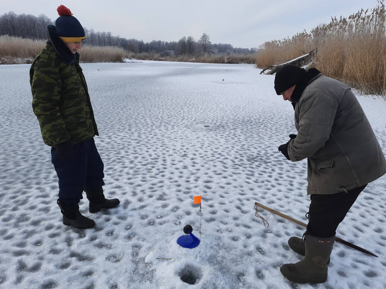 Подбегаю...Шумовки х..й!))Удочка возле лунки раскарячилась.!