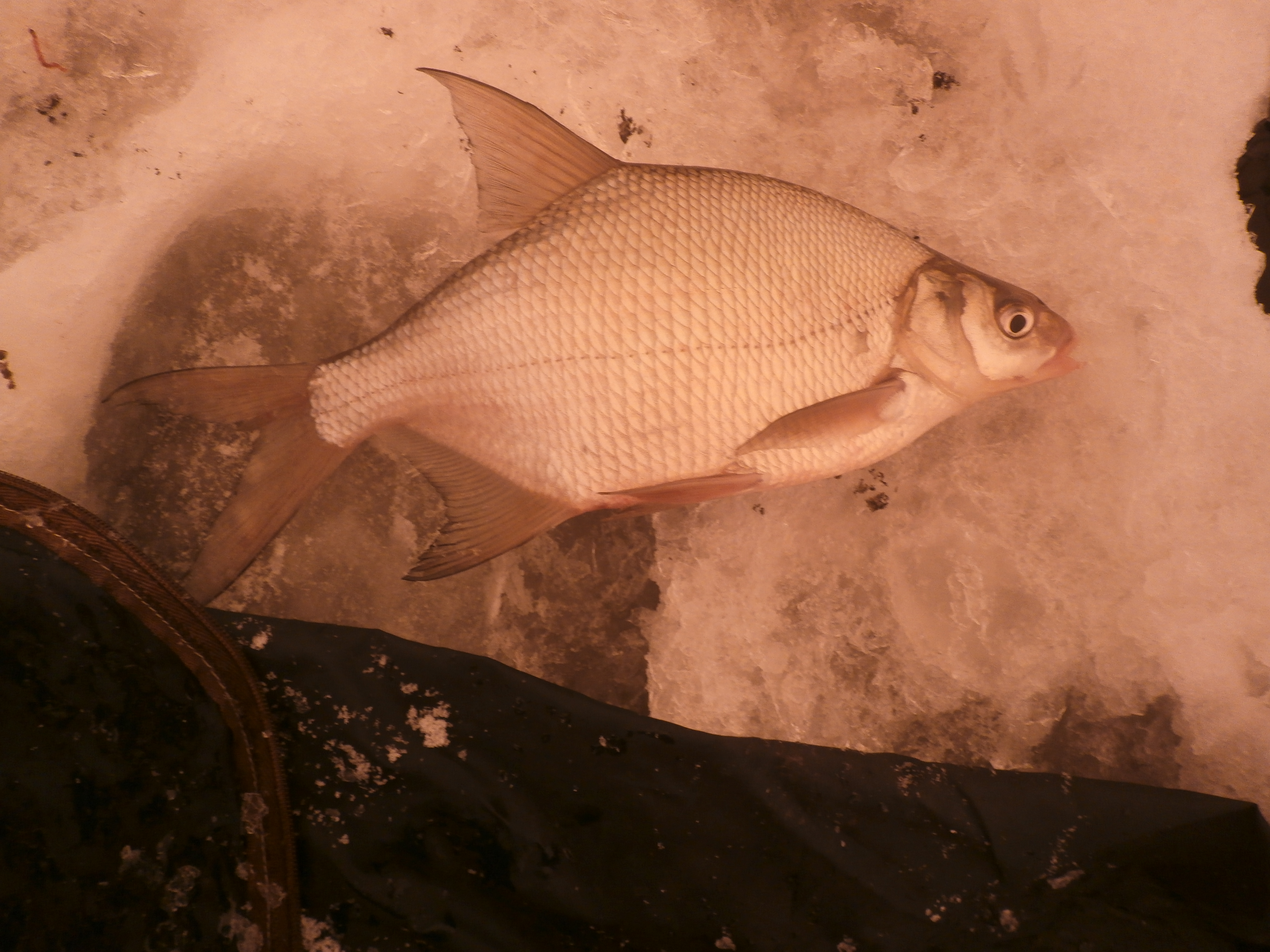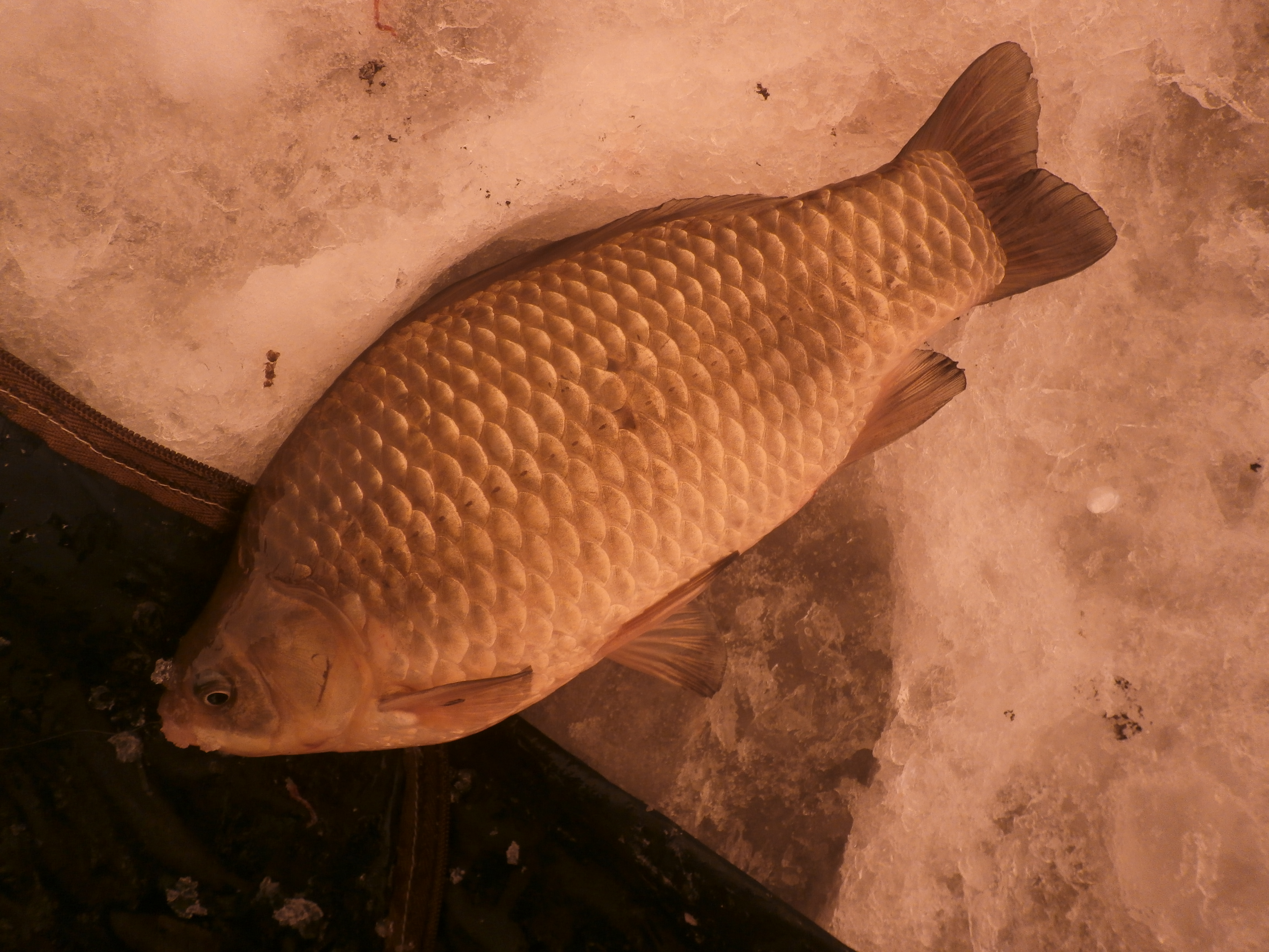 Честно скажу, я так то карася зимой ловлю редко, а тем более таких размеров, короче это первенец.