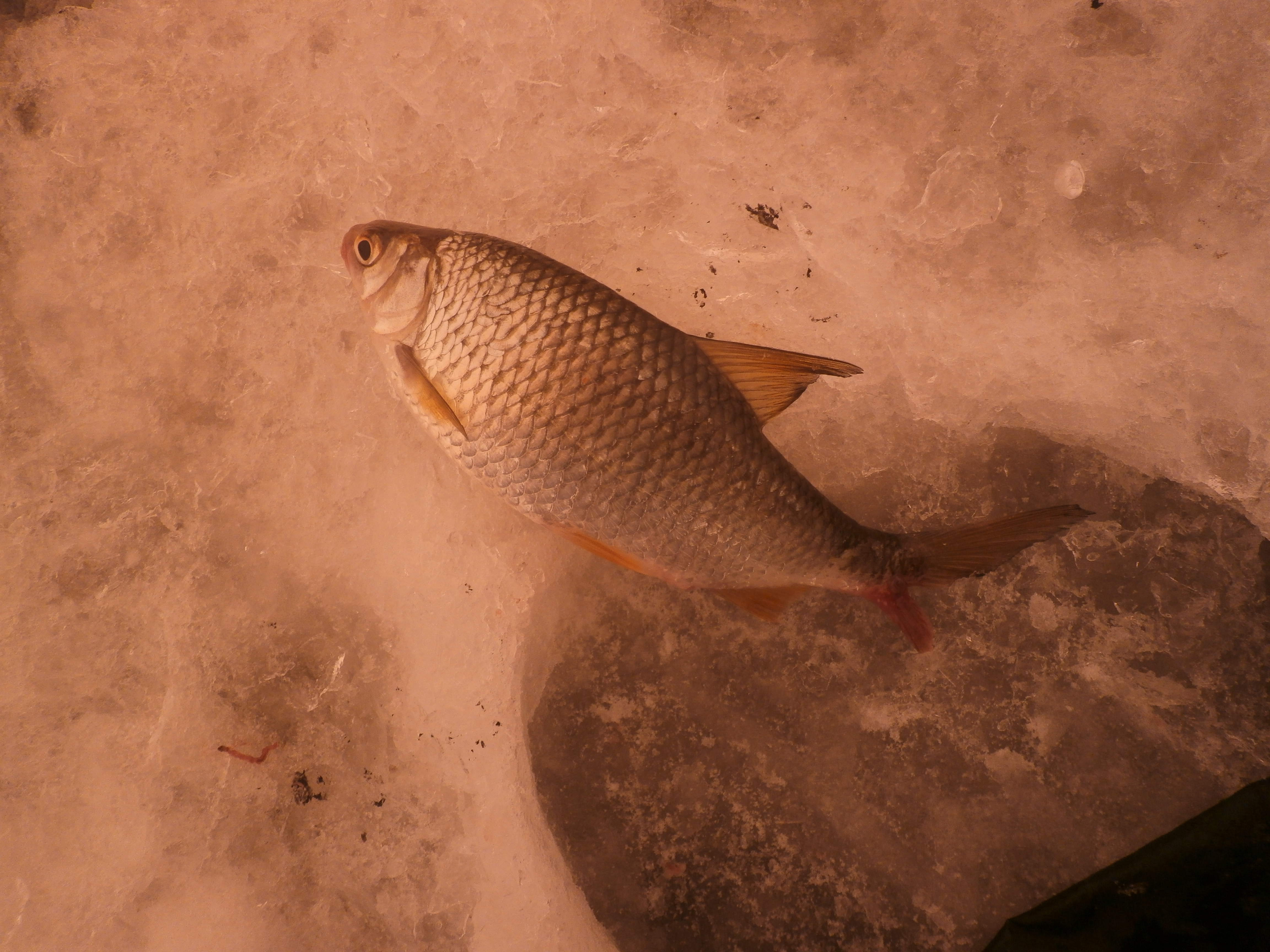 И снова тишина, время к обеду ближе, да и я уже в роде дамой собираться начал, снова поклевка, тоже достойное, Еще один "подлец" но уже по крупней, но зараз уже на самом финише перетер леску о лунку и с пирсингом винтанул обратно. Кстати так как я ловил в палатке, ловил с одного места. В общем как то так в 13:00 уехал домой.