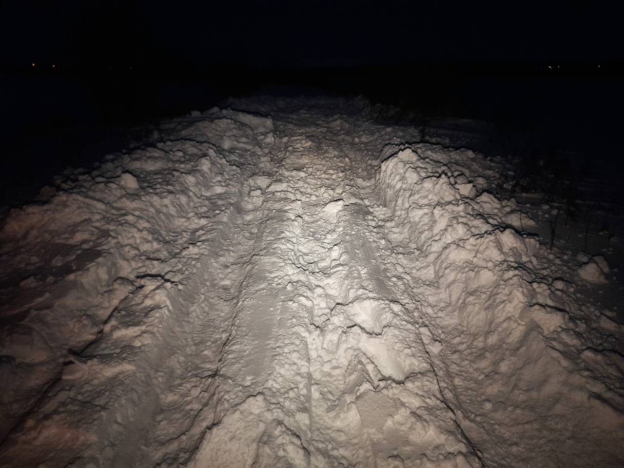 Сын сегодня поехал,говорю,я вчера колею пробил по полю,езжай. Звонит,твой след забило напрочь,пришлось рядом по новой пробивать Сантафешкой,прошел,полями километров 5.