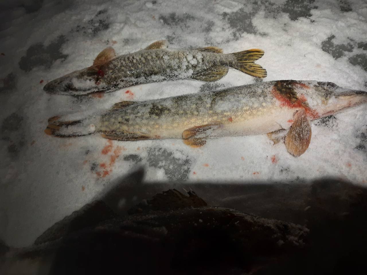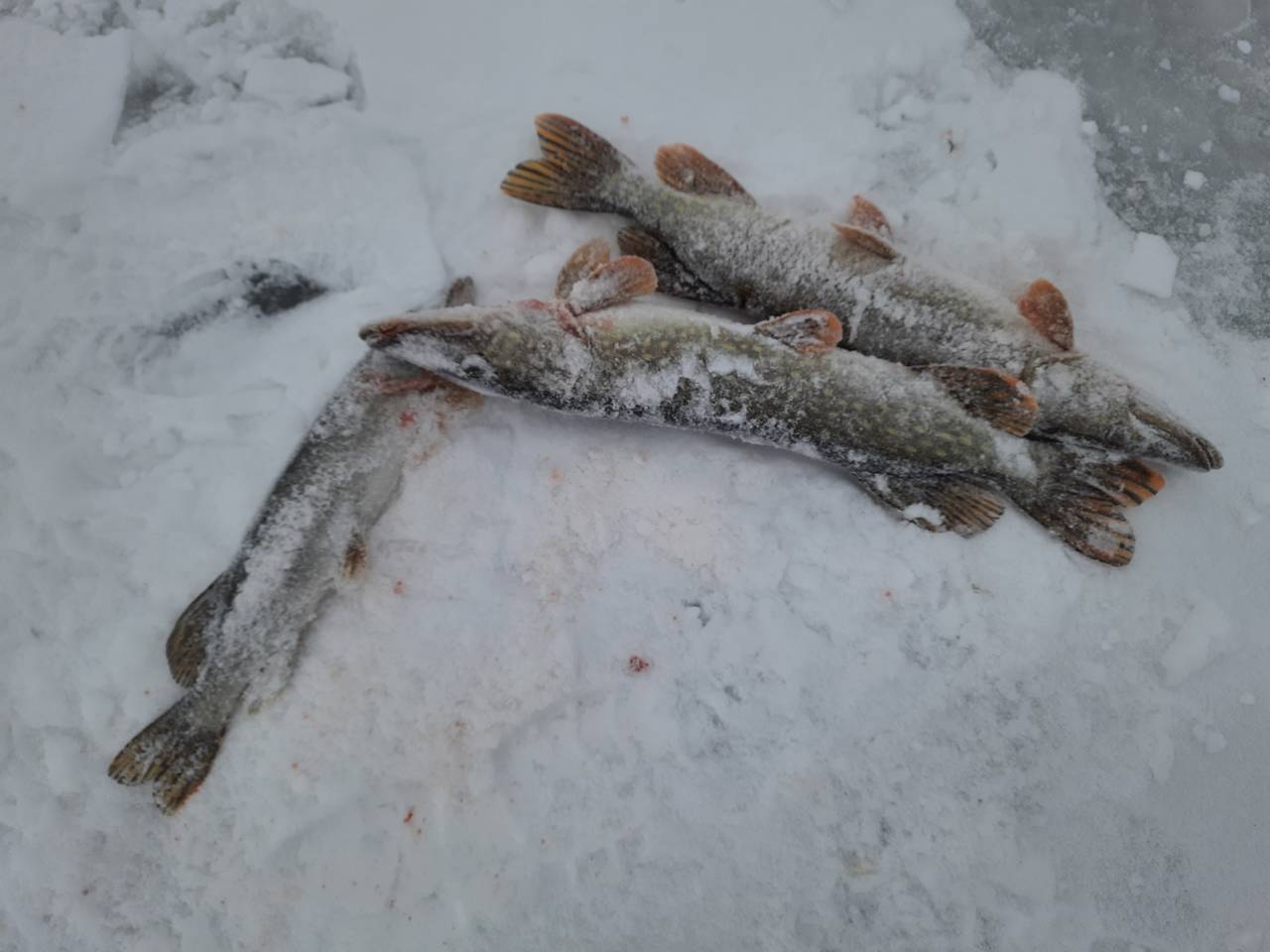Очередной рыбацкий день на льду растрясали праздничные жирки,щучка капризничала,целый день бур в руках,перестановки. Сын нащупал зубастую на вертикальной бровке,я свою нашел в приямке на поливе. Поклевок море,бьет живца носом,даже не режет.
