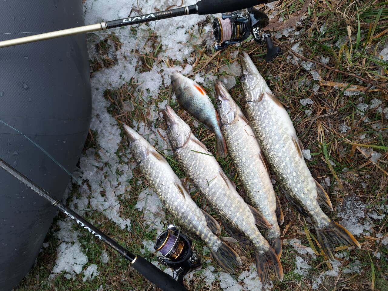 Казалось бы,холодает,по логике хищник должен смещаться на глубину,но ни тут то было,рыбка гуляла,если до обеда с глубины хватали шнурочки,ну максимум одна зачетная,то после обеда более менее нормальная щука стояла все таки возле стенки камыша и то ни долго,ближе к 16 часам клев вообще вырубало.В фаворитах кислота,работала на протяжении всего времени.Вот как то так