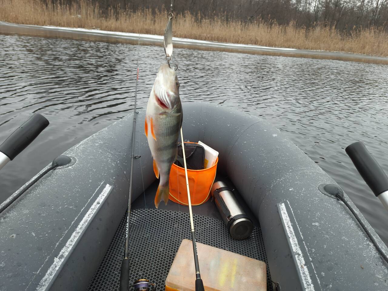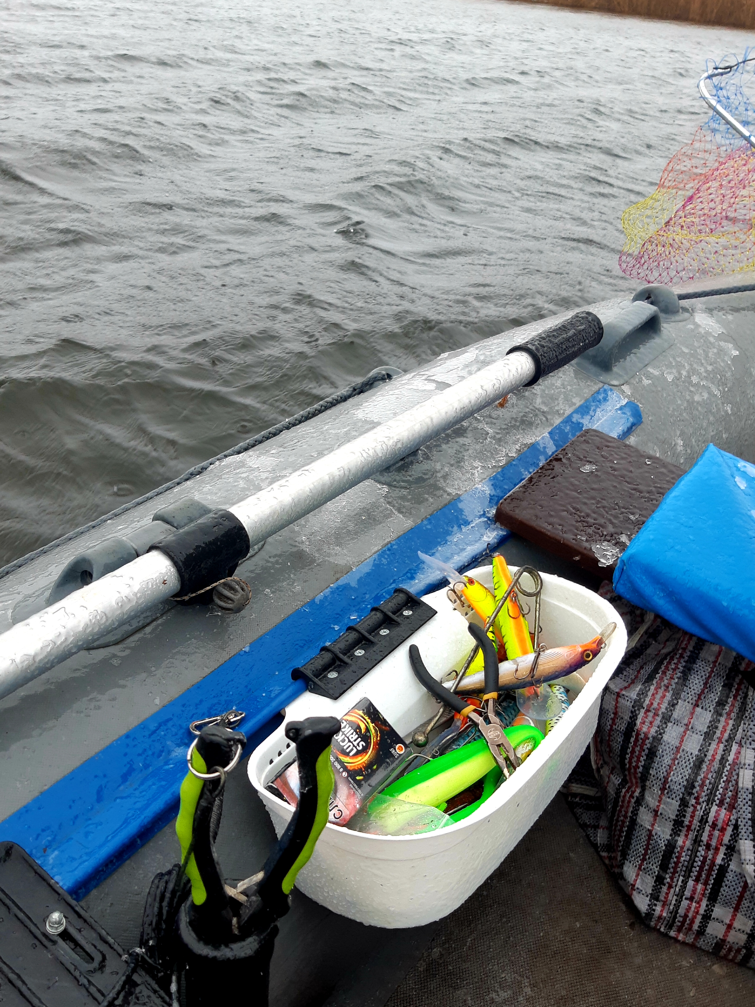 Закрыл сезон жидкой воды. Хорошо, что ограничился гребнушкой, а не большой лодкоц с мотором. Рыбалка трудовая- не то слово. -3 весь день. Вдоль берега уже ледок начинает намерзать. Ну, а кольца и ролик на ветерке обмерзали ледяными комками за неполную проводку. Лодка вся в ледяной глазури. В основном занимался очисткой льда, а не ловлей. Ни заброс нормальный, ни проволку контролируемую сделать просто невозможно. Тем не менее из дураков вышел. Причем обрыбился и на колебло, и на воблеры, и на джиг.