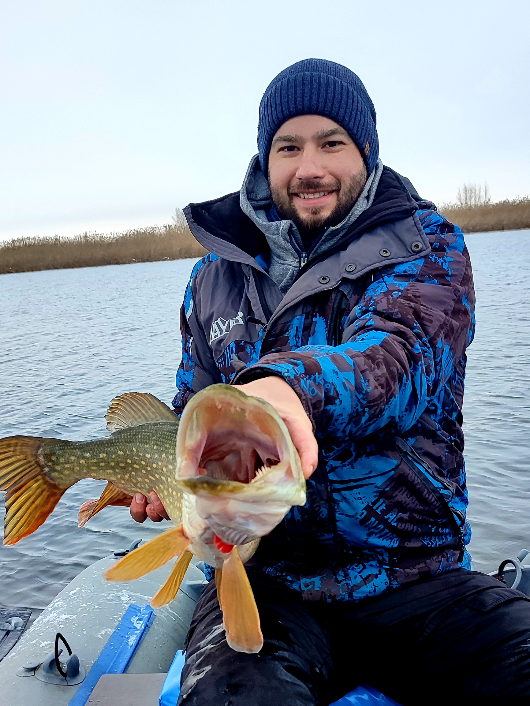 В бой были пущены отлично сработавшие в прошлую рыбалку воблера, первую поклёвку увидел и реализовал на 3Д Минноу щучкой граммов 700, затем Дмитрыч чалит пару близнецов на свою трофейную Найду (Цуековский воблер, выловленный из р.Воронеж). Димка pro, поднявшийся чуть выше нас, тоже вываживает щучку на полторашку. Рыбку подержали в руках все.