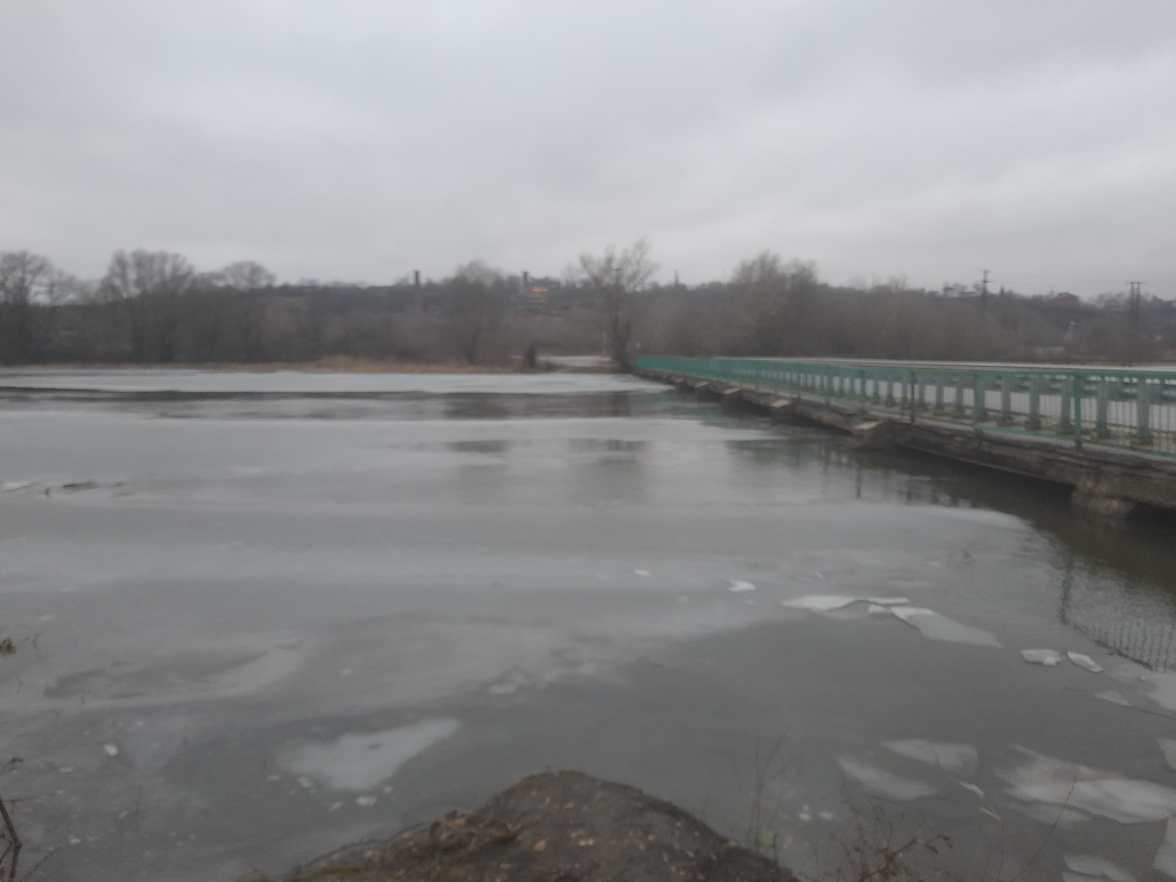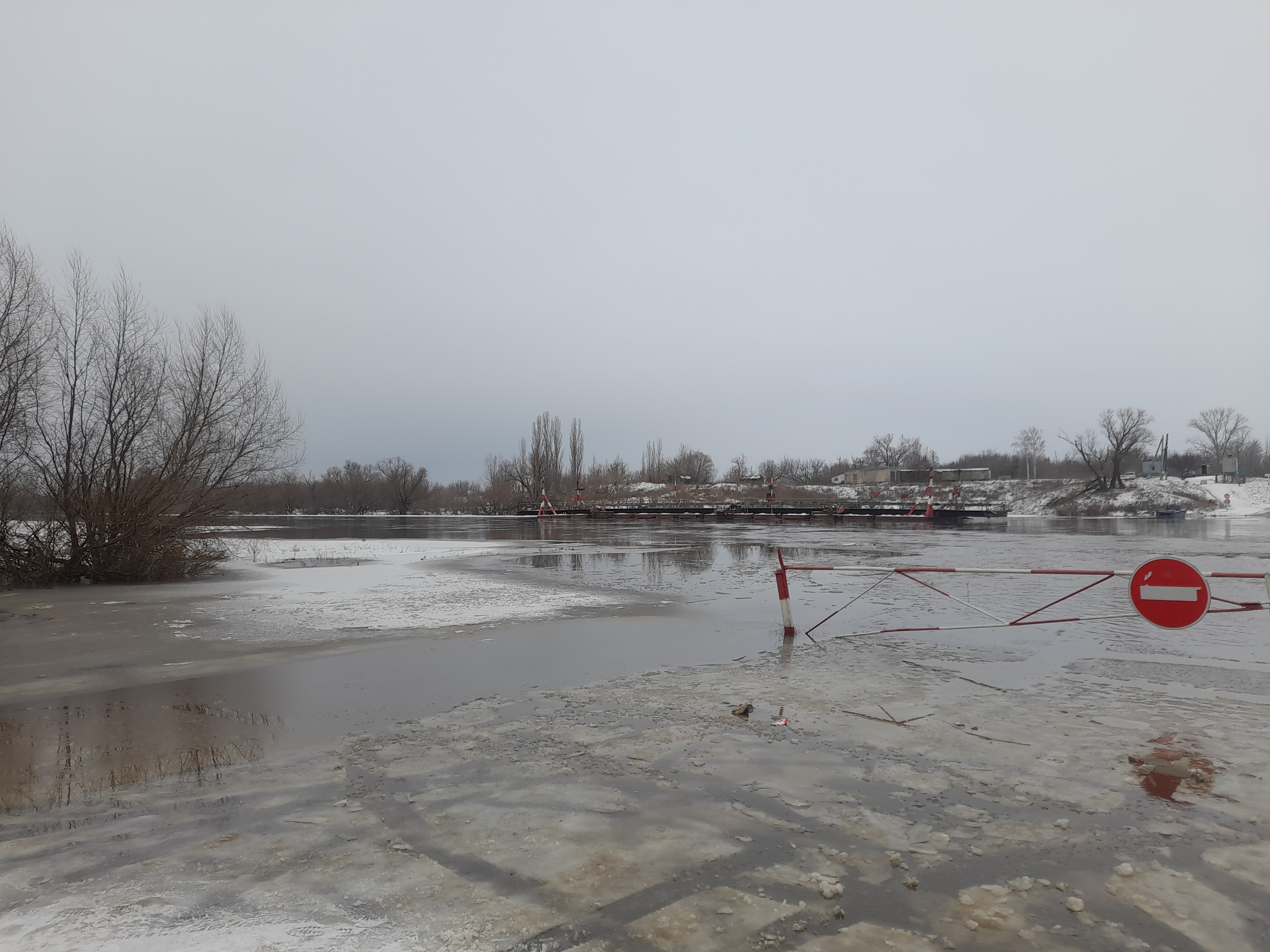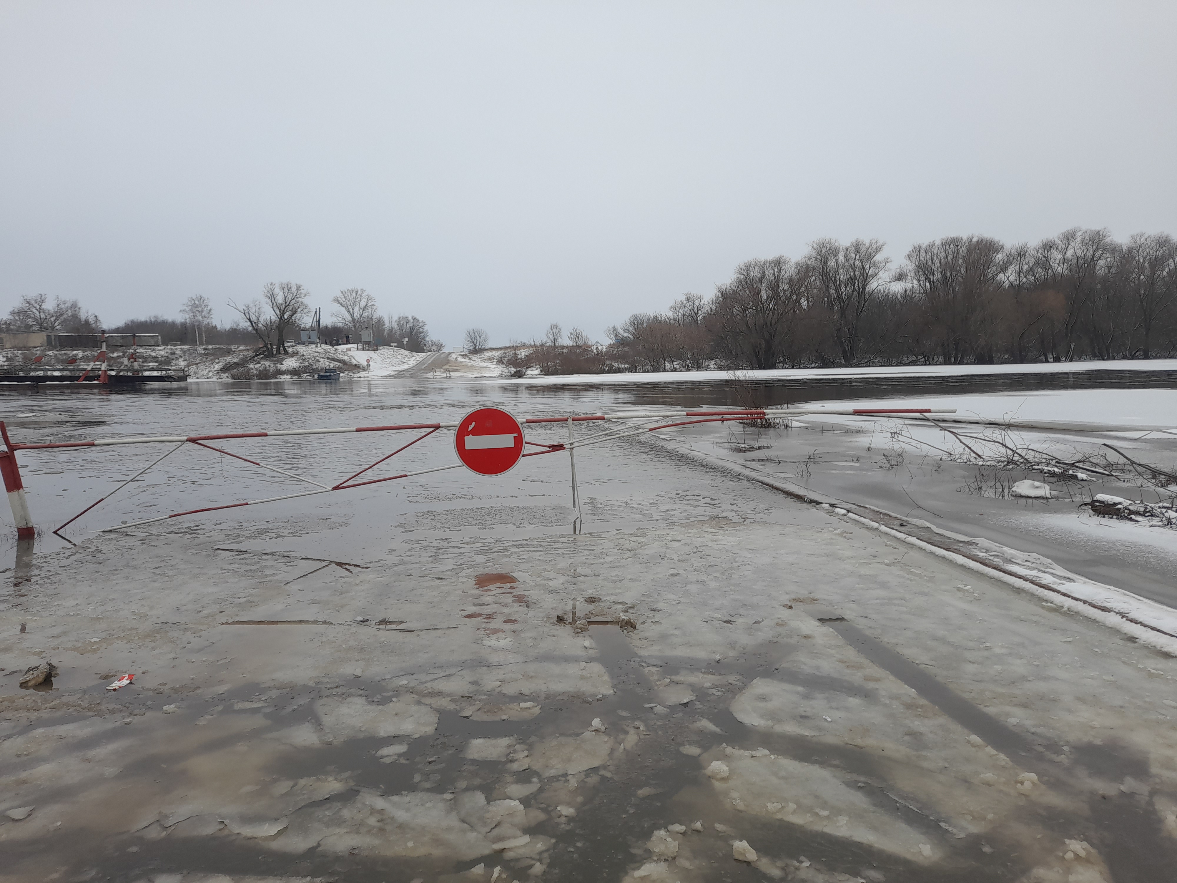 Лед стоит , вода вышла на берег где паром был , на плотине тоже поднялась нормально , деревья на правом берегу в воде .....которые у берега ...эт сегодня....