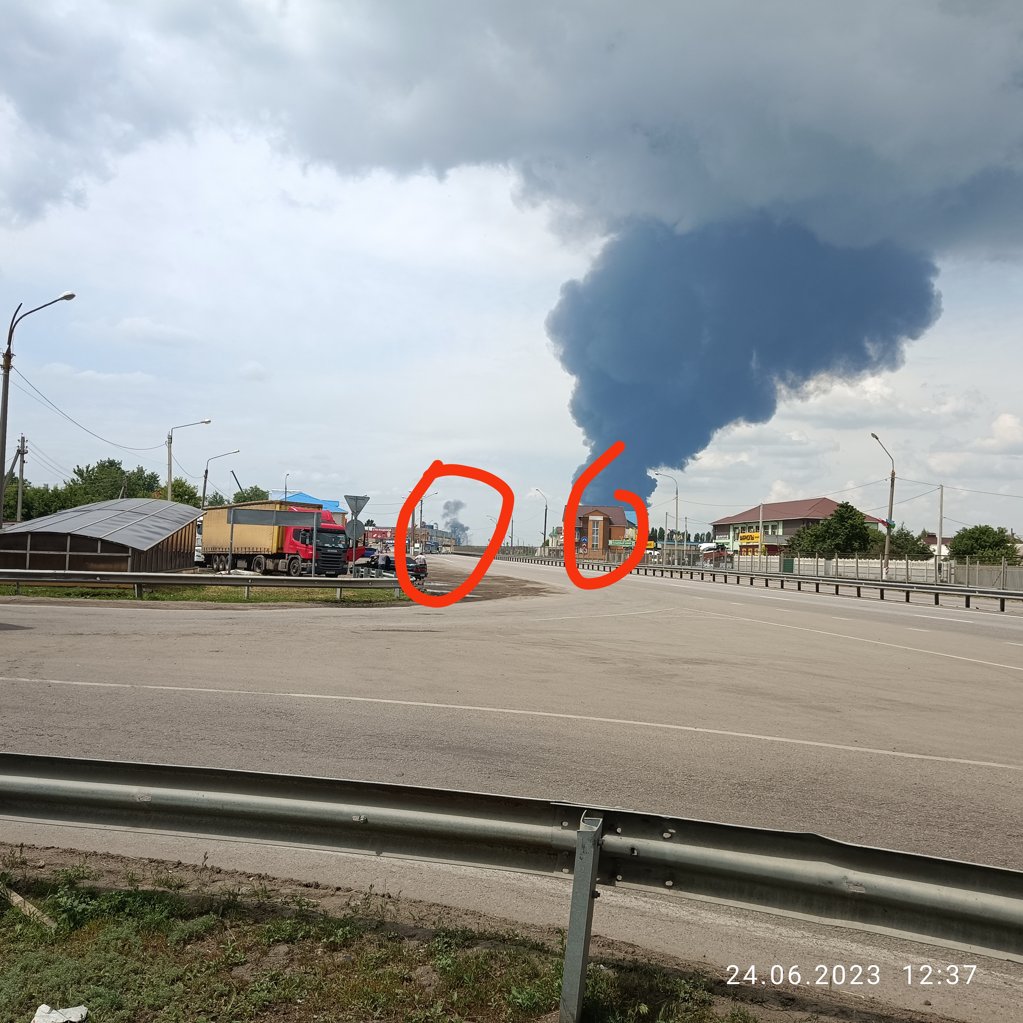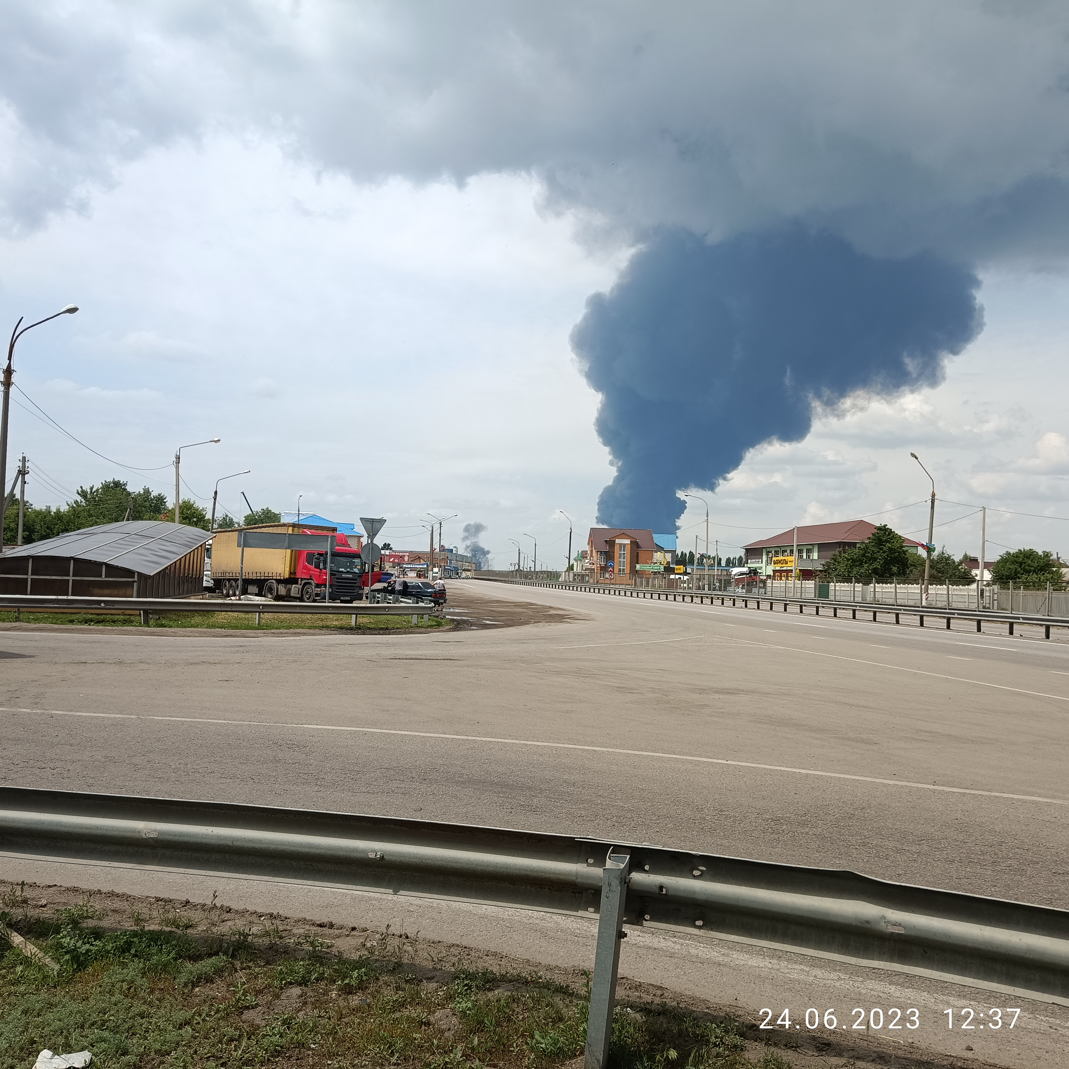 Метров 200 отъехал от дома и назад.Прошелся пешком до м4,смотрю в сторону города и тут хлопок,столб дыма,проходит несколько минут,опять хлопок,столб дыма но не так сильно.