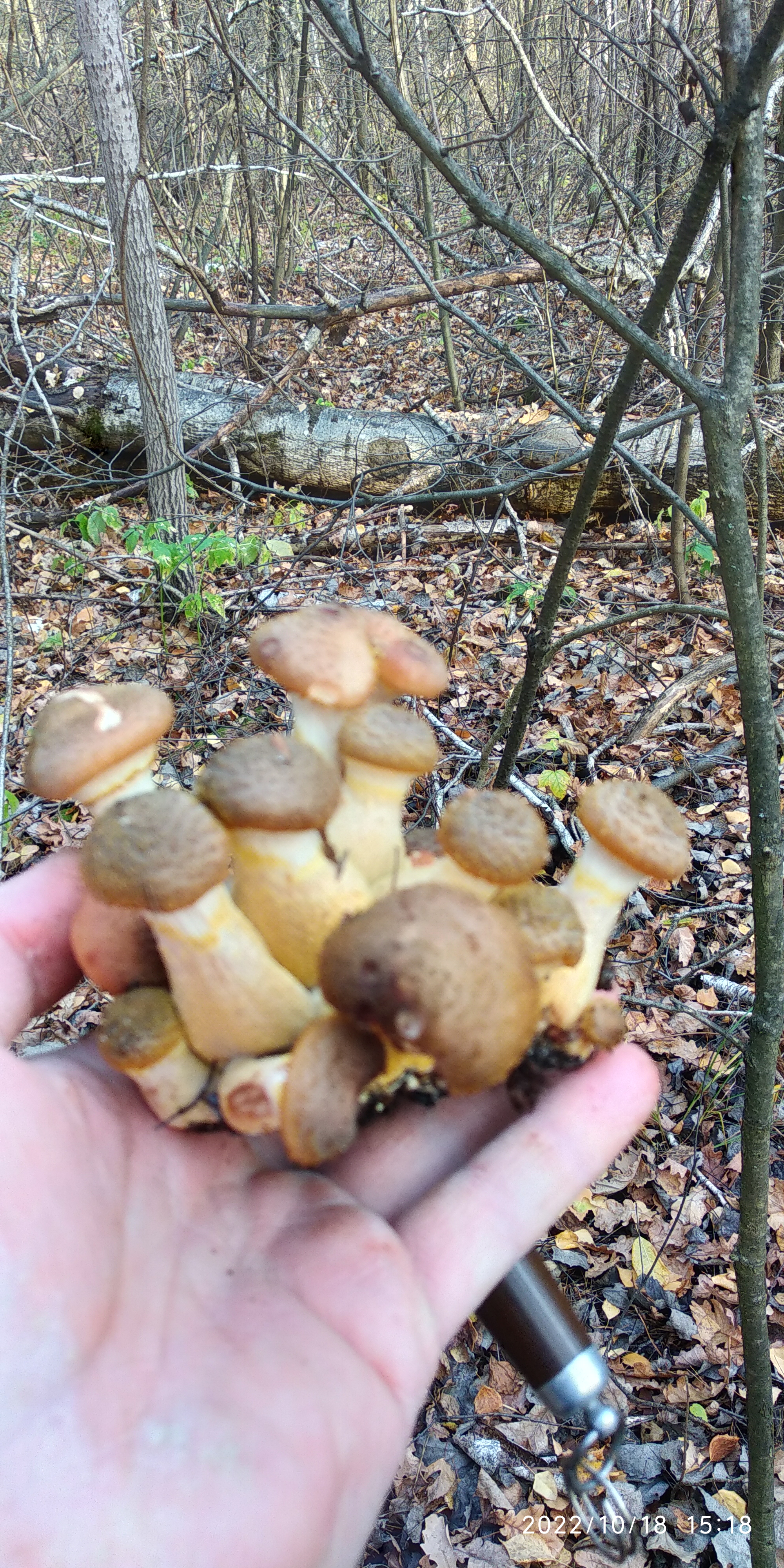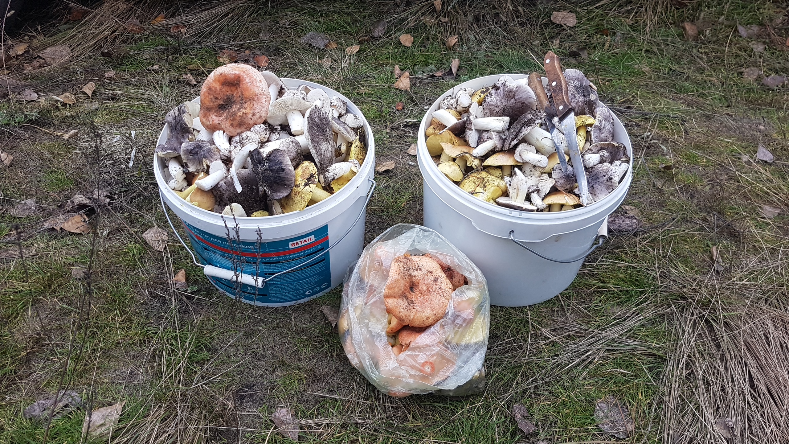 Третий выезд- польских поприбавилось,ведерко набирается спокойно, а вот белые уже 5 шт., и найдены в другом месте. Трудовое ведерко грибов и выезд в зачет. Немного опят (цель их собирать не ставил-случайные попутчики)...