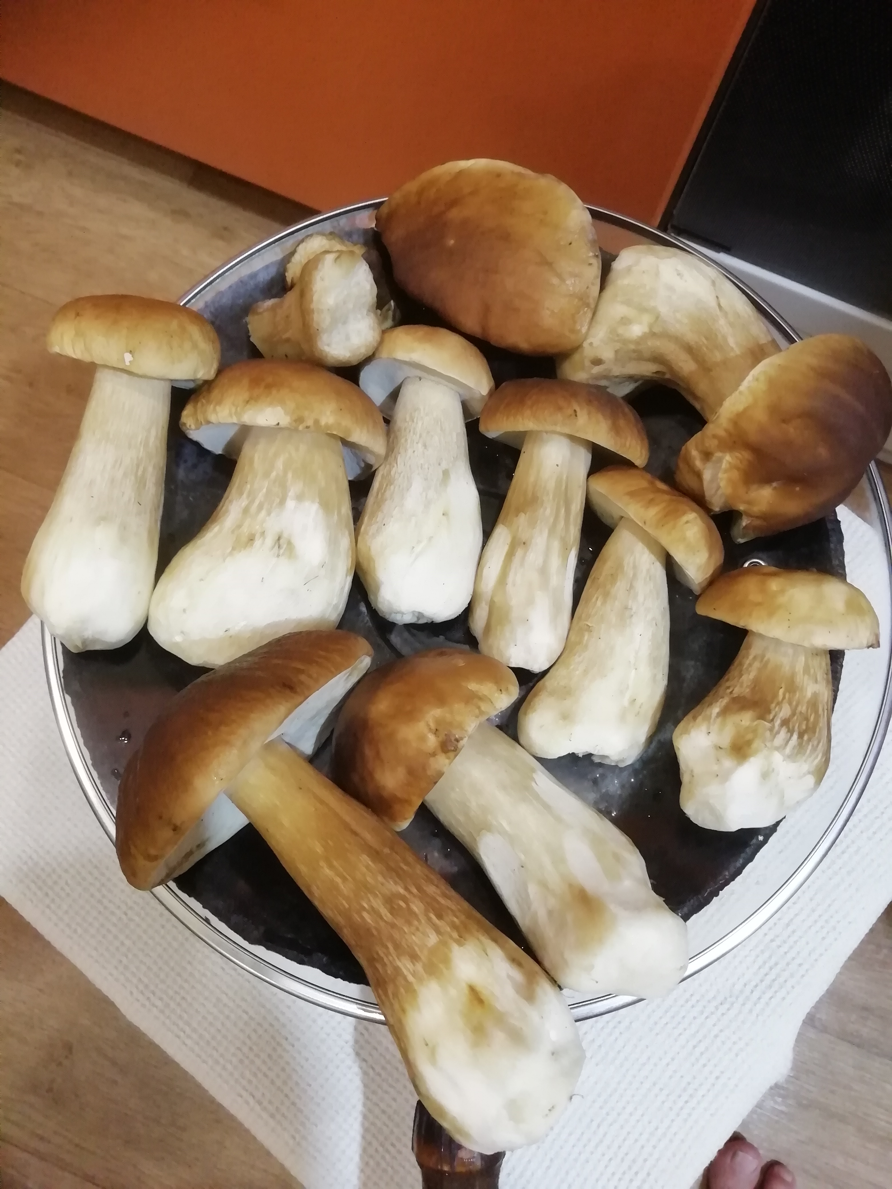 Второй выезд - уже польские пошли активнее, нашел пару-тройку пятаков и ведро заполнено, моховиков немного меньше,много старых....Фильтрация ...Из зонтиков только те, что нераскрытые, в ведро... Проверил белые на прежнем месте - 11 шт. Но народу в лесу в будние дни как на маевке.... И все же белый гриб снова порадовал ...Впрочем как и сам поход в лес...