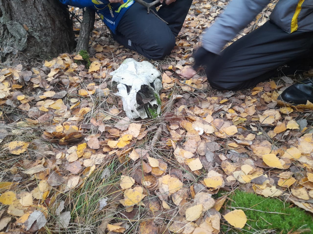 В понедельник перед подводной выбрались на грибную. Поскольку на осенних каникулах мы в Варваринке, то и собирали на трассе Бобров - Таловая, встали у шлагбаума, на 27-м километре, и углубились в лес километра на полтора - два. В улове примерно поровну белые, рыжики и чёрные грузди. Могли бы собрать ещё, но у меня в пакете дырка, а единственная ёмкость, "Окуха" (сумка из "Окея", объёмом где-то 20л) наполнилась, и грибы стали трамбоваться. Собственно, поэтому я фото грибов я и не выкладываю - много их, но они немного "пожмаканные" На обратной дороге девчонки стали сбивать мухоморы, сын пытался их остановить: "Не трогайте, каждый сбитый мухомор - это минус лось!" Раненые и больные лоси питаются мухоморами, и, если их не будет, они умрут. Тогда я посмеялся, а зря. Когда уже все сели в логоху, жена, которая выходила из леса последняя, наткнулась на остатки разделанного лося в 30 метрах от дороги:
