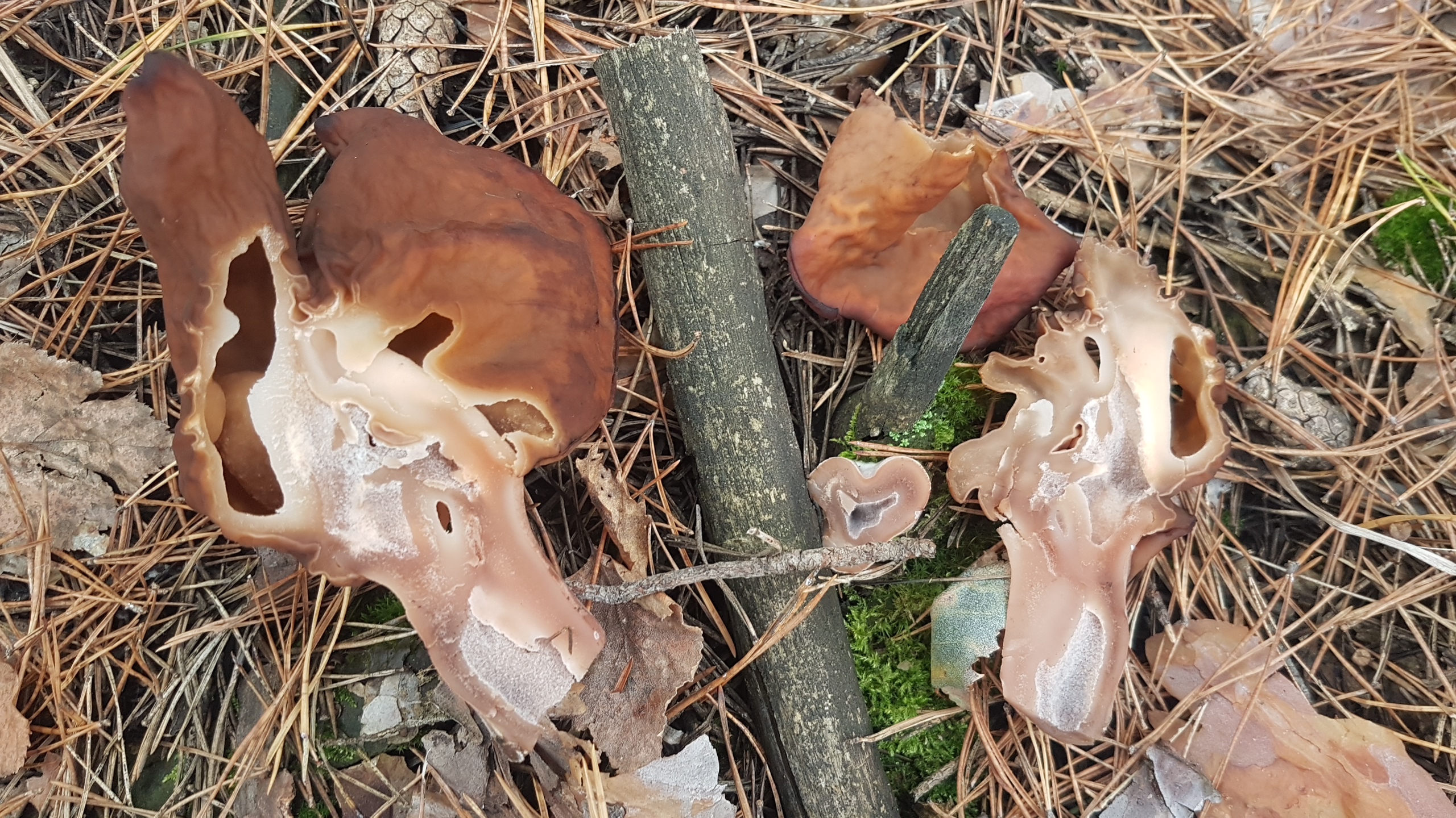 Но в то же время ни одного гриба из земли не выковырнул. Все срезаны с поверхности. Грибы ещё в землю не уходят. А обморожены уже вторую неделю!? Покатались по другим местам, чтобы добрать ведра. Везде пусто. Один два штуки - не в счёт.