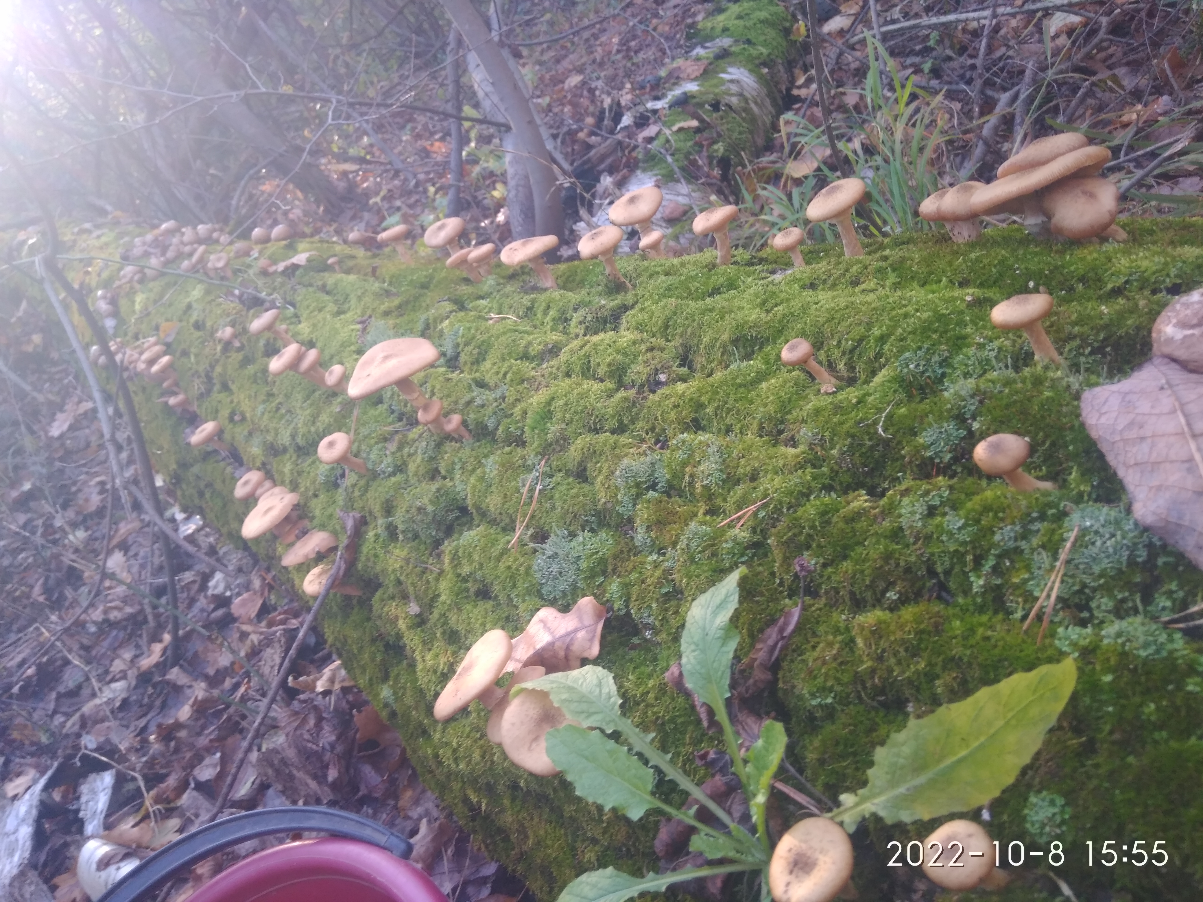 Работал до двух ,после сразу забираю мамку и в лес.Машин...через дорогу пешком хрен перейдешь.Мест этих не знал,остановились в одном,глухо,в другом,также,третьем чуть набрали ,несколь белых и чуть опят,собрались уже ко двору,да и решил ещё чуть дальше проехать и не зря,опят резали до 6вечера,под конец на ощупь.