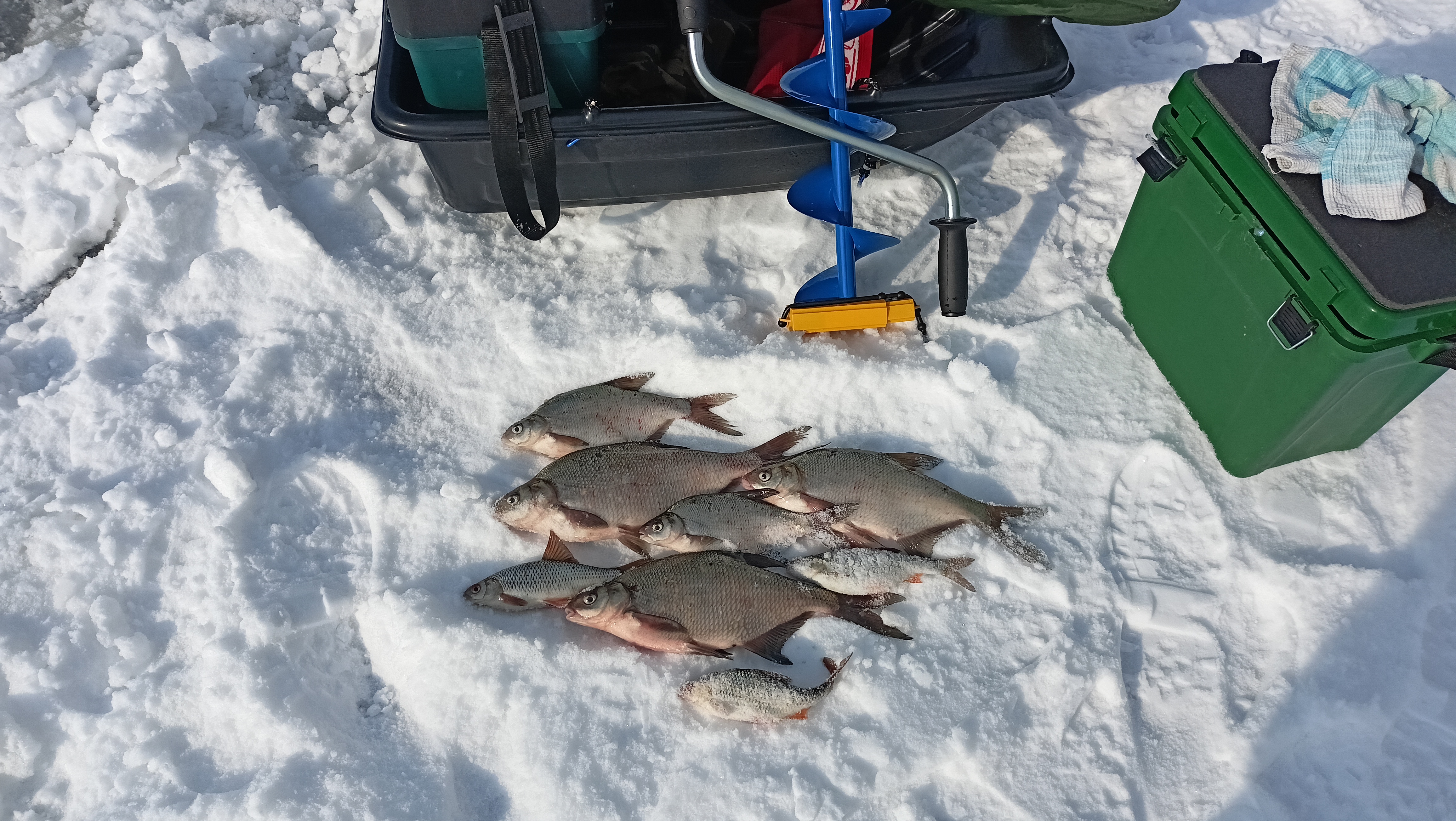 Всем привет.Сегодня решили съездить в Кривоборье половить бирюка и густёрки,но видно они об этом не знали,за весь день один бирюк и четыре густёрки меньше ладошки на двоих,под берегом в затишке рыбы видимо не видимо даже караси кружатся и силявка подо льдом стоит,посмотрев мультики принялись этих рыб ловить,но они не в какую не хотят ловиться,решил попробовать поймать силявку,никогда зимой её не ловил,подматываю леску под лёд и понеслось одна за одной,но на десять штук одна зачётная.Вообщем время провёл отлично,рыбки на таранку подловил и на солнышке подзагорел .