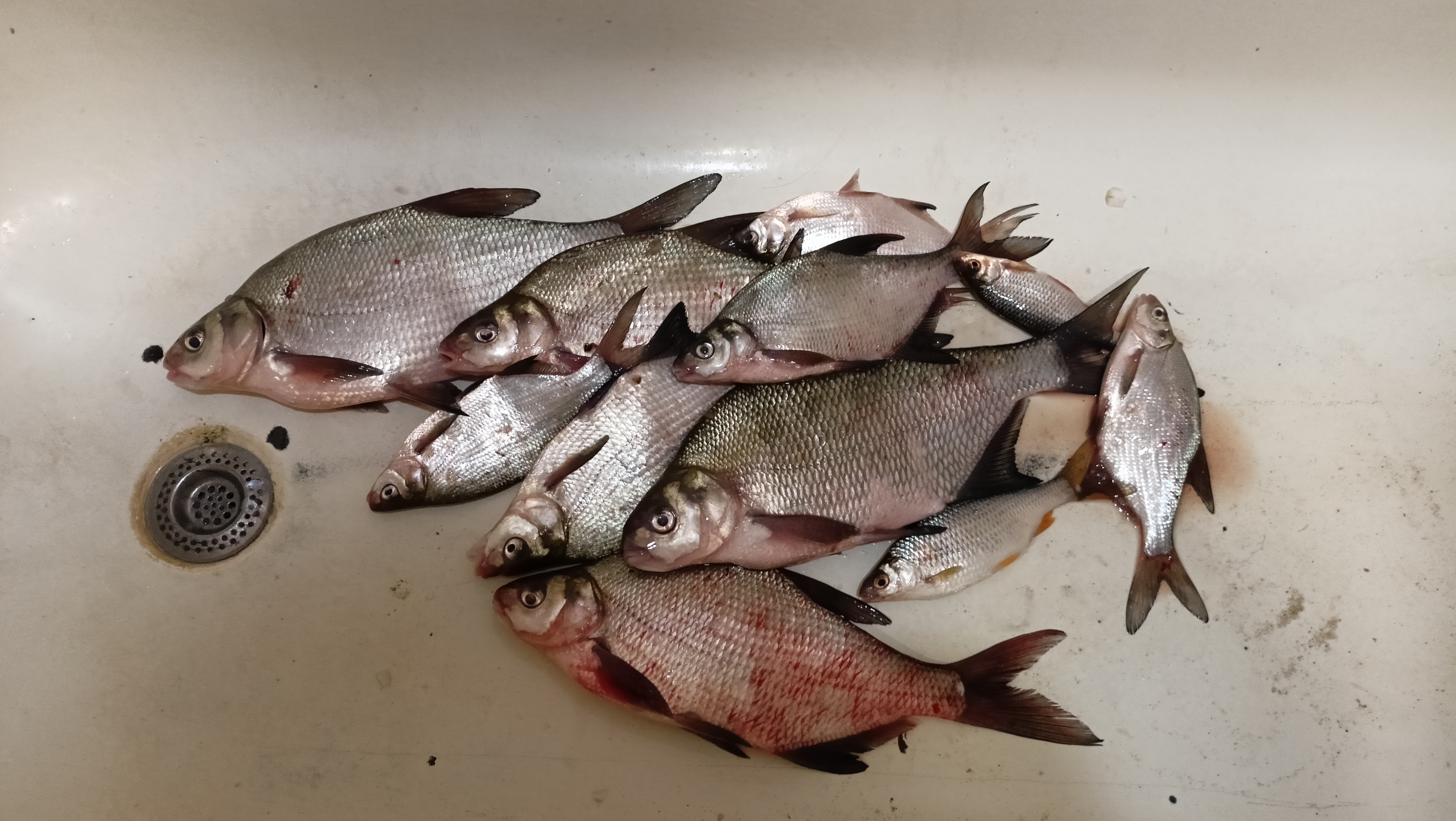 С учётом того, что я вообще не лещатник, а он ловится, то почему бы и не повторить очередной выезд за лещем. Тем более ехать далеко ни надо, единственное что нужно, но как выяснилось не сильно обязательно, это кормовой мотыль, которого в этот раз у нас оказалось мало и при первой постановки мы его скормили ершу на которого нарвались случайно 😁. Но потом всё наладилось, при смене места. В принципе мы выбрали удачное место, вокруг нас он был прикормлен и кружился со всех сторон. Первым счёт открыл Олег, достав не плохого экземпляра, далее и у меня поклевки пошли. Как я сказал ранее лещ кружился вокруг нас и происходило следующие, за пять минут можно было поймать два три штуки, потом минут на десять перерыв, ну и так по кругу. В общем этот выезд подарил нам примерно по десятку рыб, но все достойные, и это с учётом, что мы потеряли несколько часов на ерше. Всем НХНЧ✌