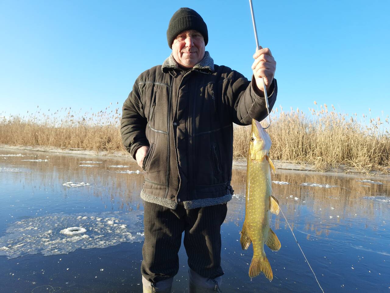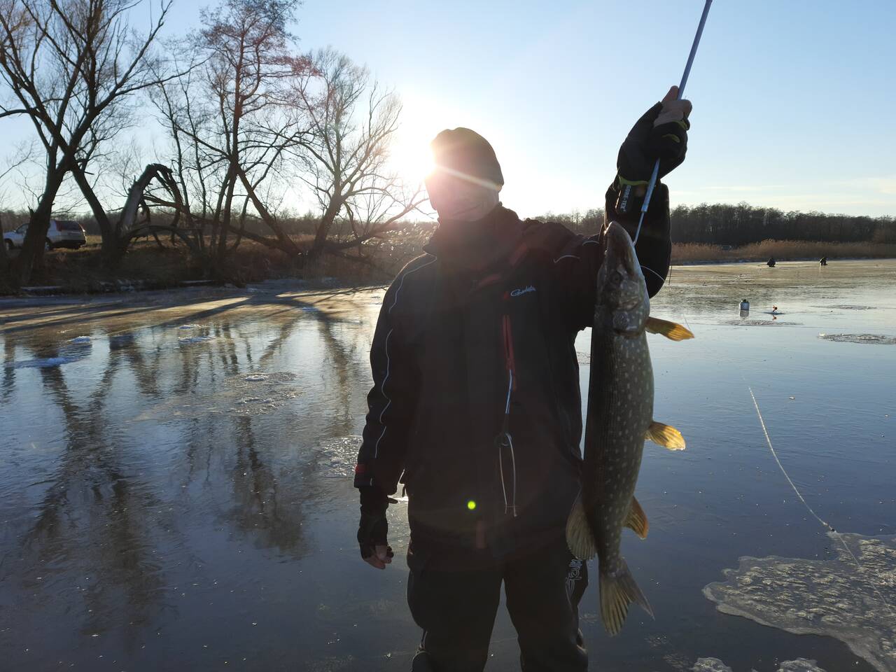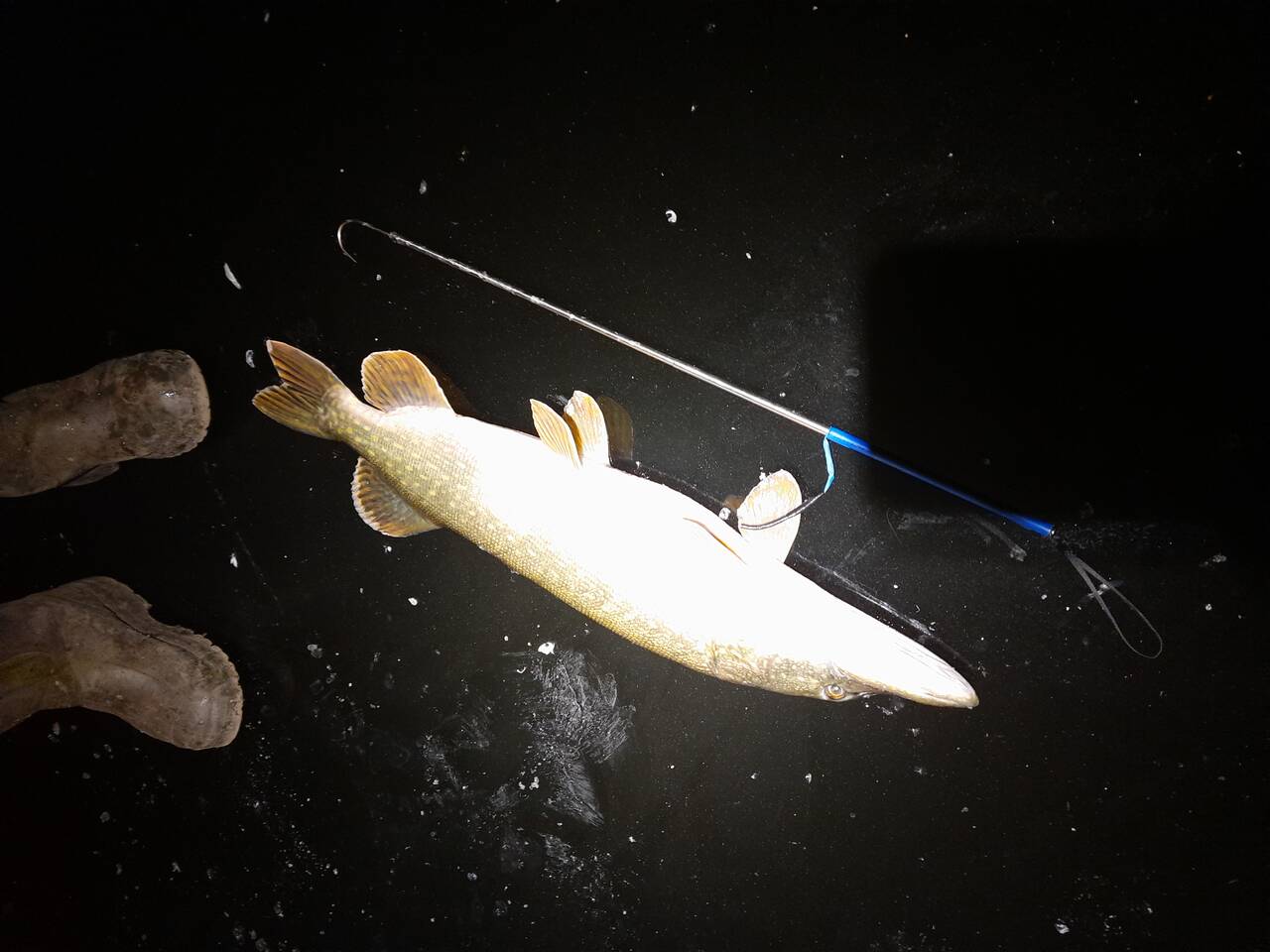 Открылся и я.На жерлицы не любитель,но с коллегой по работе решили проверить зимнего хищника в правой хаве.Пол 7 го у старожке оплатили за 10 жерлиц ,с фонариком установили.Живец карась.Первый подъем на рассвете,сход у лунке,минут через 15,сразу два флажка и две щучки на льду.Так как не за рулём ,отметил.