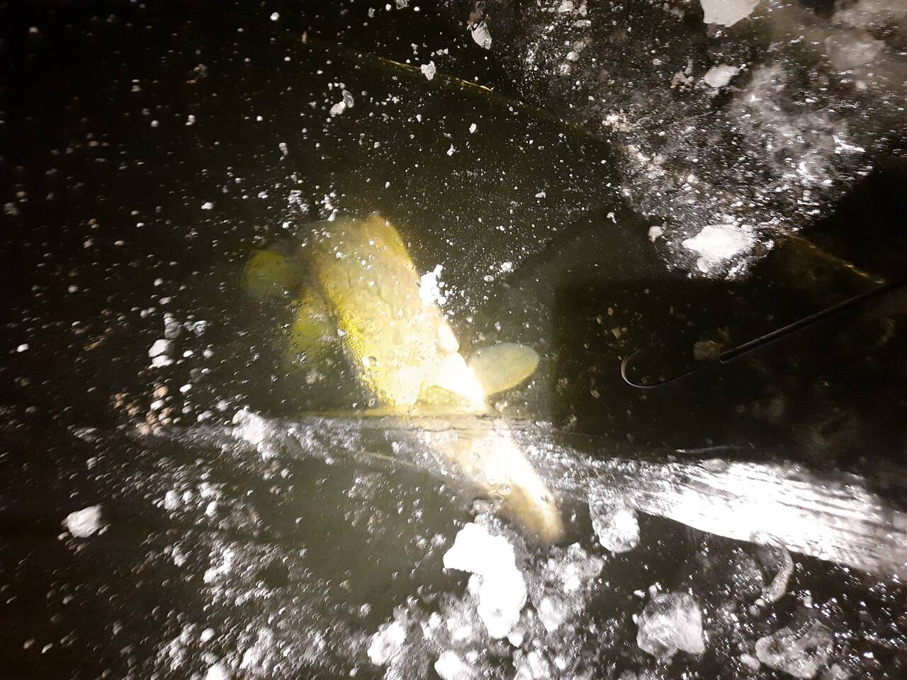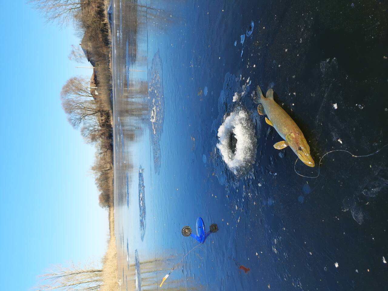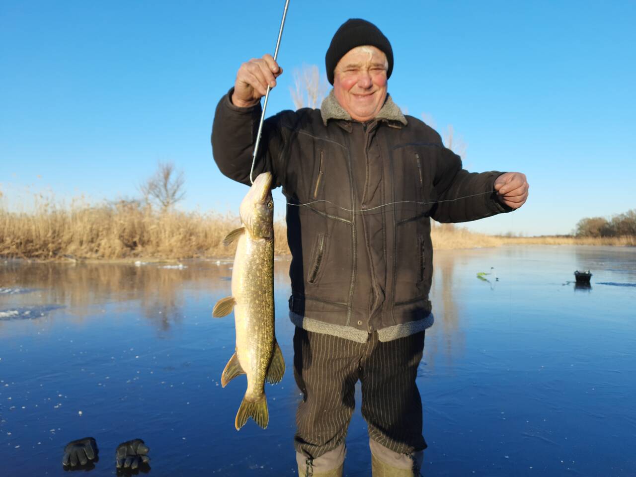Открылся и я.На жерлицы не любитель,но с коллегой по работе решили проверить зимнего хищника в правой хаве.Пол 7 го у старожке оплатили за 10 жерлиц ,с фонариком установили.Живец карась.Первый подъем на рассвете,сход у лунке,минут через 15,сразу два флажка и две щучки на льду.Так как не за рулём ,отметил.