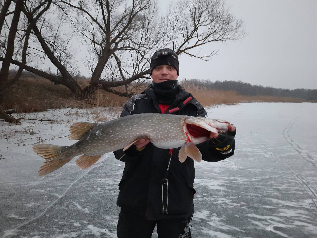 Сегодня с утра продолжение. От 15 жерлиц осталось 13. Живец закончился. Родная река сегодня порадовала, побил личный рекорд по щуке, хоть на чуть, но всё же. В такой речушке и такие крокодилы еще живут. 130ю лунку пришлось пешнёй расширять. Хотел было отпустить, но смутил тройник в желудке и, если показать детям, кто в реке живет, летом будут бояться купаться. Но затем всех пять подряд клюнувших килошних выпустил.