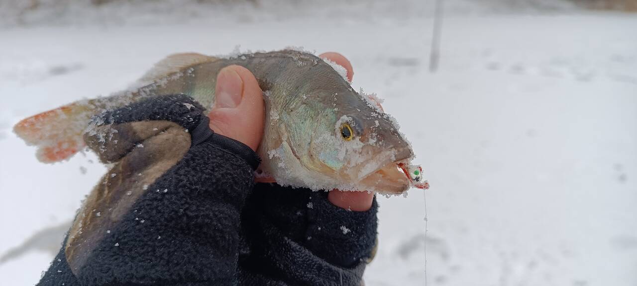 День первый: поехал с прицелом половить окуня, который всегда активен в начале зимы. Подъехав к берегу обнаруживаю, что река полностью скованна ледяным панцирем. Промоин не видно, но, всё равно нужно быть предельно осторожным. Пешнёй бью закраину у берега – не пробивается. Выхожу уже смелее. Начинаю бурить, считая обороты ледобура. Счёт 10-12. Нормально. Пробую двигаться в сторону русла. Бур делает всего 5 оборотов. Стоп! Назад! Уже опасно! Возвращаюсь и начинаю сверлить, параллельно берегу, дорожку из лунок. В начале, решаю пройтись с блесной. И, буквально на втором взмахе, ловлю первую рыбу этого сезона – небольшого окуня! Начинаю с ещё большим азартом передвигаться по льду. Однако, за следующий час, получаю всего одну поклёвку собрата «первенца». Надо что-то менять. Перехожу на мормышку с мотылём. Дела пошли гораздо веселее.