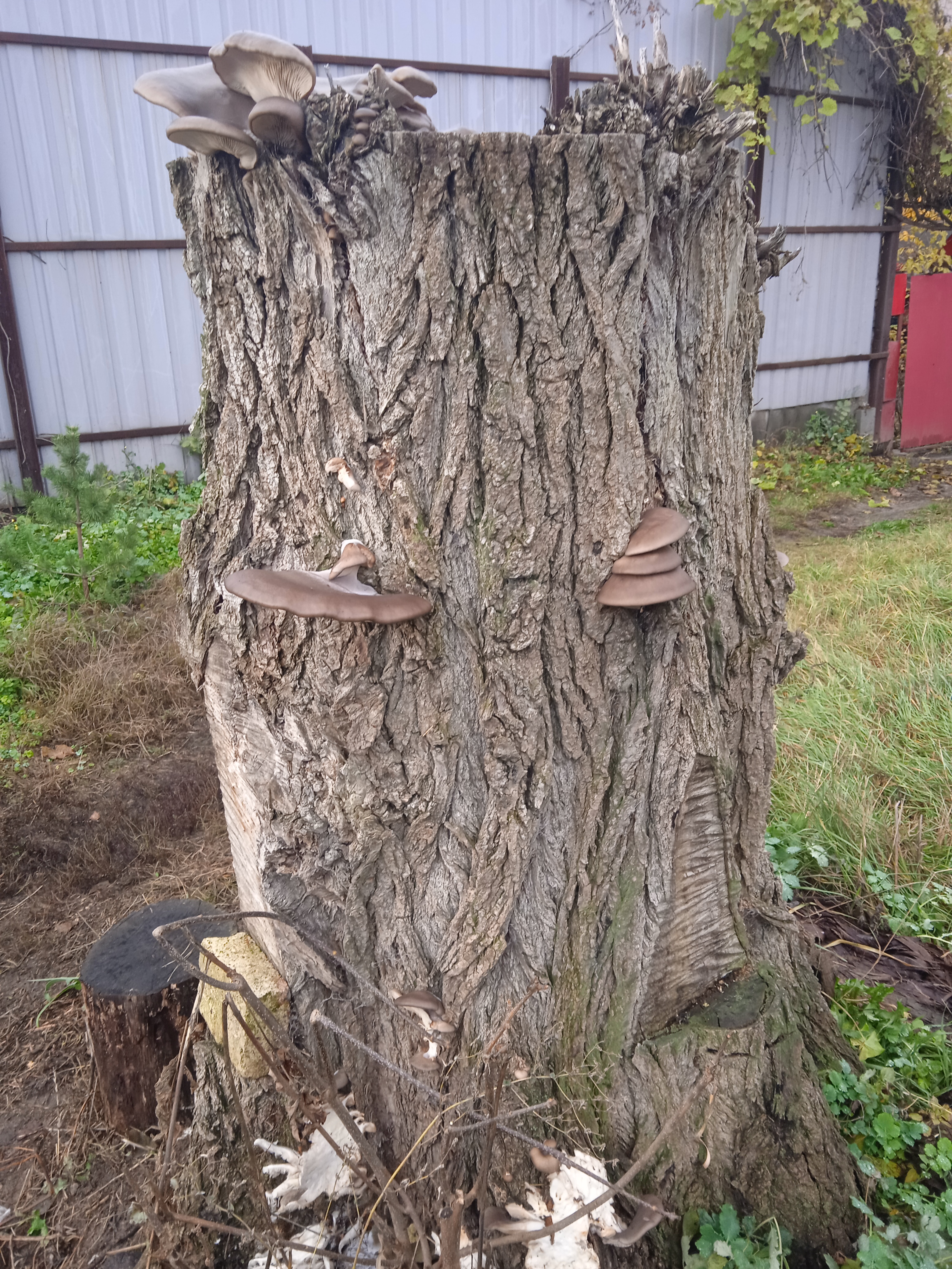 А я этой осенью и не ходил в лес за грибами. Ну только разок в сентябре, вроде. Когда то, лет несколько назад, Серега Ж. подогнал мицелий, я им вроде заразил пеньки, но что то особо толку не было, а в этом году просто супер! Весь пень от тополя в вешенках)) и много и ходить за грибами не надо, прям у дома полно