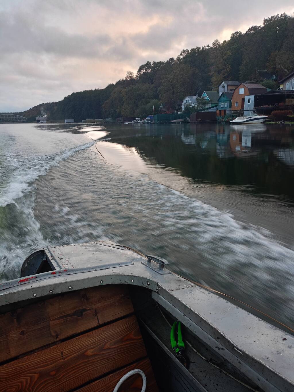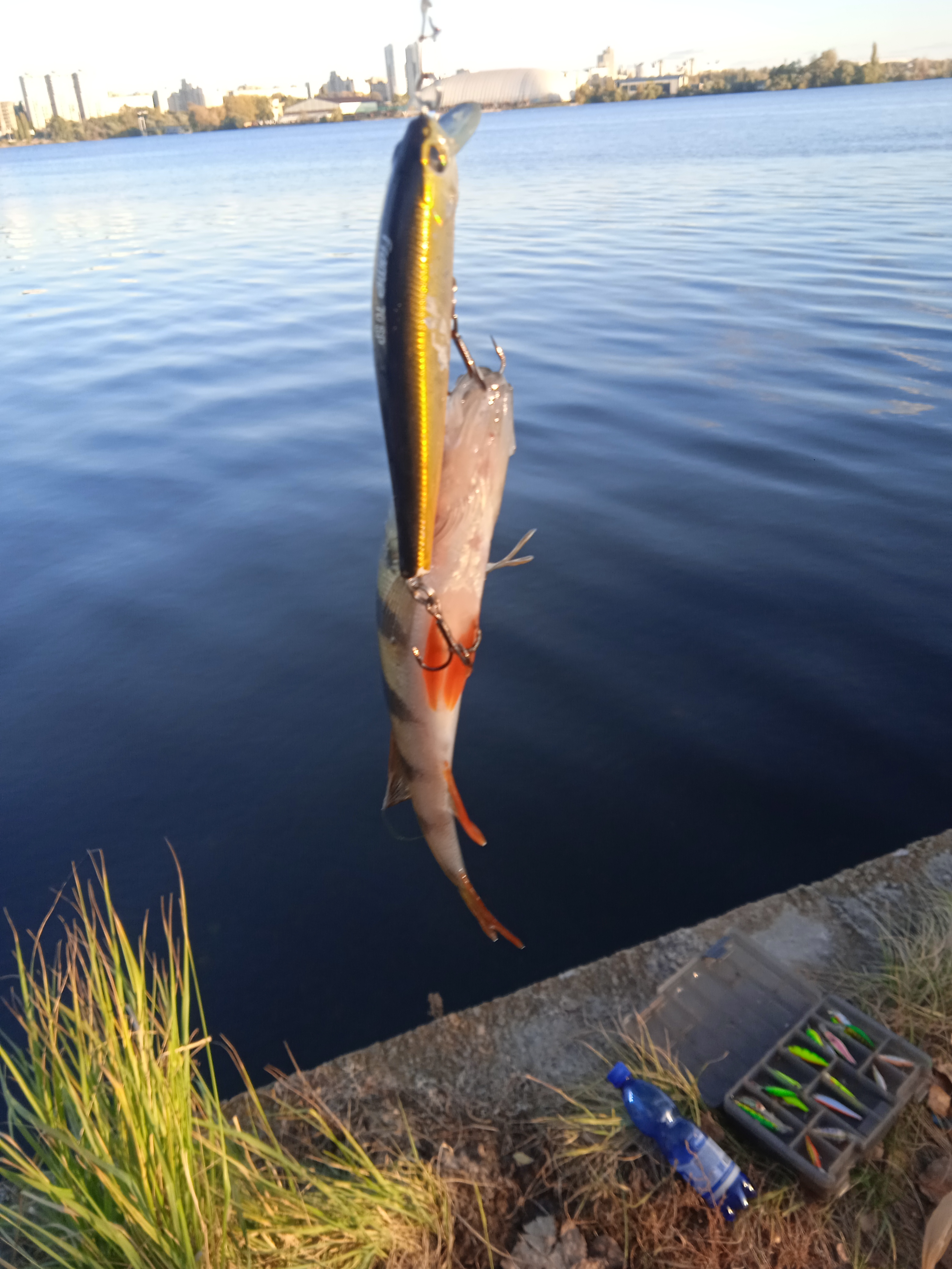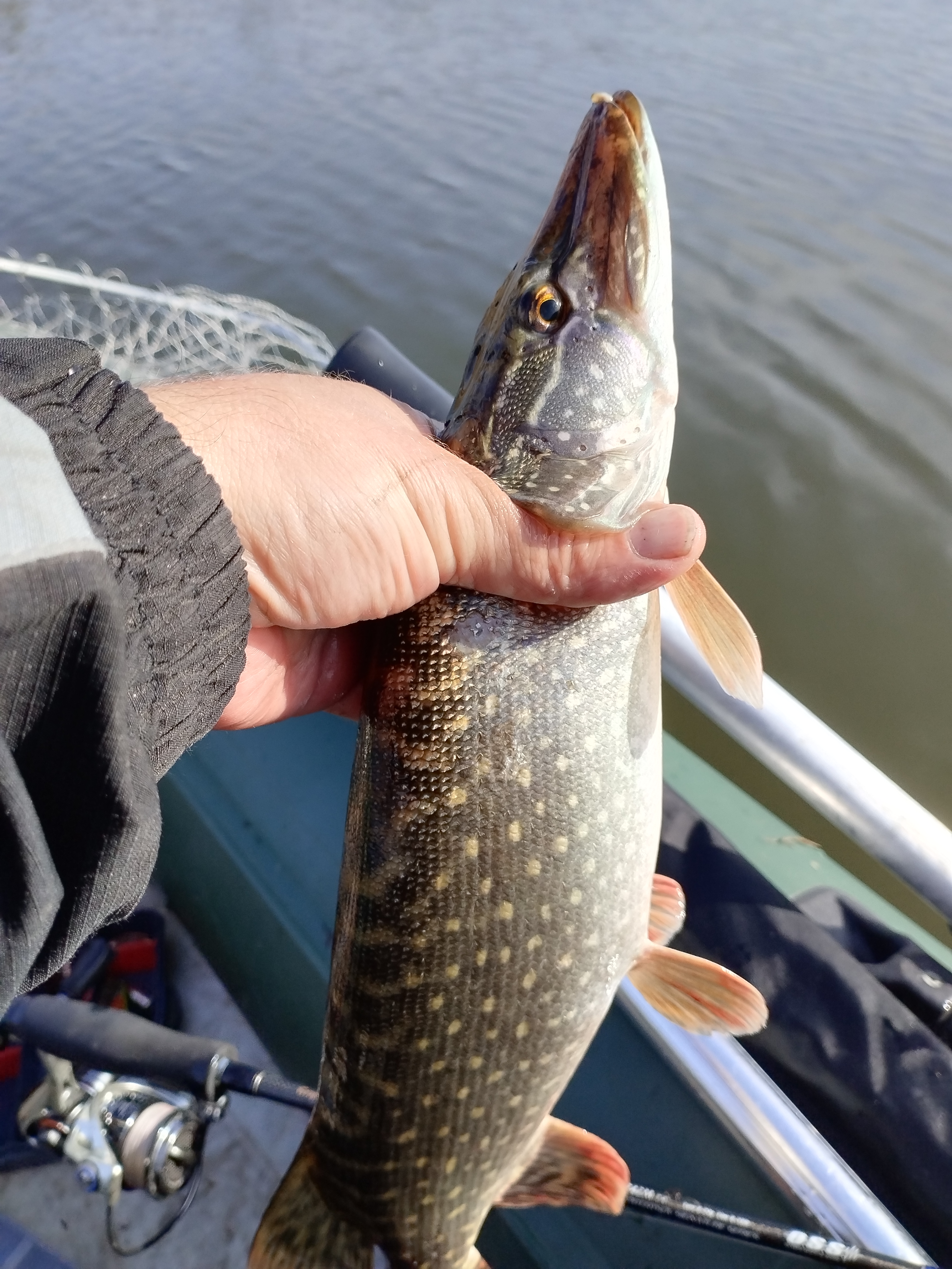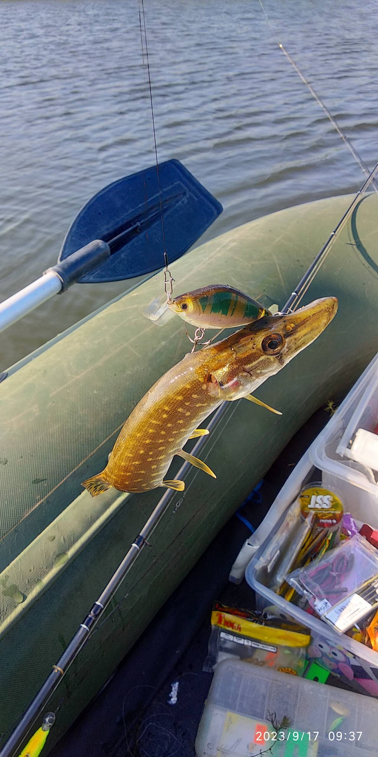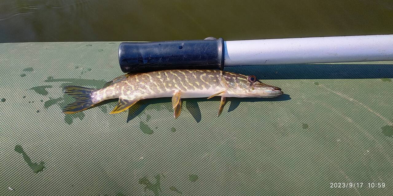Привет всем коллегам по увлечению. Вчера наконец то сошлись все звёзды и я смог уделить выходной рыбалке. Немного помучавшись с выбором места, решил всё же испытать новый для себя пруд ,где по открытой воде ловить не приходилось. Зори уже холодные, поэтому решил особо рано не начинать. Выплыл в седьмом часу, когда солнце уже немного грело. Пообщавшись с одиноким коллегой на воде, узнал что вчера неплохо, по его словам, тут кто-то отловился по окуню . Решаю щучьи дела отложить на потом, в приоритете полосатый. Собираю спиннинг, джиги, отводной, тейлы , цикады и на поиски . Но как говорится вчера ,не сегодня. Поиски идут, эксперименты тоже, а аппетит у окуня не просыпается, не считая трёх полуладошечных ,которых за борт. Снова смена места, попадаются пару едовых и наконец то он, кого приятно повываживать.