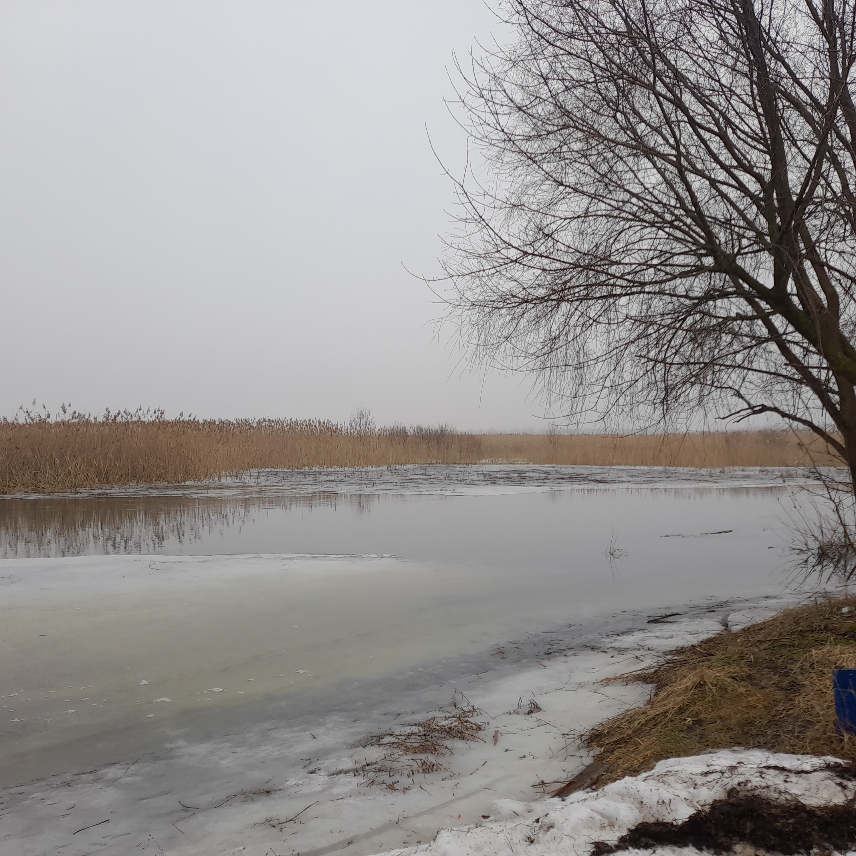 Даже прозрак не смог проверить, к открытой воде не подберёшся. Может, завтра в гидрике пролезть попробую. И на воздухе с прозраком проблема, часам к 2-3 видимость снизилась до 50-20 метров, мимо поворота пролетел. Снега нет почти, но почва ещё не оттаяла, хотя влажность большая