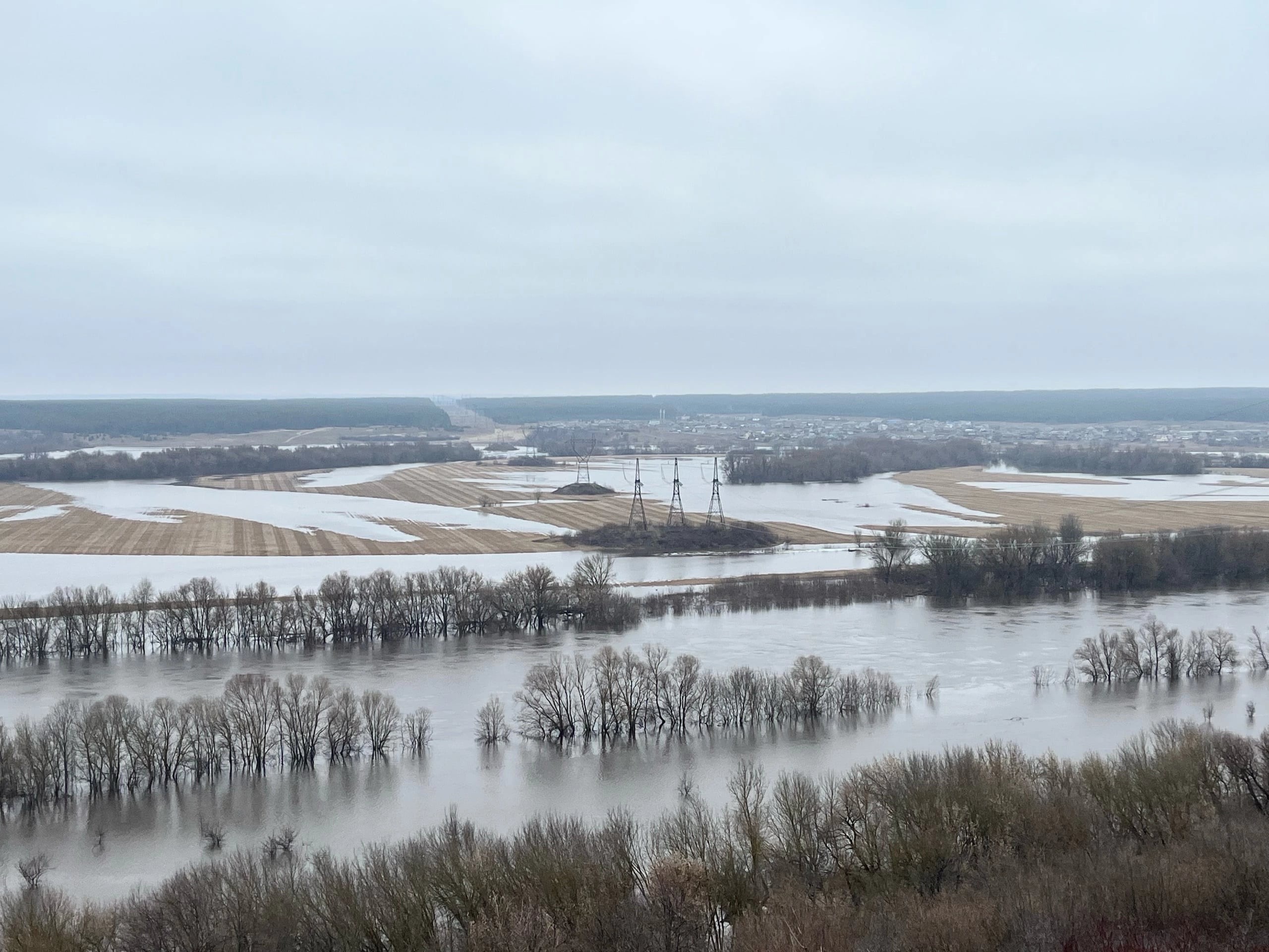 24.03.2023 14.00 р.Воронеж с. Ступино Рамонский район. Вода еще прибыла, тракторную переправу закрыли. Вопрос о лодочной переправе еще не решен.